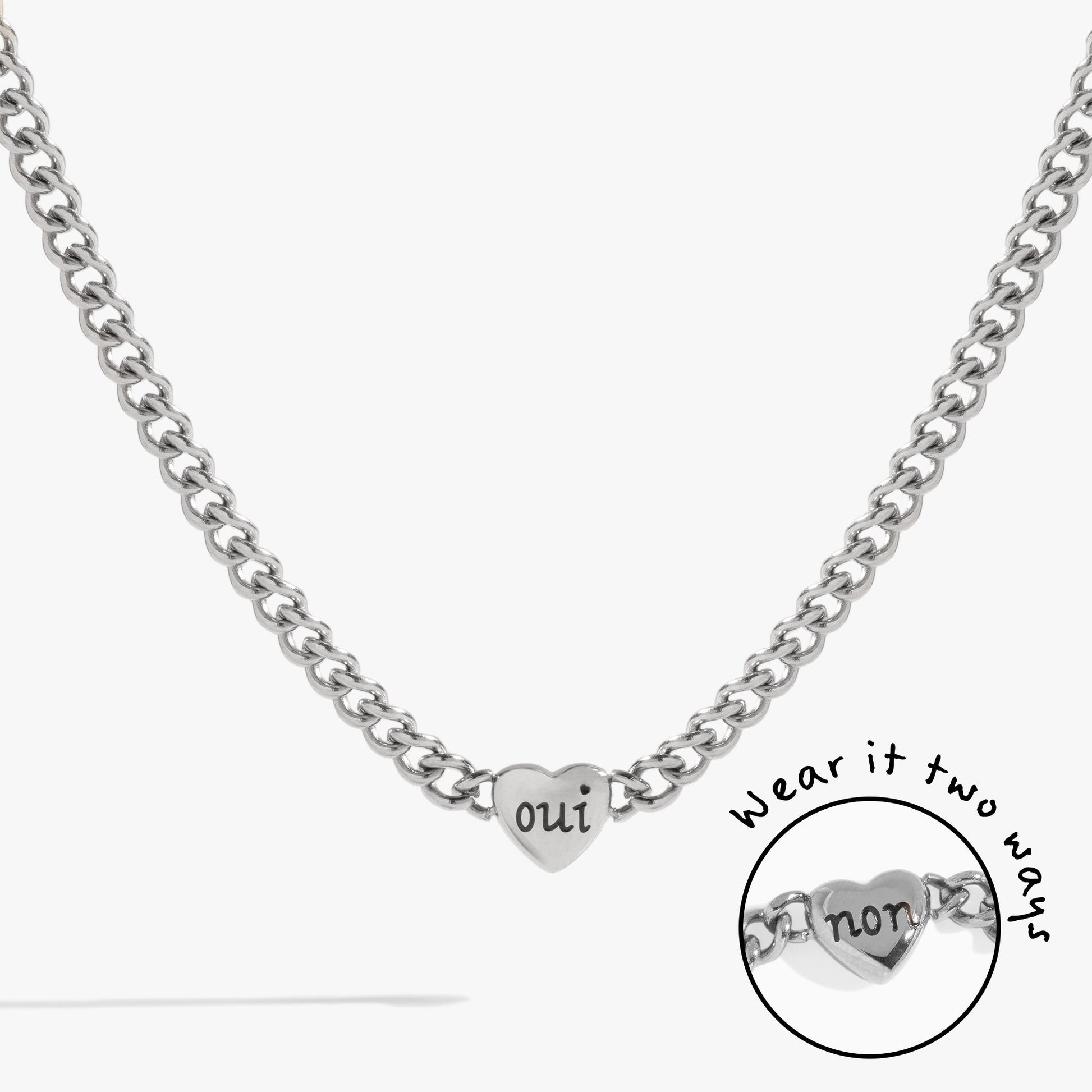 Engraved French 'Oui' & 'Non' Reversible Heart Necklace