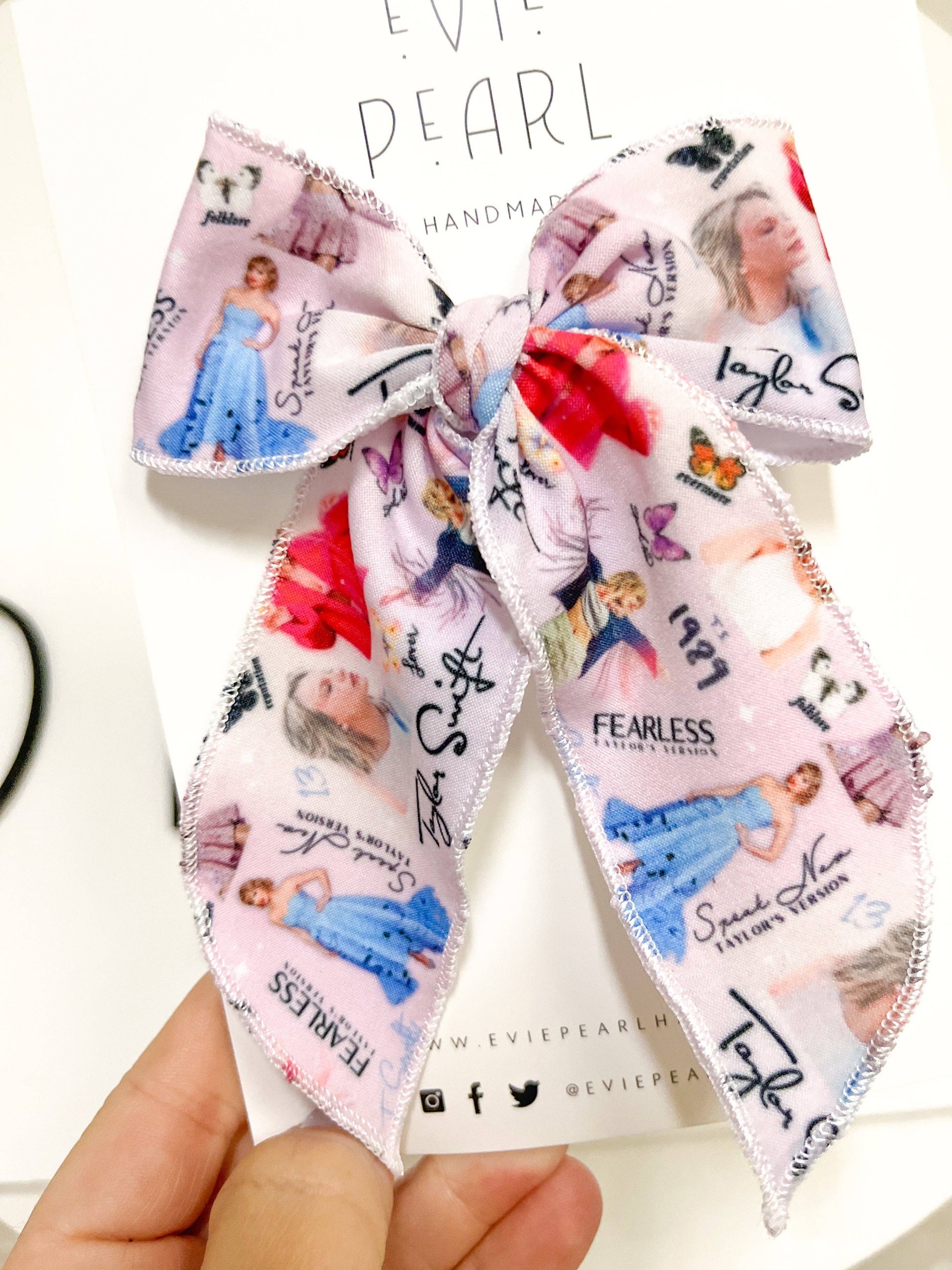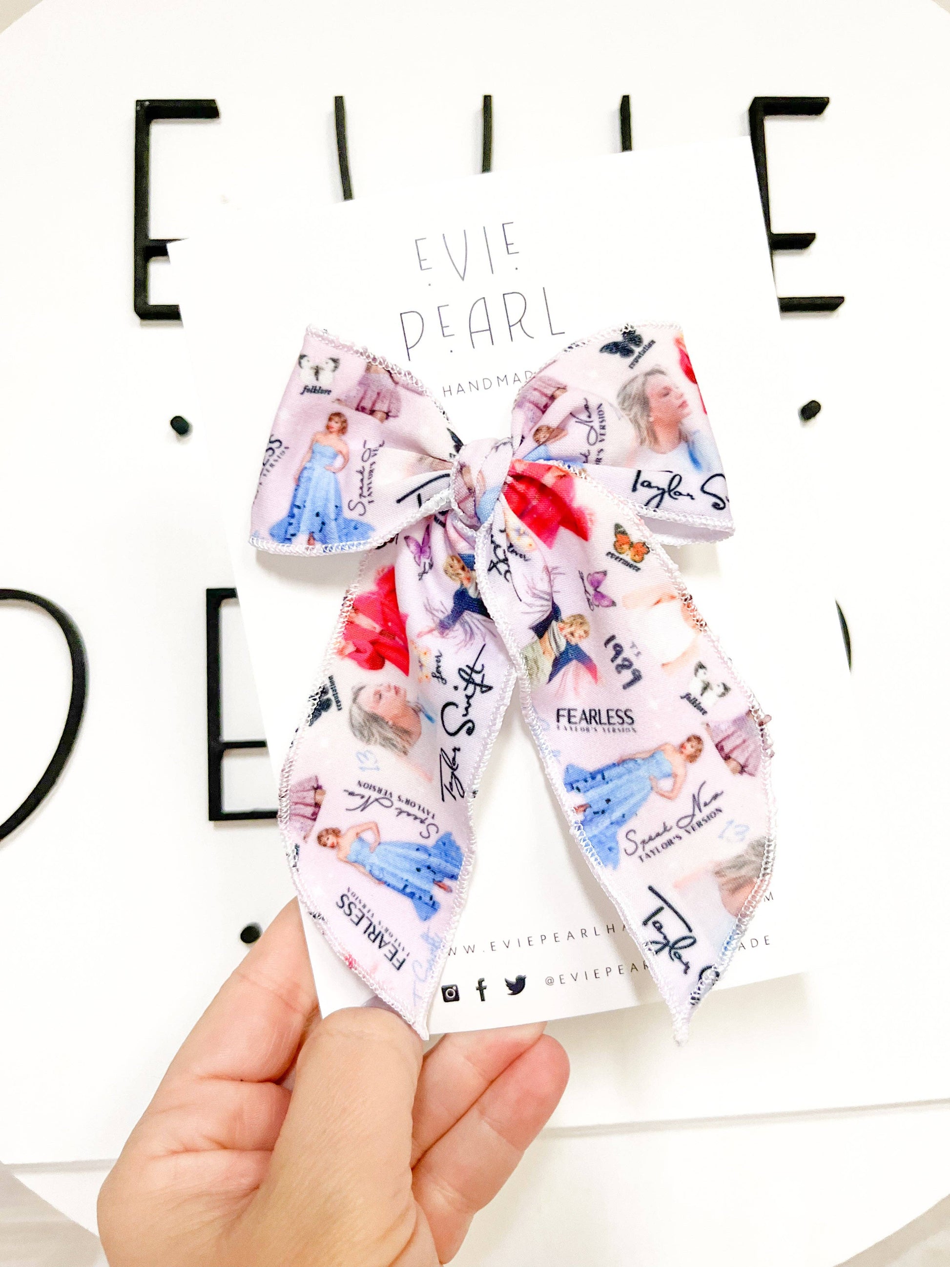 Welcome to the world of Evie Pearl Handmade LLC, where we present the Eras Tour Bow, a charming addition to our kids' accessories collection. Crafted with love and care, this bow is perfect for adding a touch of whimsy to any child's outfit. It's more than just a hair accessory; it's a piece of our journey, a symbol of our passion, and a testament to our commitment to creating beautiful, handmade products. This bow, like every item we create, is designed to bring joy and last for years to come. Enjoy the Eras Tour Bow, a product made with love, from our family to yours.
