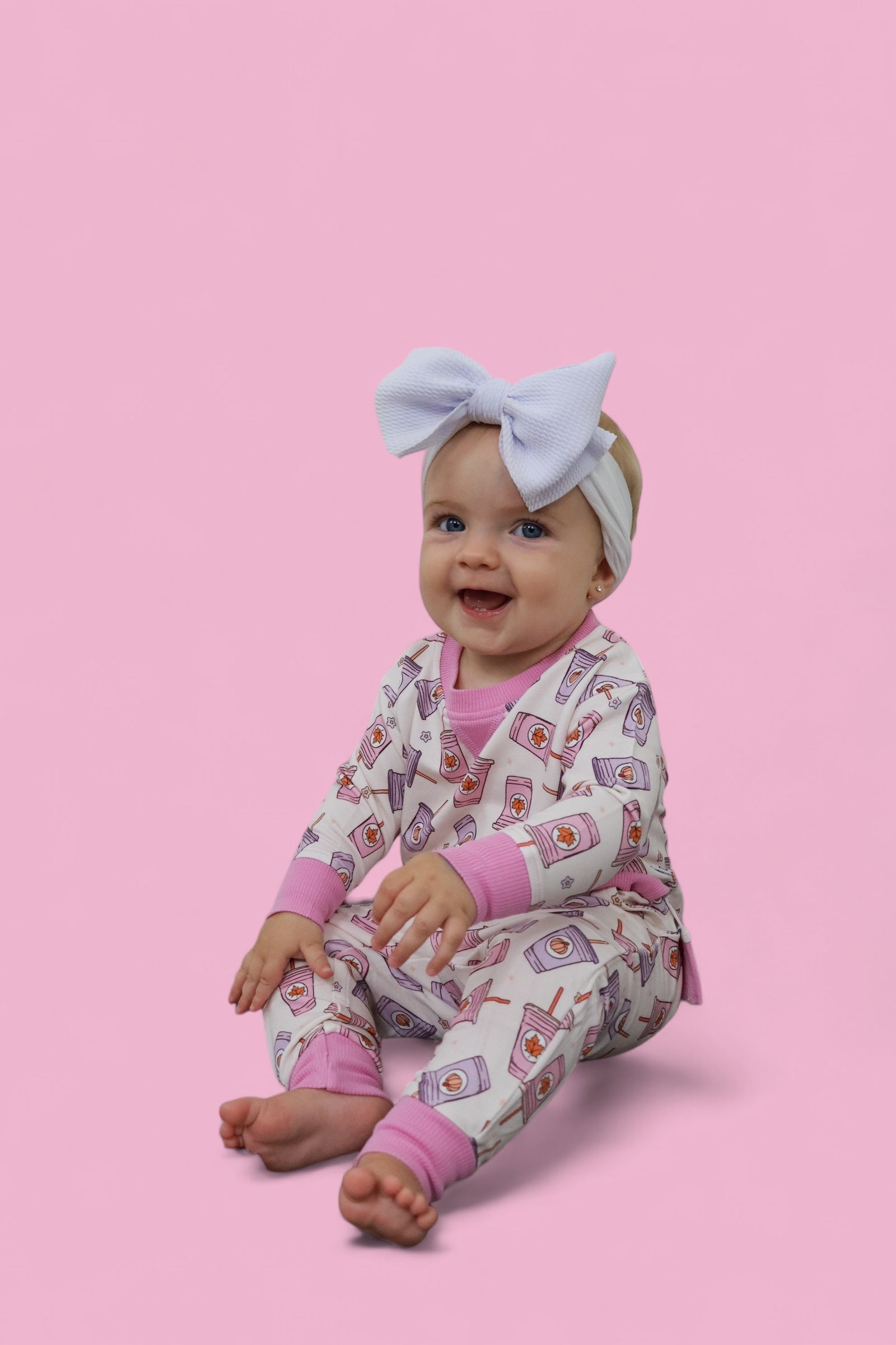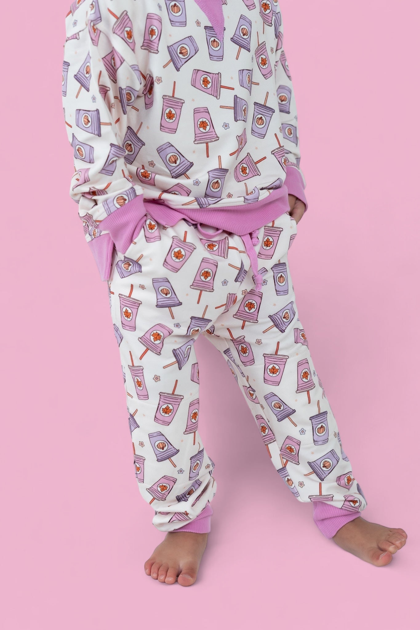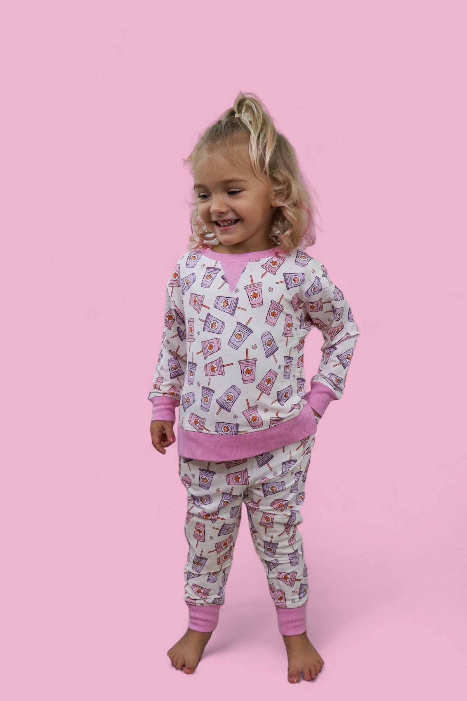 Get cozy this fall season with our EXCLUSIVE ICED PUMPKIN SPICE DREAM JOGGER! Featuring a playful FUN FALL print, these joggers are perfect for your little one. Pair them with the matching pullover for an adorable and comfortable outfit. Don't miss out on this must-have for the season!