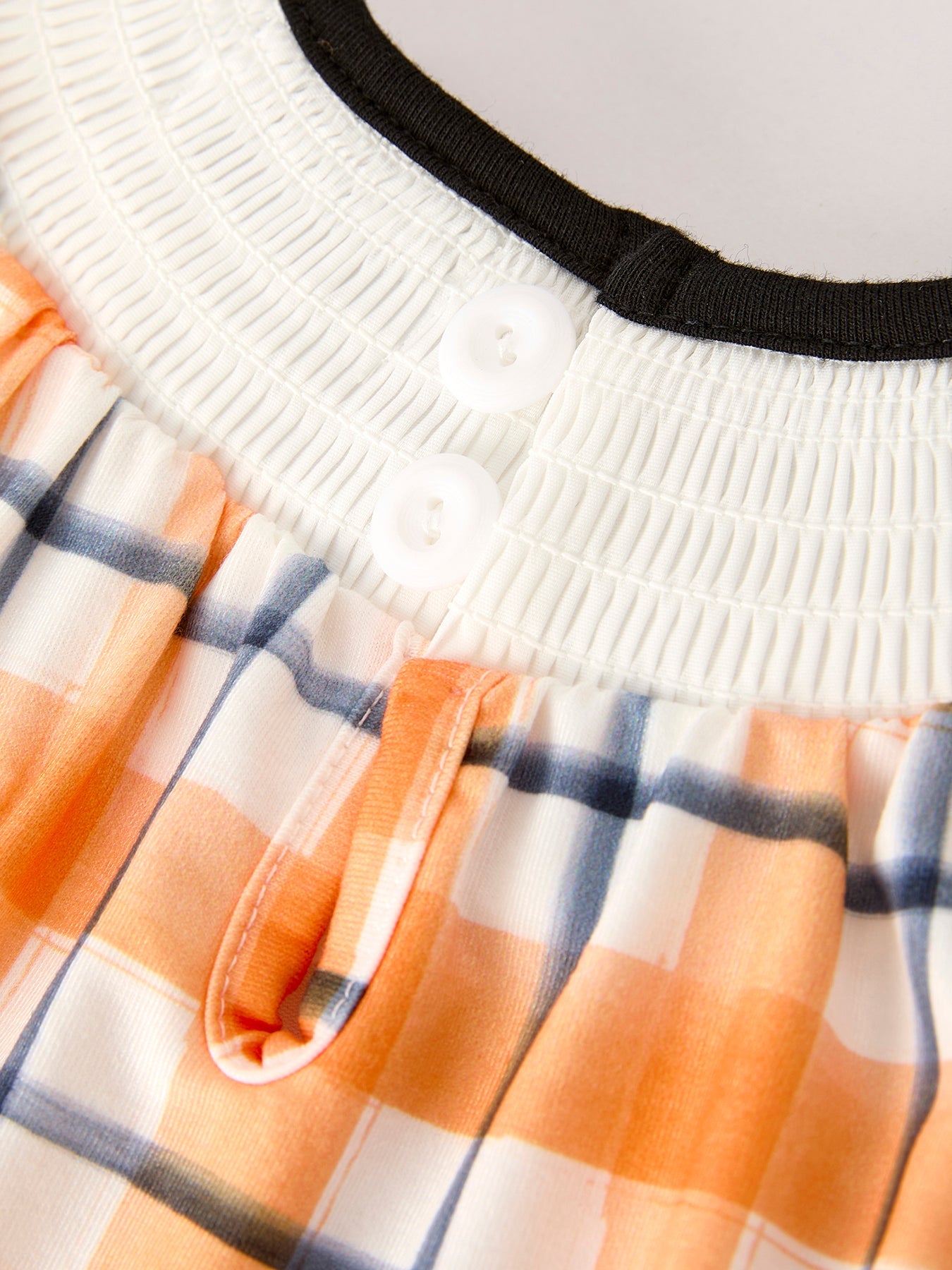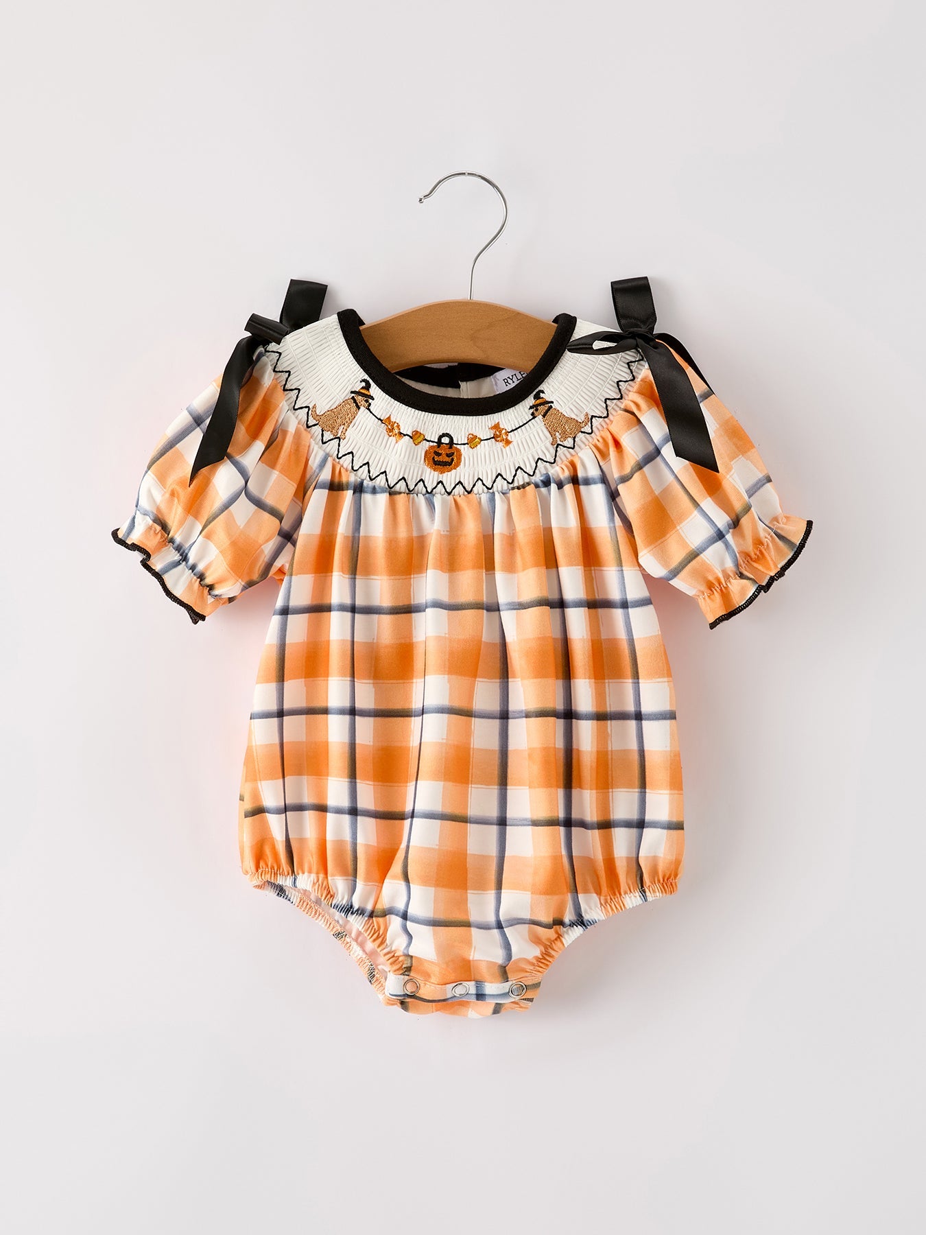 Fall Halloween Orange Embroidery Smocking Plaid Bow Baby Girls Romper