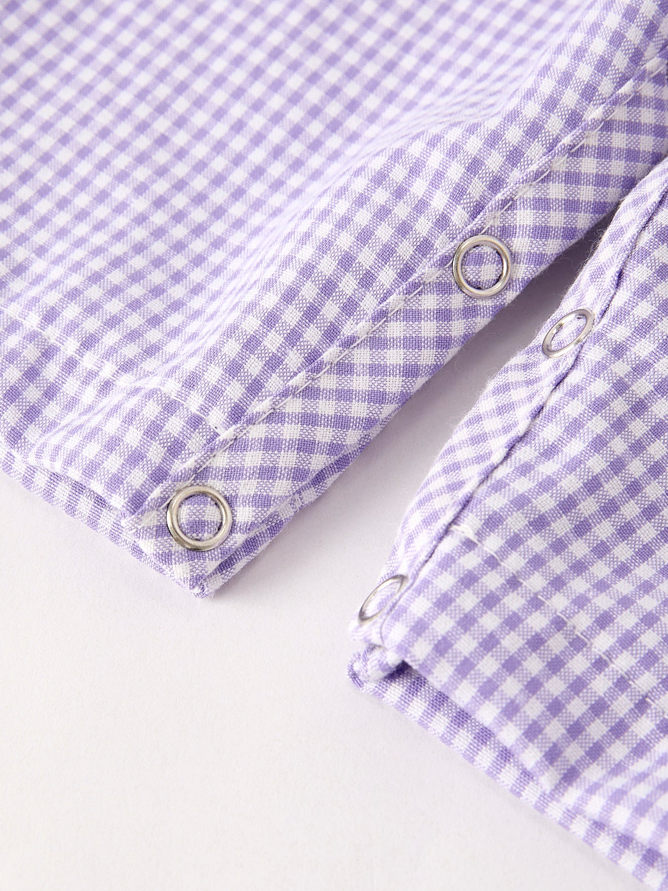 Celebrate the season in adorable style with this Fall Halloween Purple Balloon Pumpkin Cat Smock Embroidery Baby Boy Romper. Crafted for comfort and cuteness, it features charming embroidery that captures the festive spirit. Perfect for keeping your little one cozy while adding a playful touch to their wardrobe this Halloween.