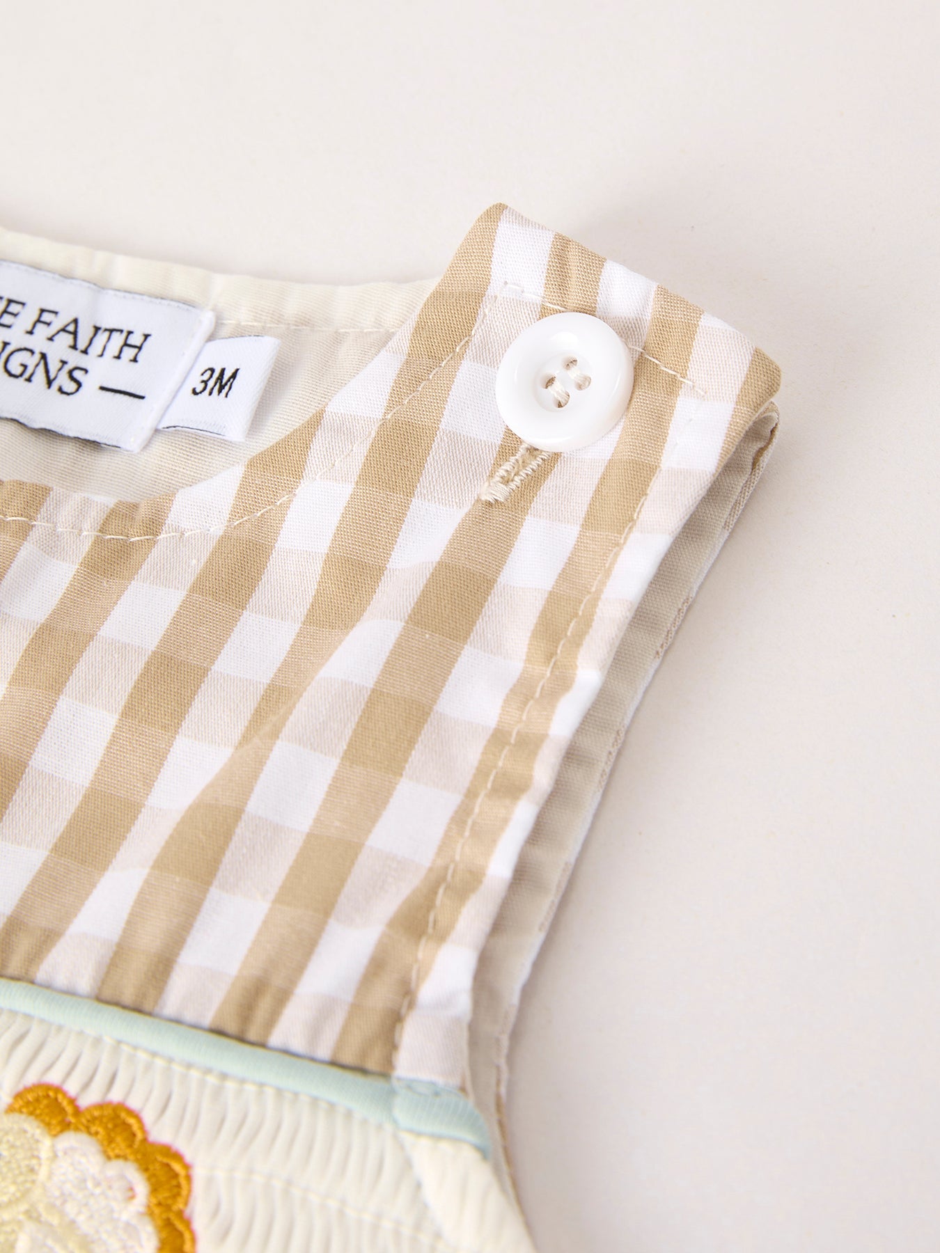 Fall Thanksgiving Apricot Plaid Chick Embroidery Smocking Baby Boys Romper