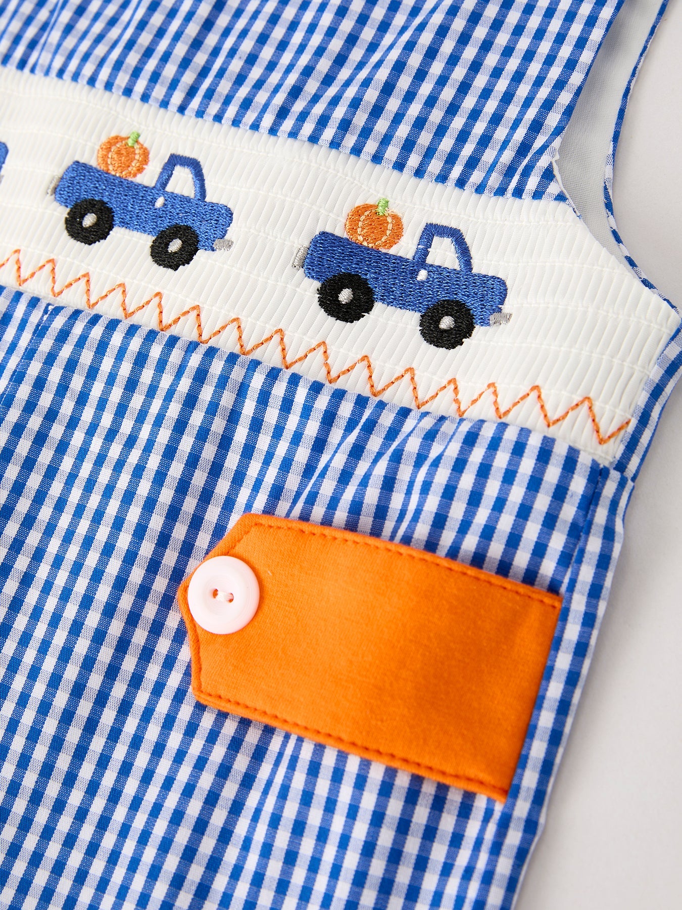 Fall Thanksgiving & Halloween Truck Smock Embroidery Baby Boy Romper