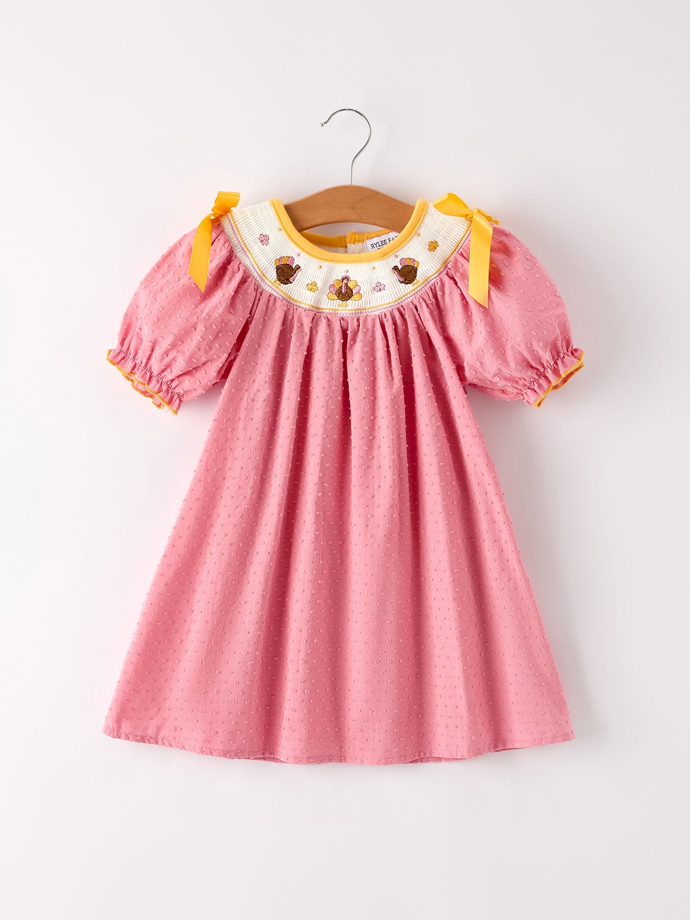 Celebrate the season in style with this charming Fall Thanksgiving dress for girls. Featuring delicate turkey and leaf embroidery, smocking details, and a sweet bow, it perfectly captures autumn’s festive spirit. Crafted for comfort and elegance, this dress makes any holiday gathering extra special and memorable.