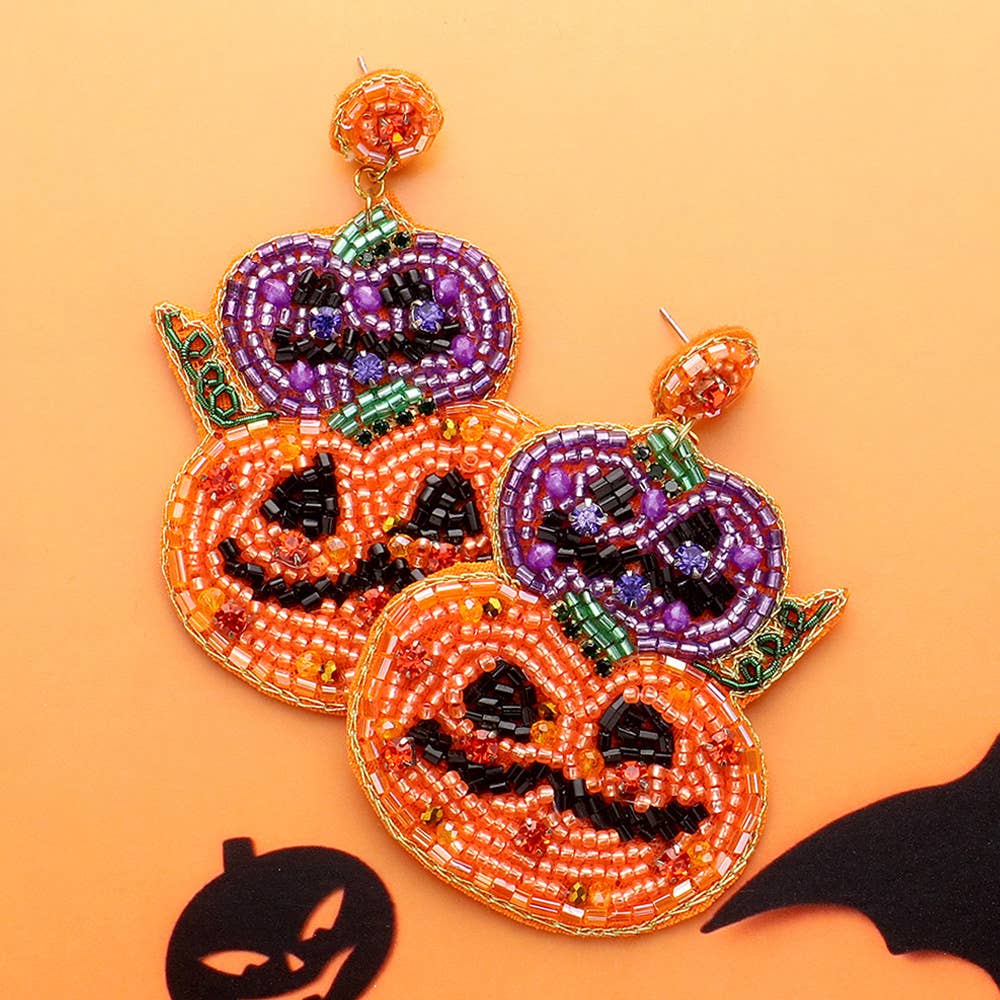 Felt Back Halloween Pumpkin Beaded Dangle Earrings