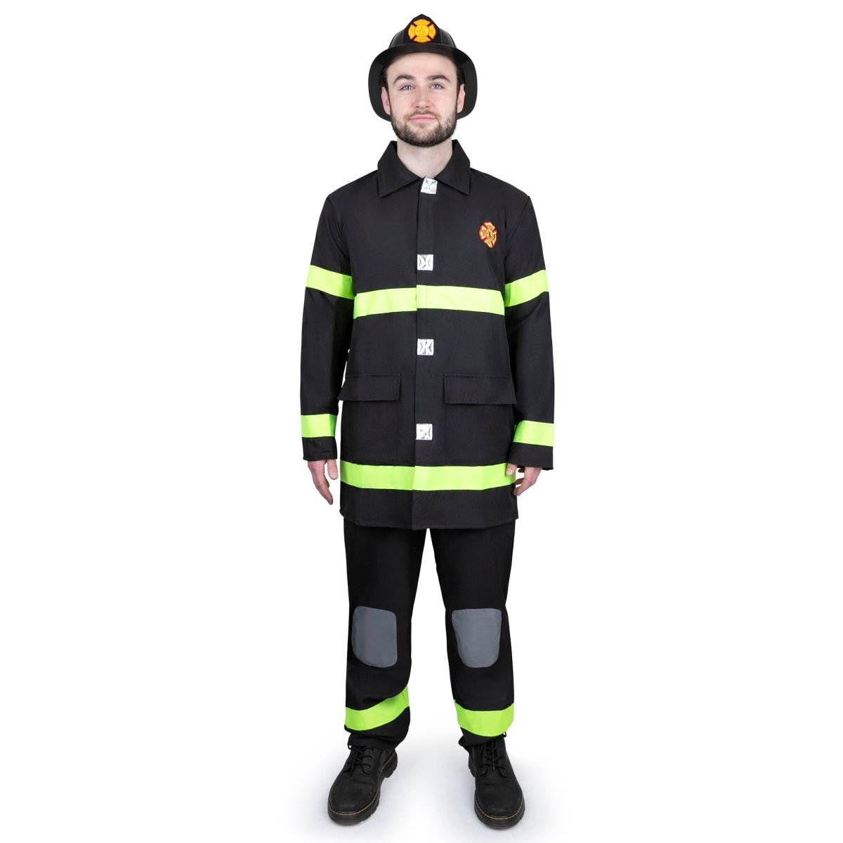Surely this exceptionally realistic looking fire fighter costume will get them all fired up. The remarkably close, resemblance to the real suit certainly makes this adult black fire fighter costume a true winner.
