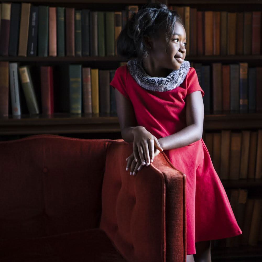 She'll be ready to twirl in our soft organic cotton ponte fit and flare skater dress. Features a festive faux fur collar, cap sleeves, and decorative front pockets with gold button detail.