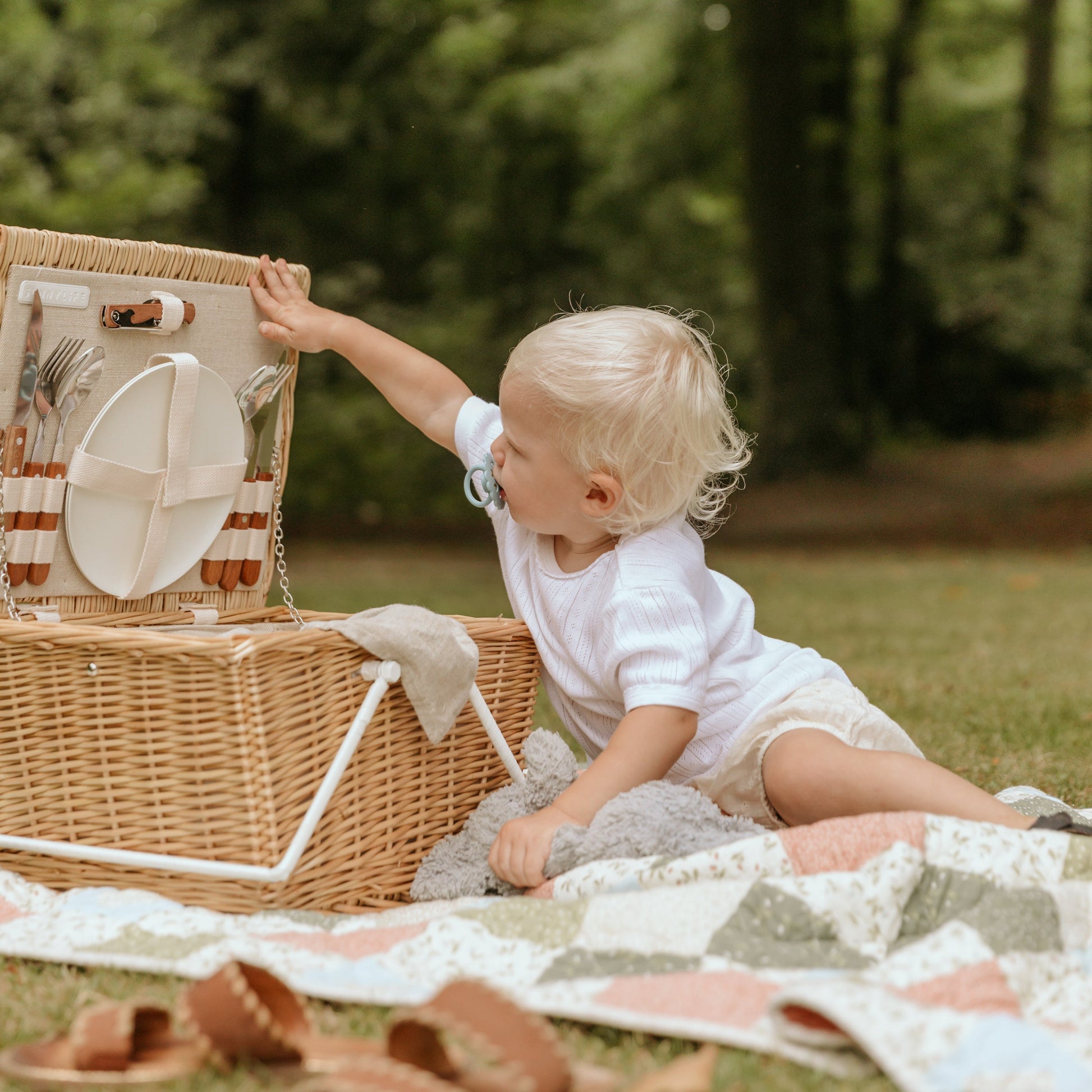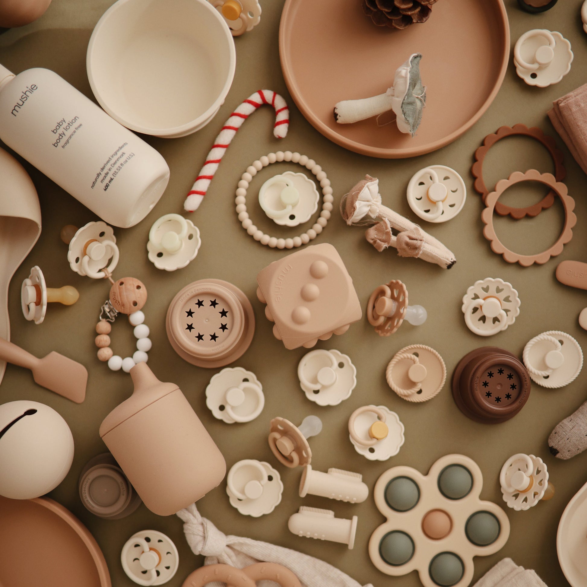 The FRIGG Fairytale rubber pacifiers are thoughtfully designed for your baby's comfort with natural latex and soothing properties. Each pacifier color draws inspiration from a timeless story by Danish author Hans Christian Andersen. The outward curve keeps the pacifier off delicate skin while features like air holes and a security handle ensure your baby's safety. Within the pacifier shield, air holes reveal eight little hearts that recreate Andersen's carved artwork motif and symbolize the universal language of love.
