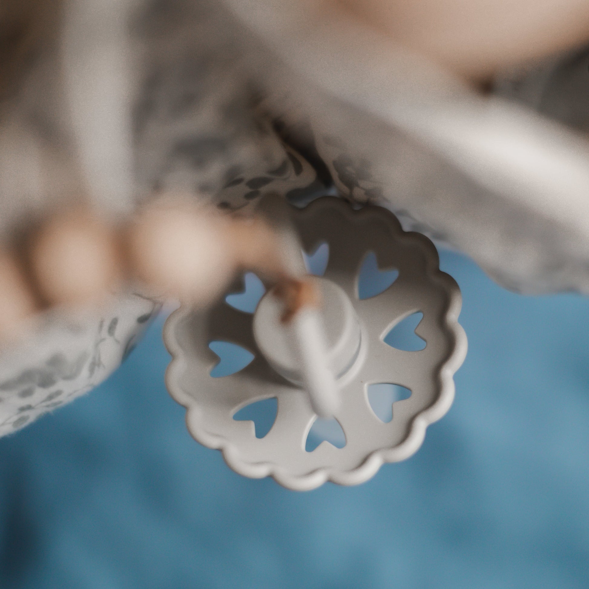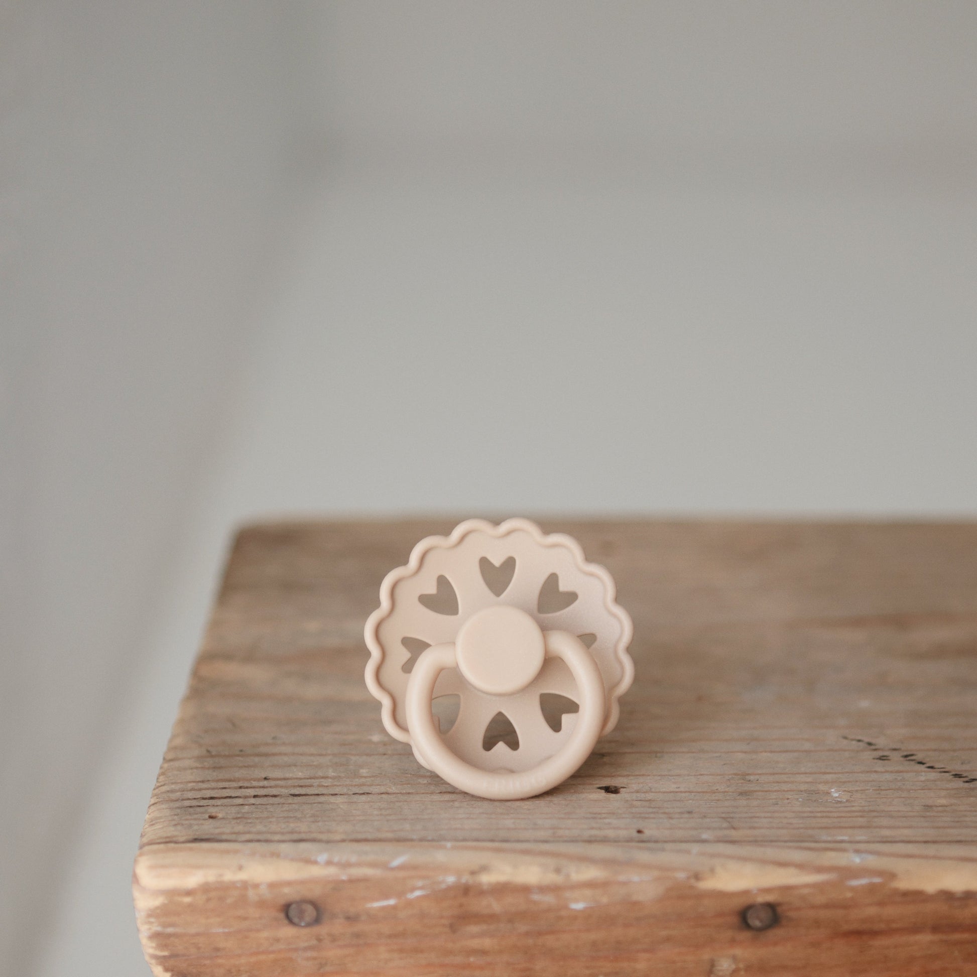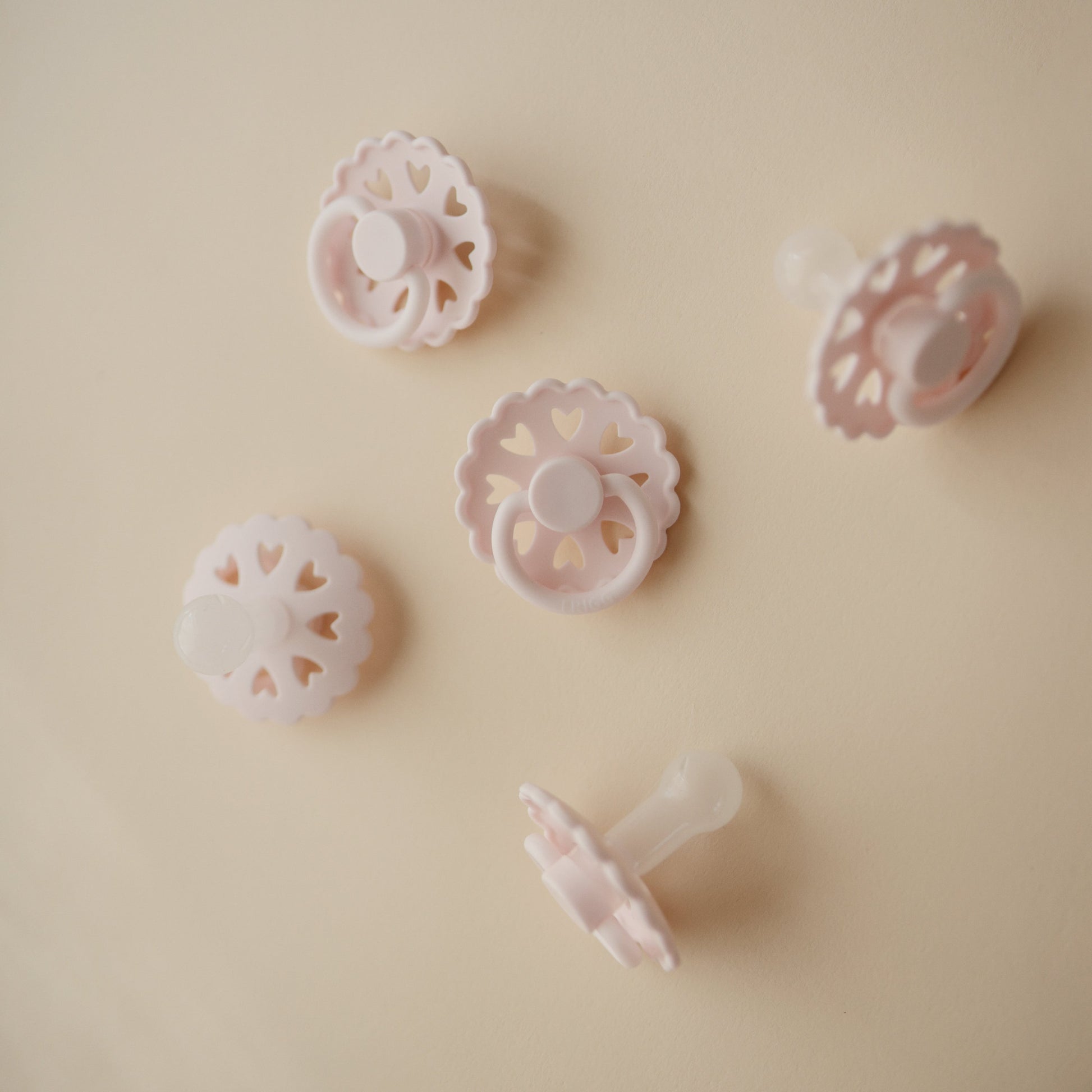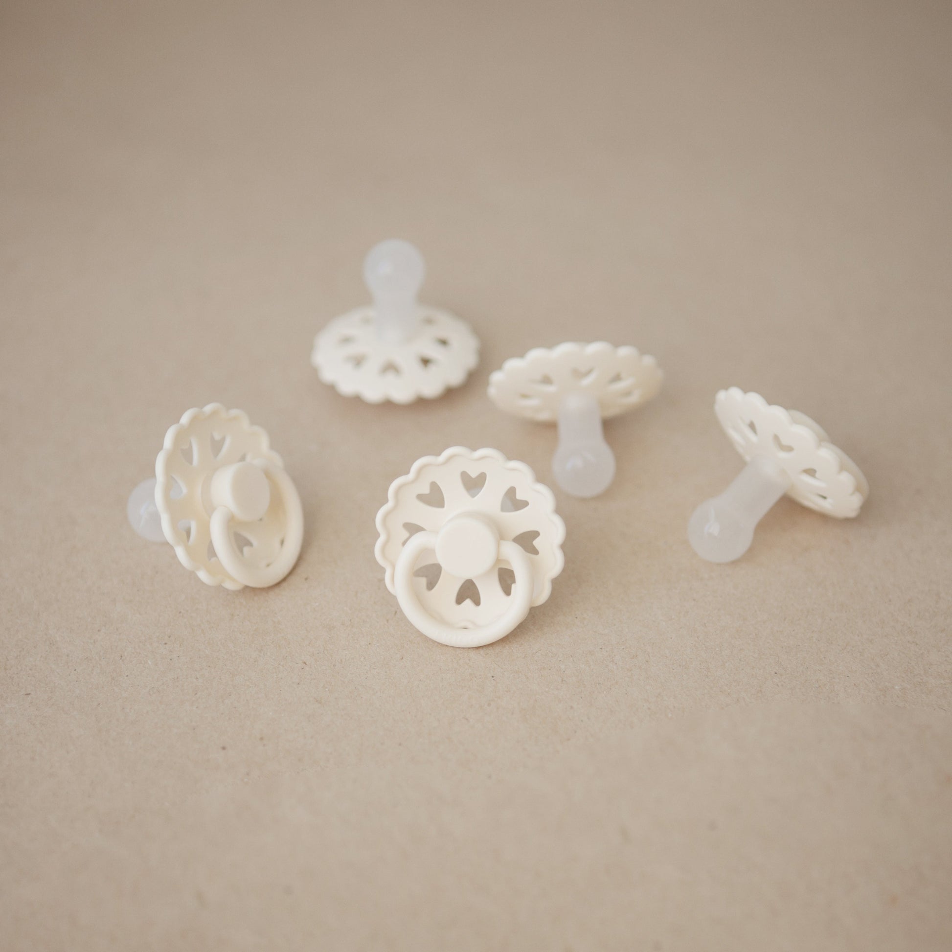 The FRIGG Fairytale silicone pacifiers are thoughtfully designed for your baby's comfort with an improved SilkySoftª nipple and an innovative Click-lock system. Each pacifier color draws inspiration from a timeless story by Danish author Hans Christian Andersen. The outward curve keeps the pacifier off delicate skin while features like air holes and a security handle ensure your baby's safety. Within the pacifier shield, air holes reveal eight little hearts that recreate Andersen's carved artwork motif and symbolize the universal language of love.