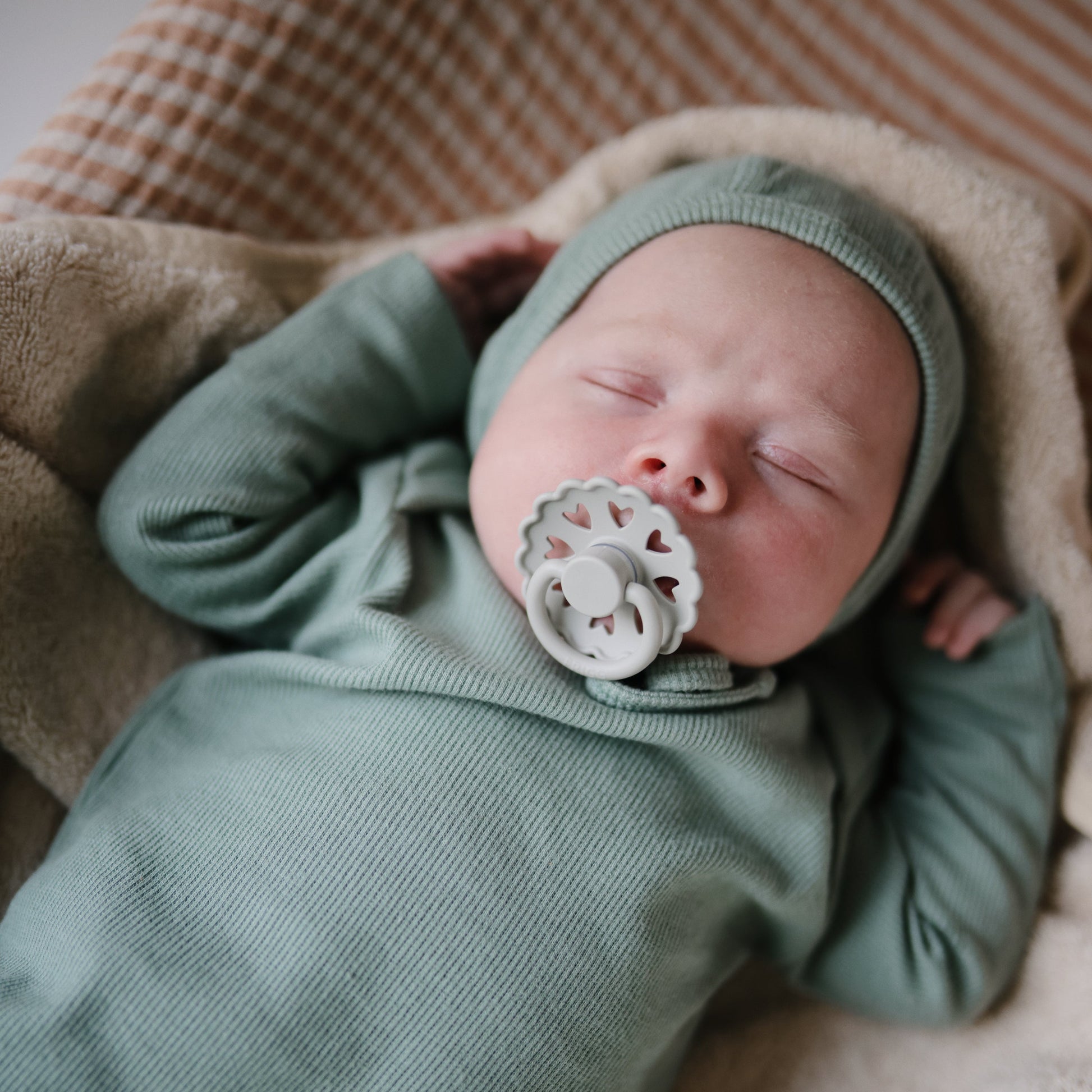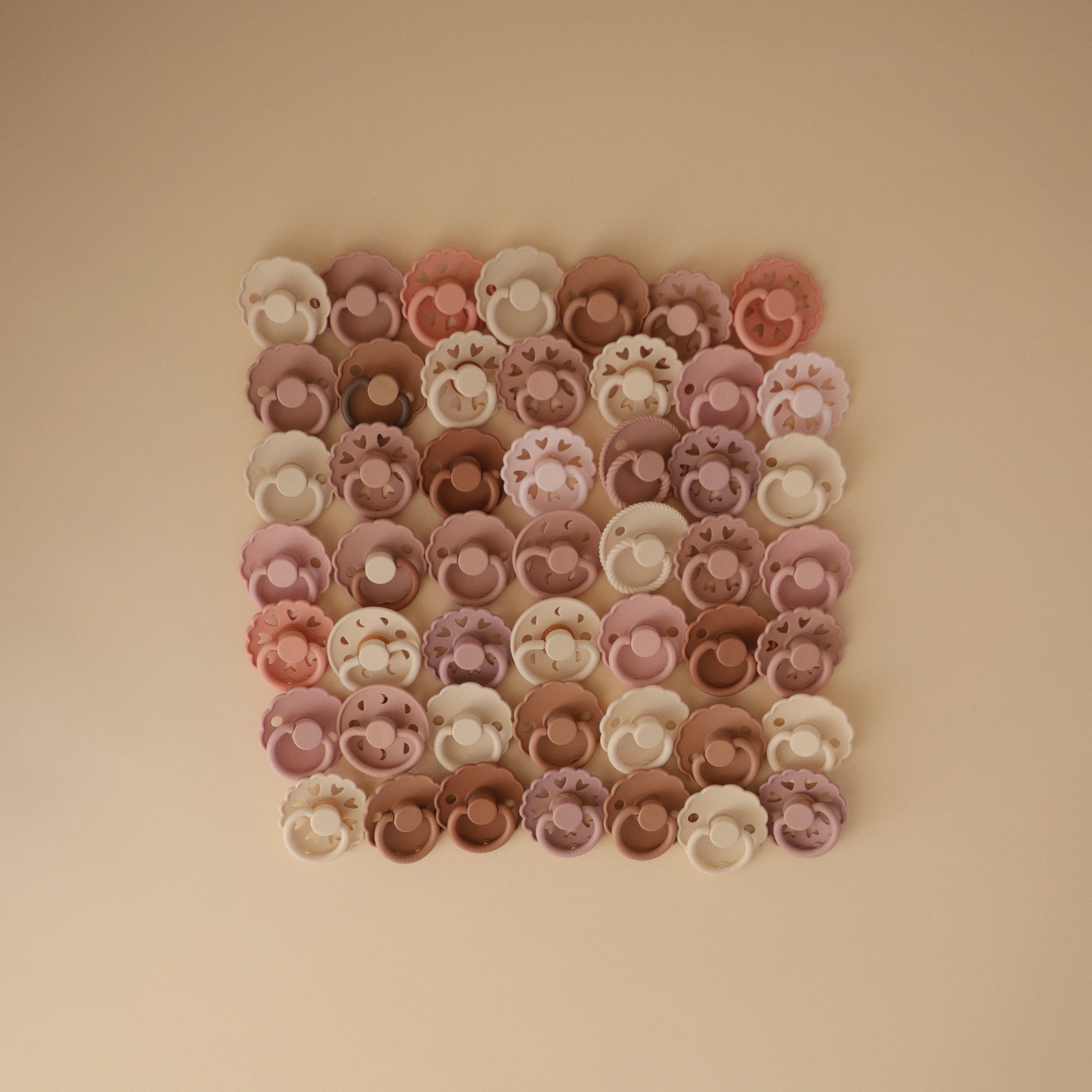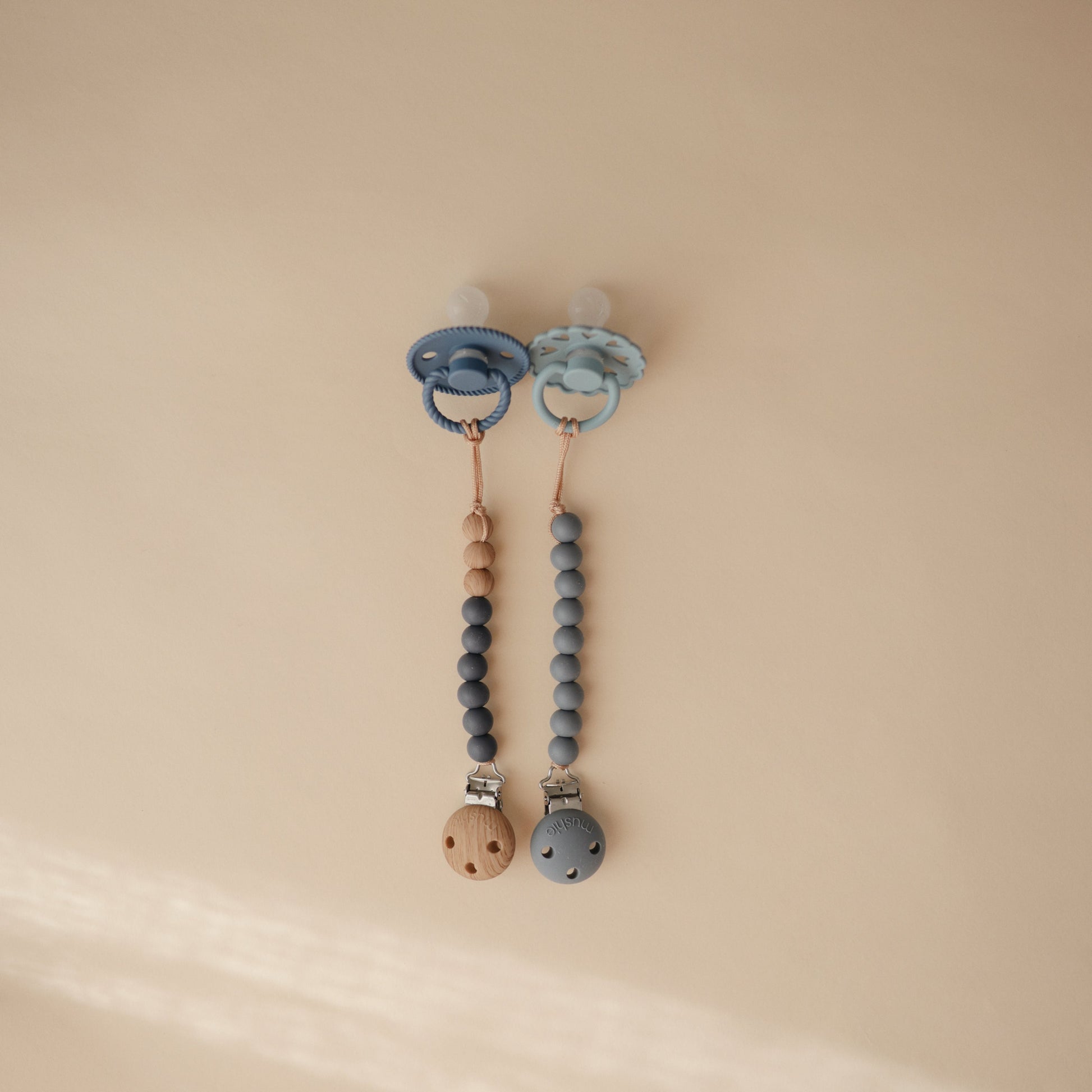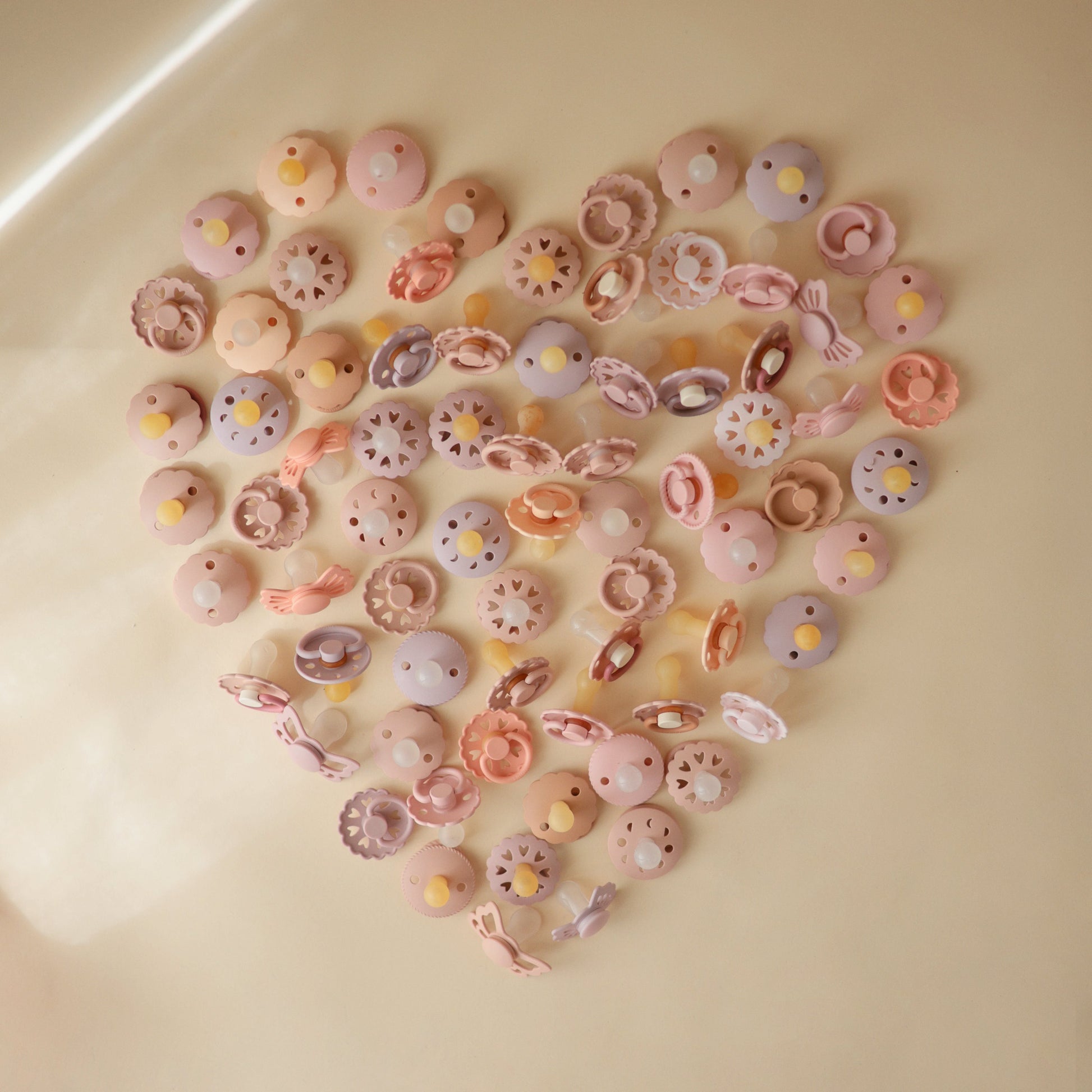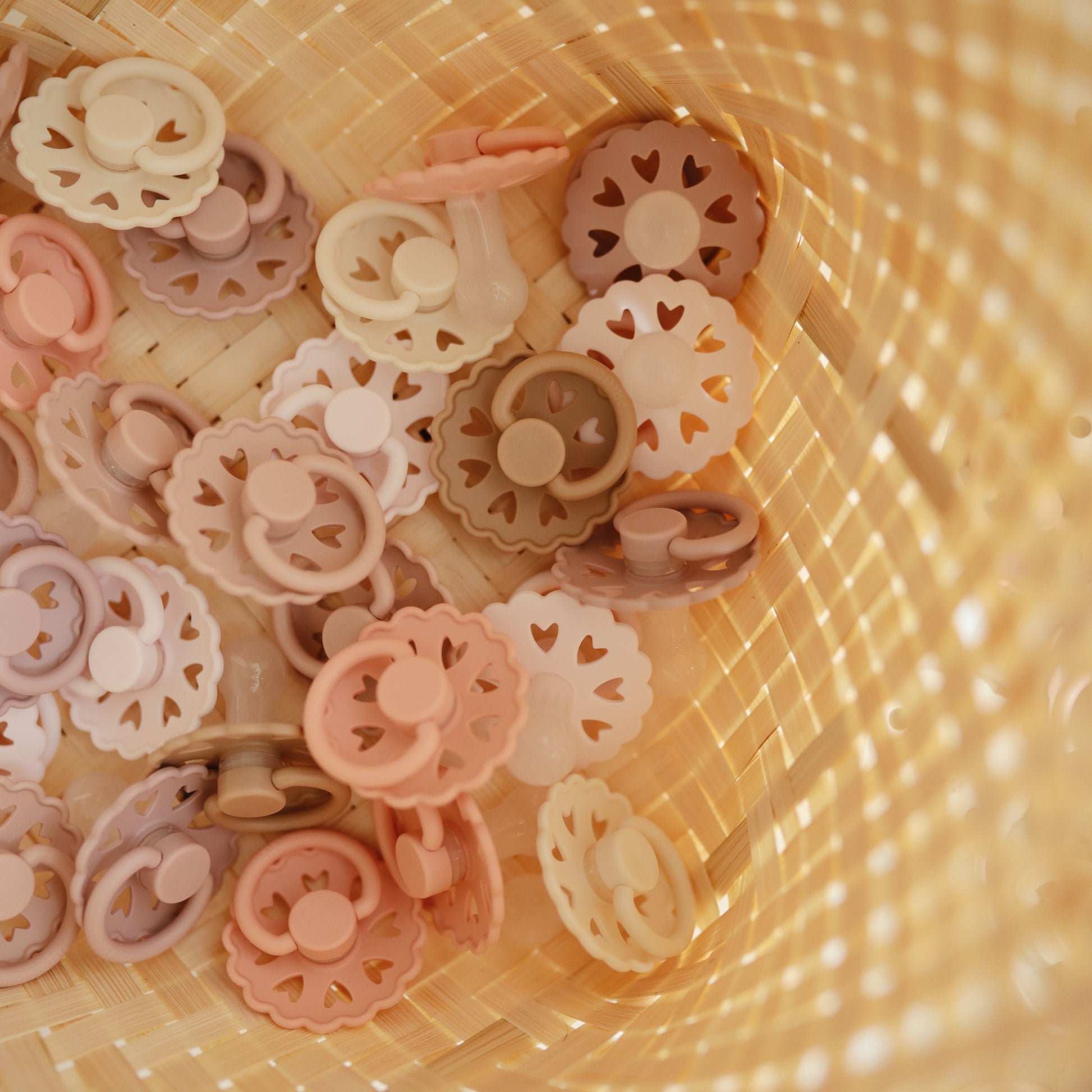 The FRIGG Fairytale silicone pacifiers are thoughtfully designed for your baby's comfort with an improved SilkySoftª nipple and an innovative Click-lock system. Each pacifier color draws inspiration from a timeless story by Danish author Hans Christian Andersen. The outward curve keeps the pacifier off delicate skin while features like air holes and a security handle ensure your baby's safety. Within the pacifier shield, air holes reveal eight little hearts that recreate Andersen's carved artwork motif and symbolize the universal language of love.
