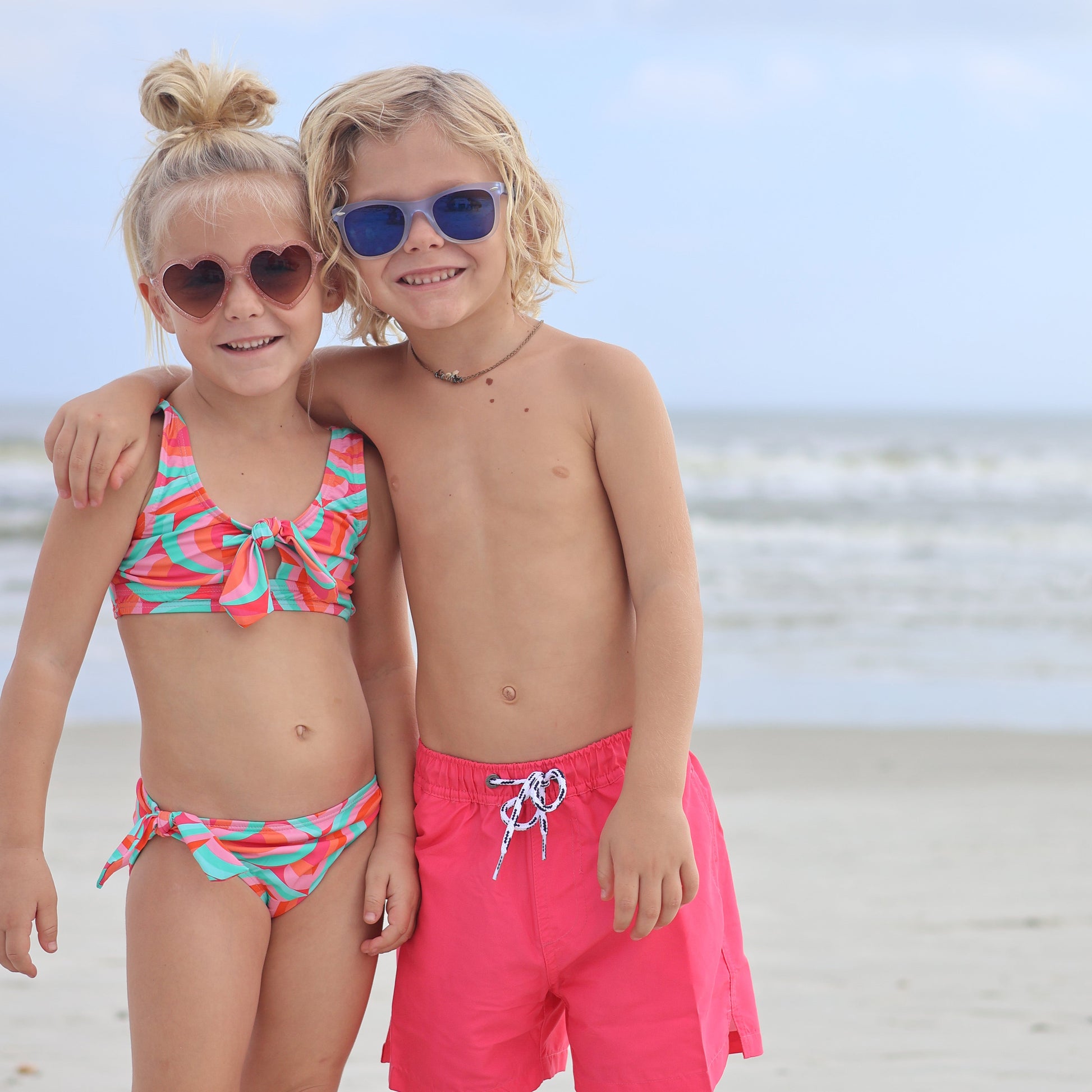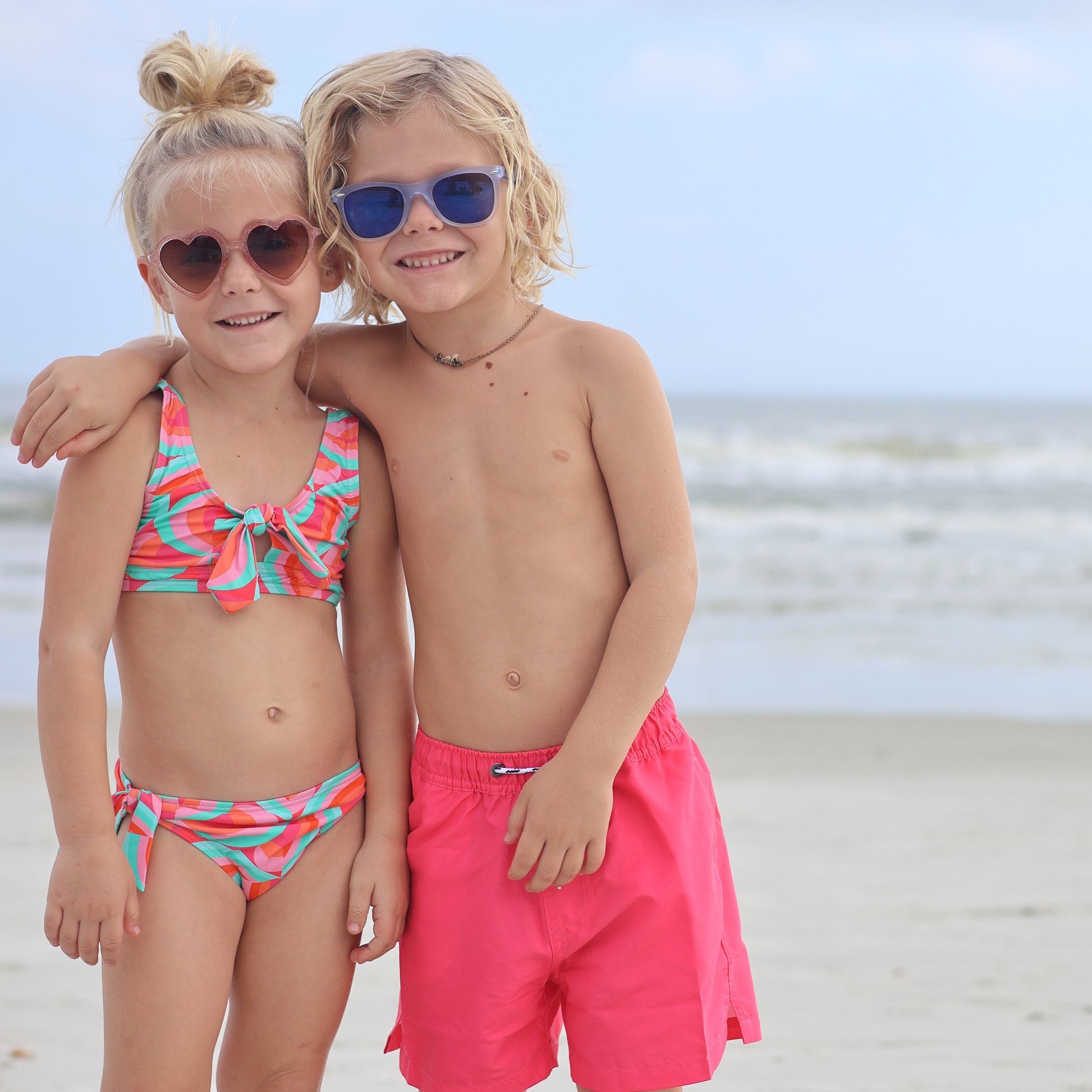 Bright and bold, your girl will be making a splash at the pool in our fun Geo Melon print. This girls' crop bikini features ties on the top and bottoms and a keyhole cut-out at the front. Snapper Rock sustainable swimwear is made from REPREVE® recycled fabric, complete with home compostable packaging and recycled paper swing tags. Look good while doing great for the environment!