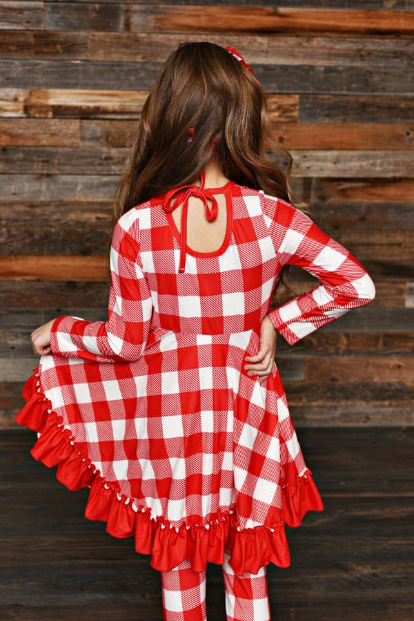 Red Plaid 2piece Dress&Legging Set