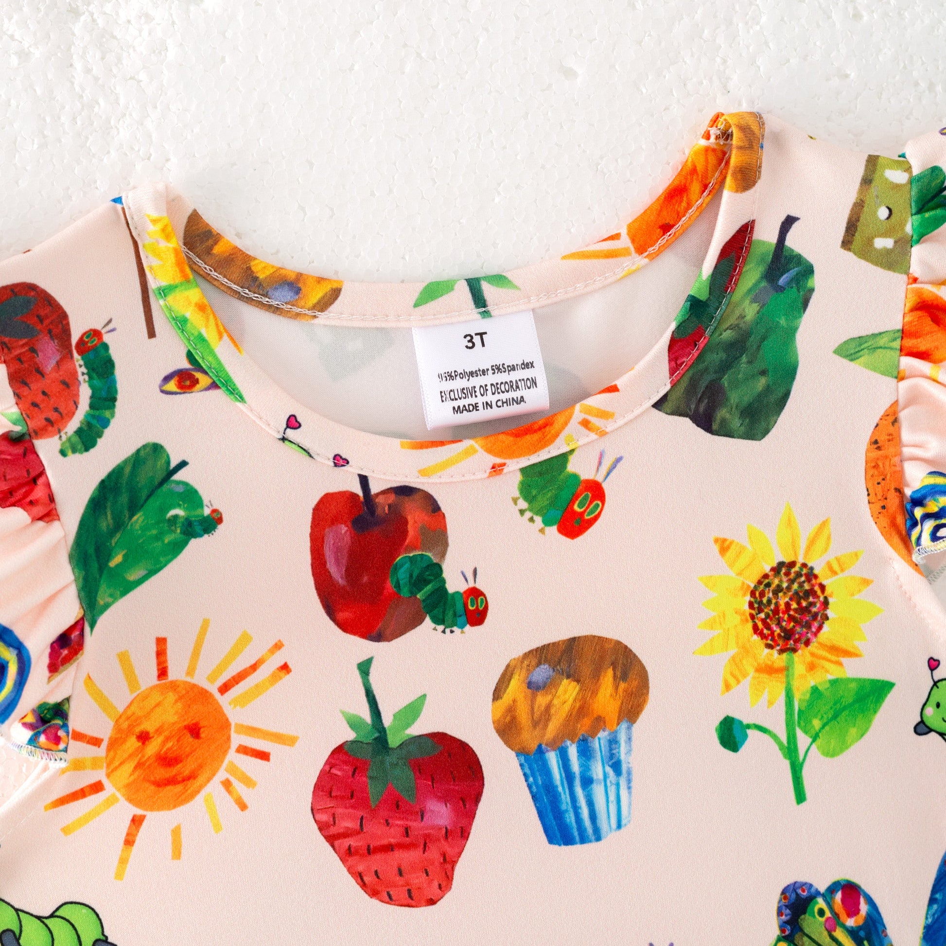 Girls Summer Apple Sunflower Print Milk Silk Dress