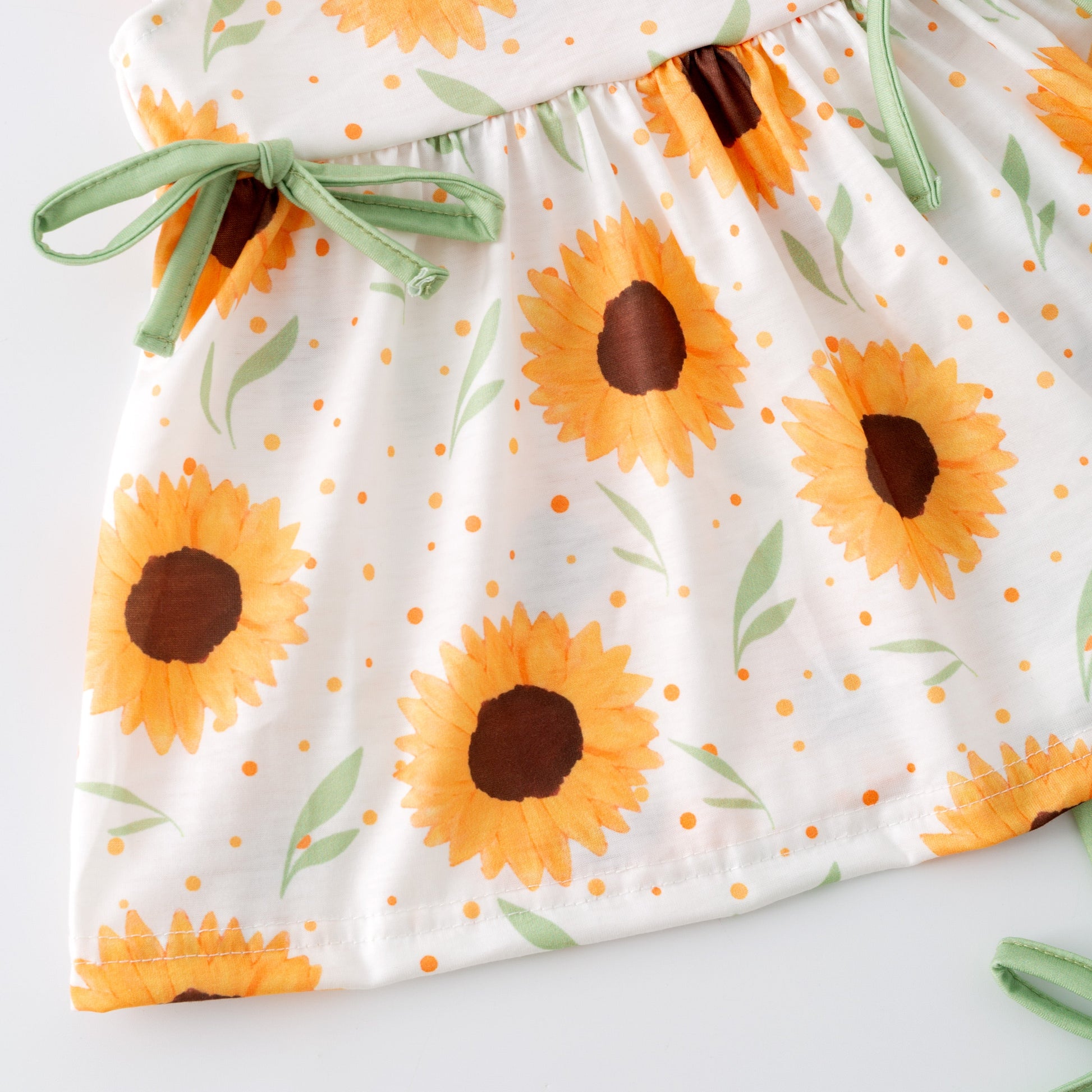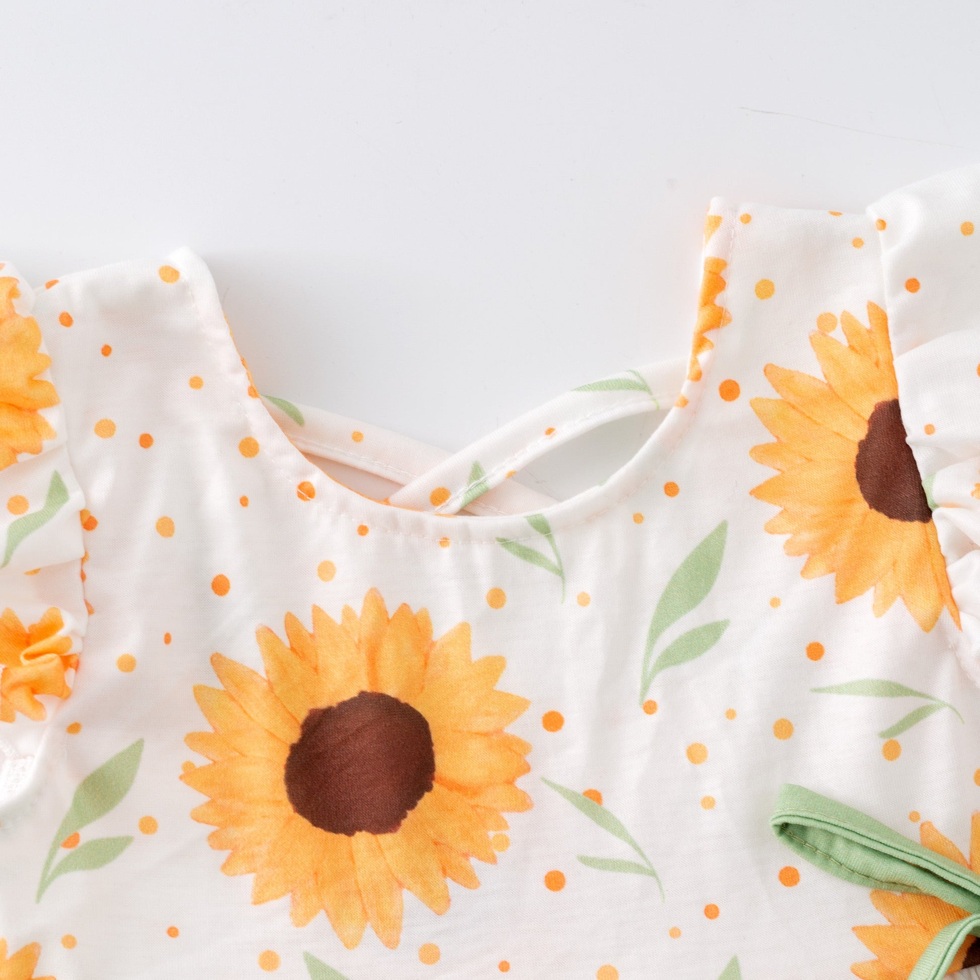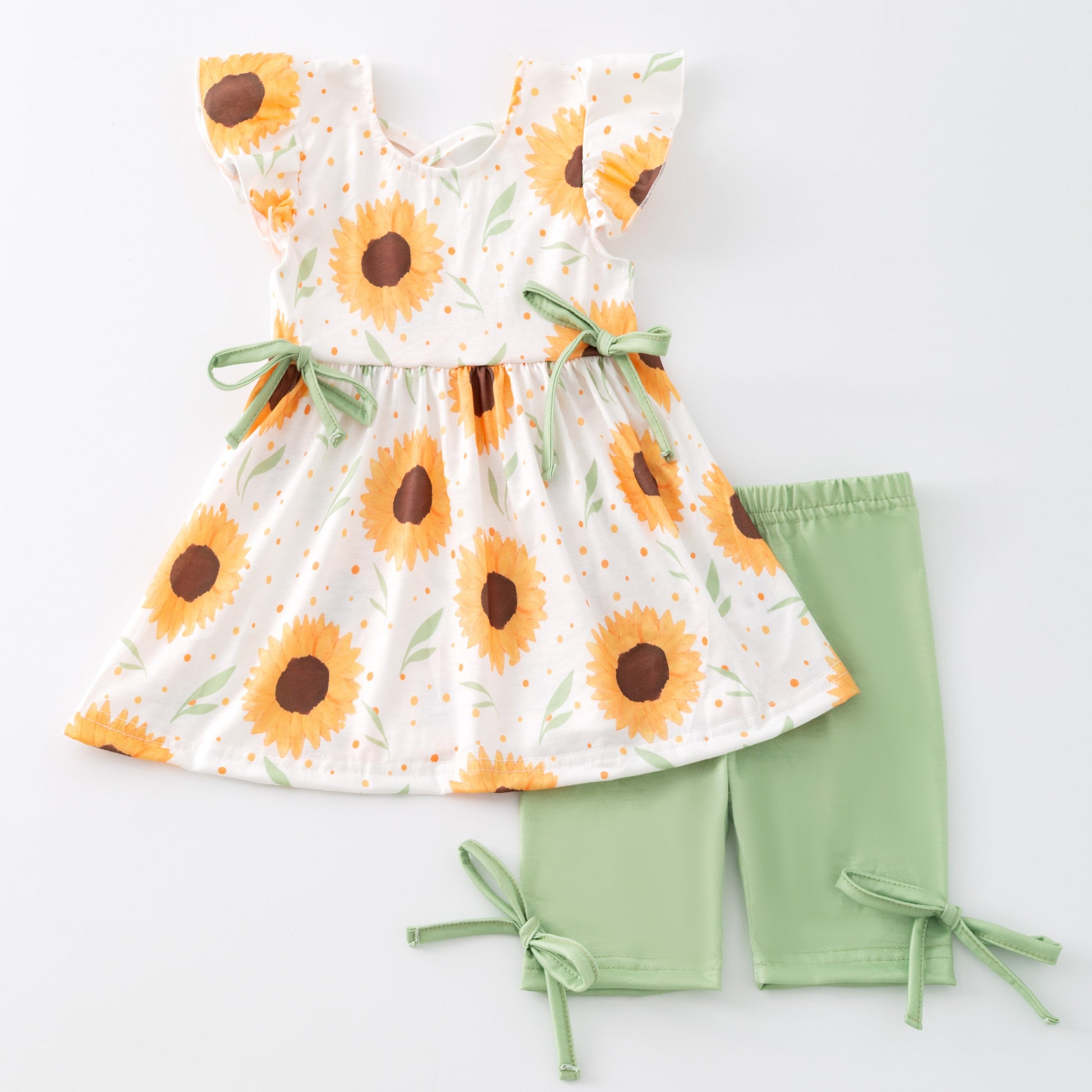 Get ready for some summertime fun with our Girls Summer Sunflower Print Lemon Green Short Set! This playful and unique outfit features a cheerful sunflower print and a refreshing lemon green color. Perfect for a day of play or a fun get-together, this set is sure to bring a smile to your little one's face.