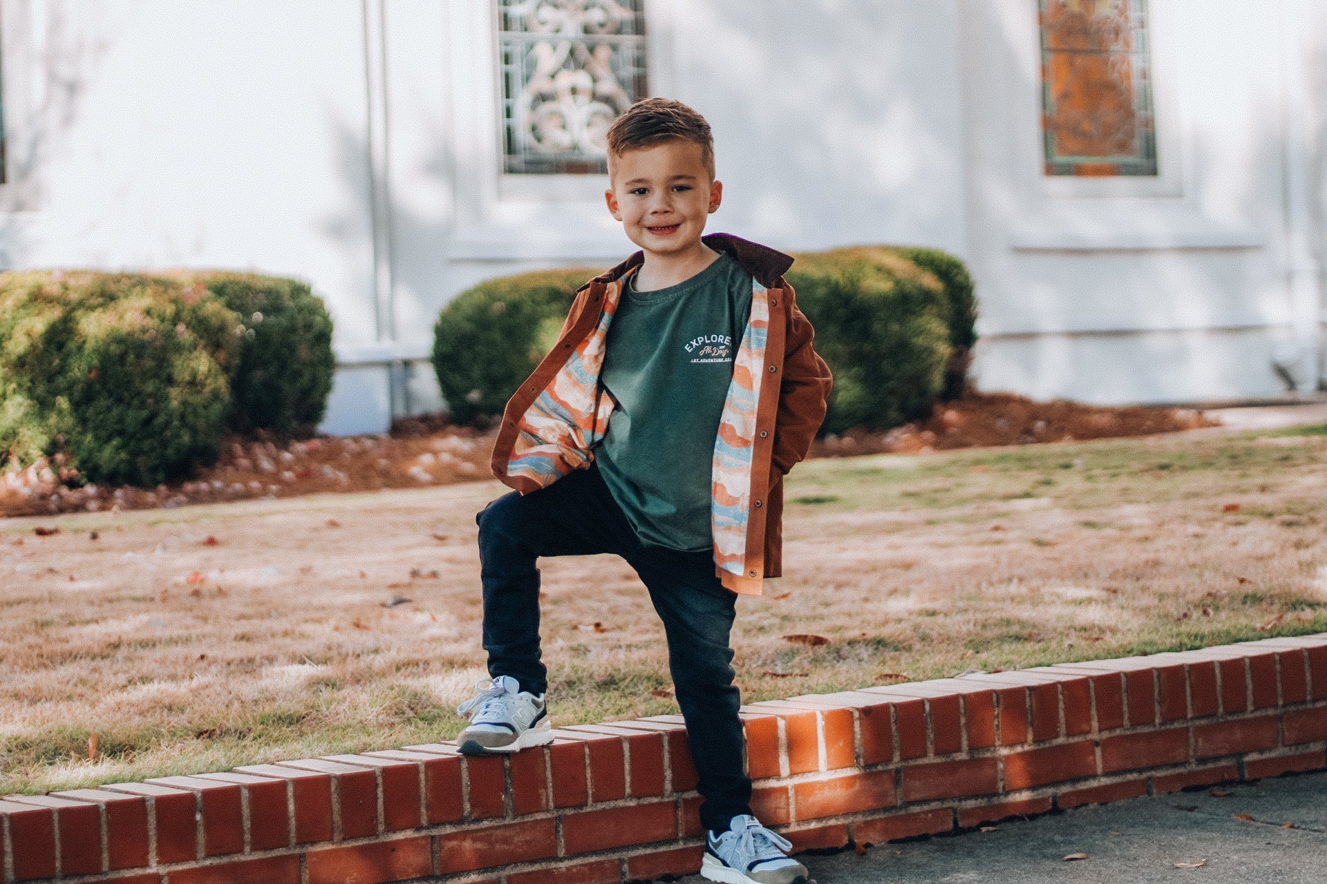 Polyester blend making this an ultra-soft, medium-weight jacket with a kid-designed lining. Finished with brushed gold snap buttons for easy bundling!
