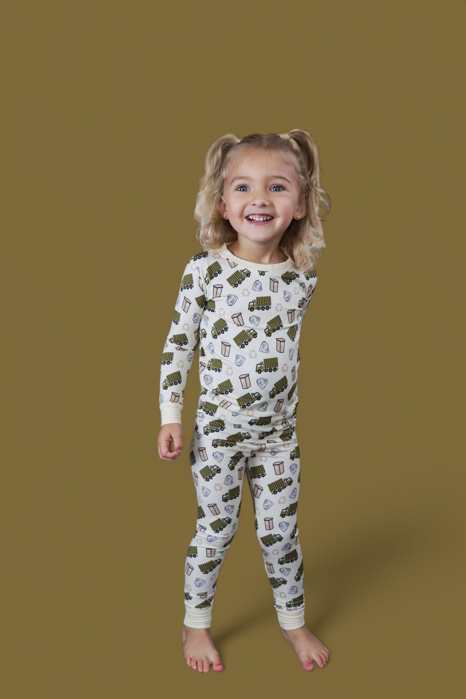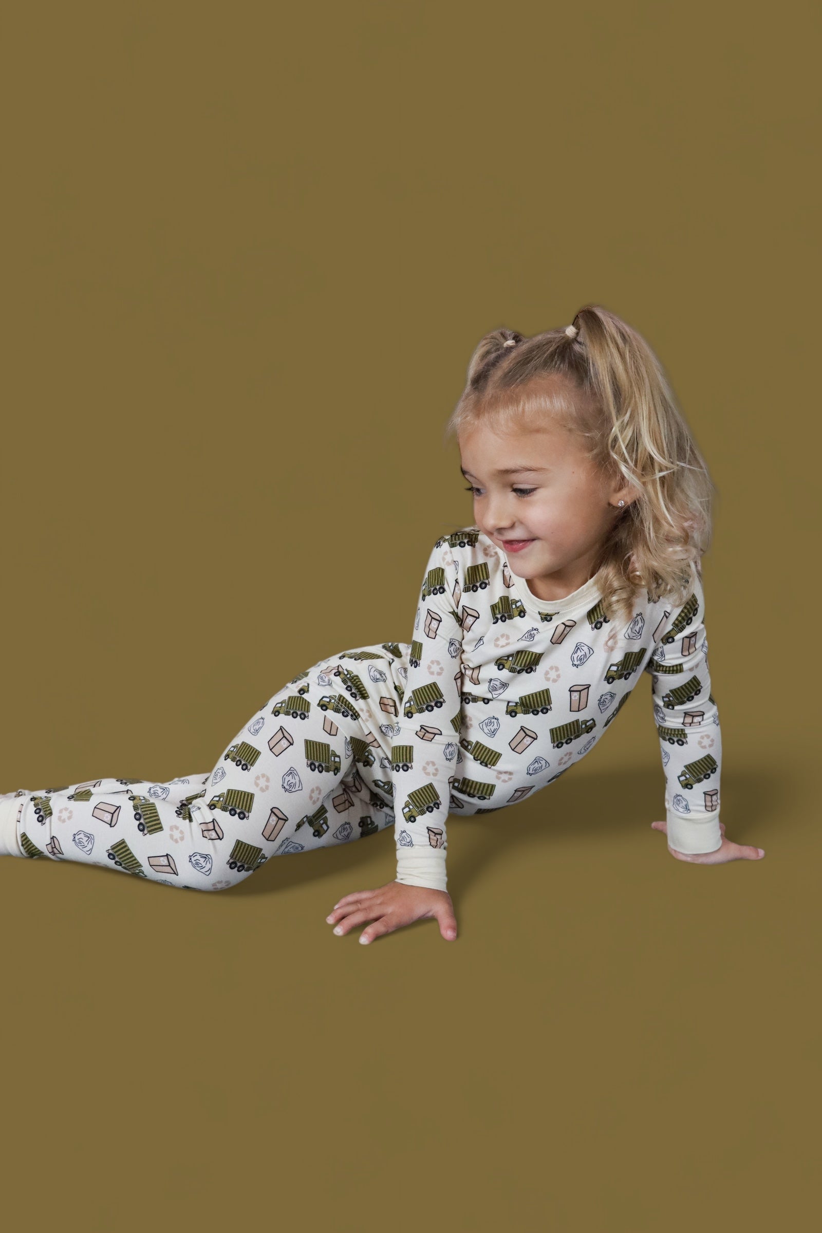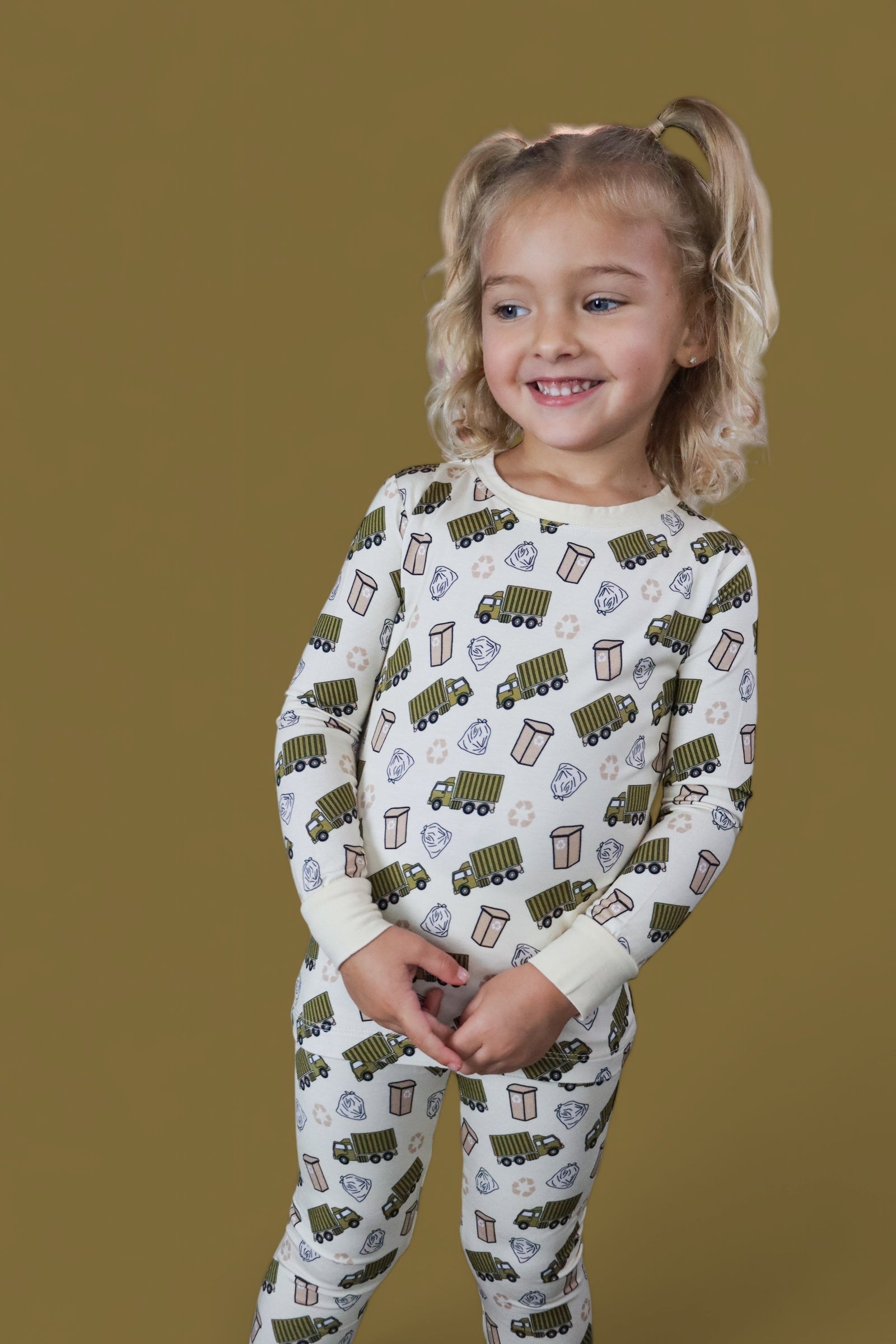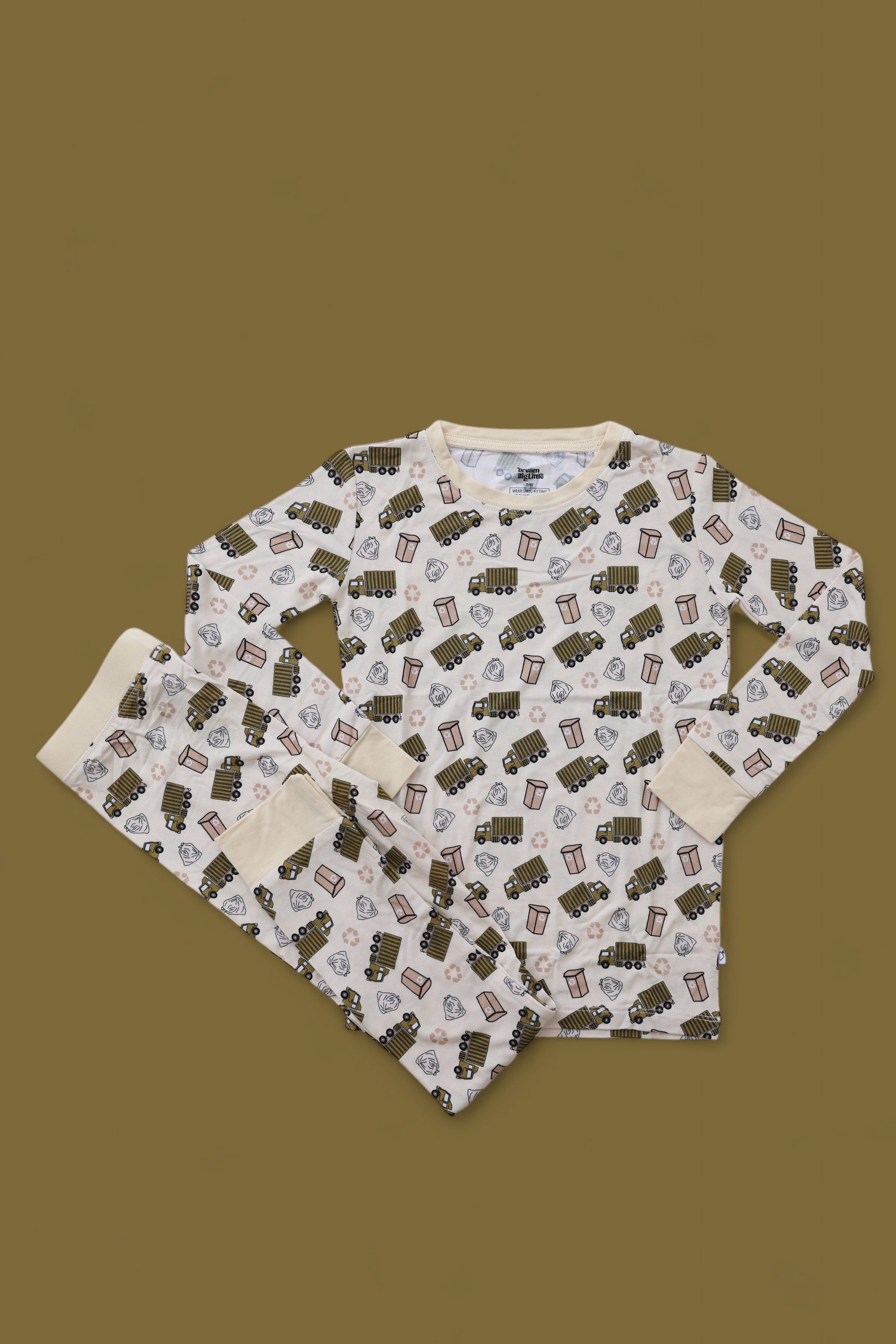 The Good Ol' Garbage Dream Set is perfect for little ones who can’t wait for the garbage truck to make its rounds! This playful pajama set pays homage to the unsung heroes of our environment—the garbage collectors—while encouraging kids to embrace recycling and caring for our planet.