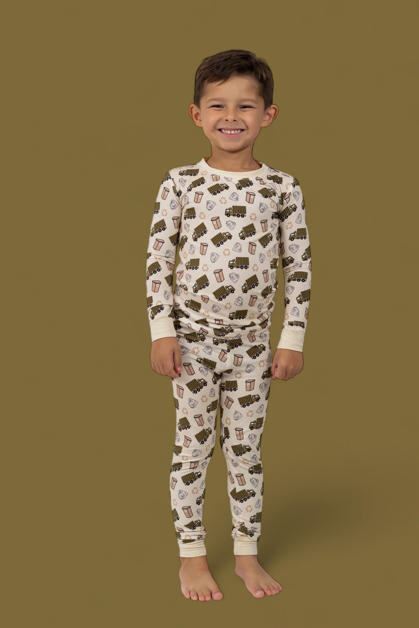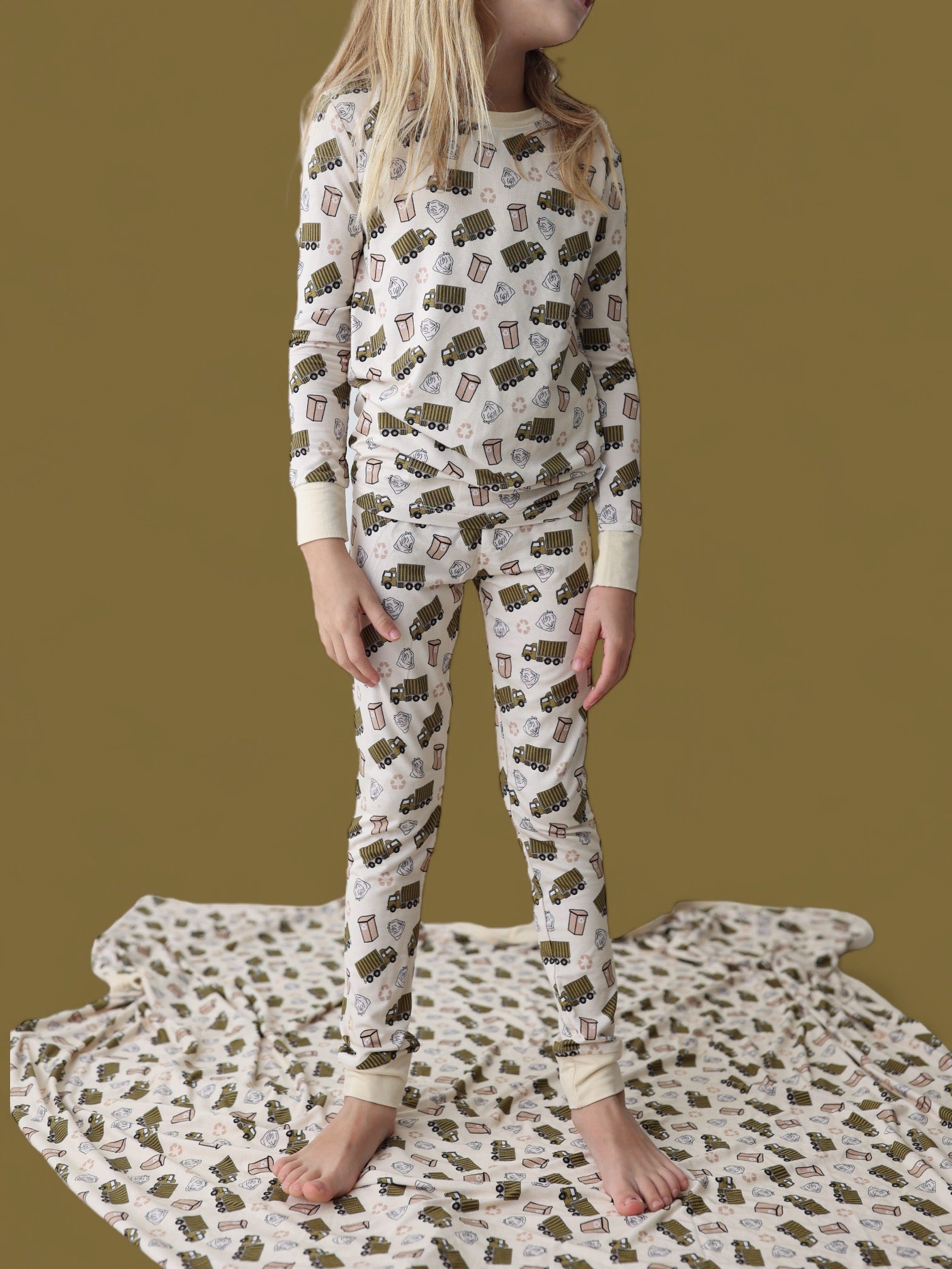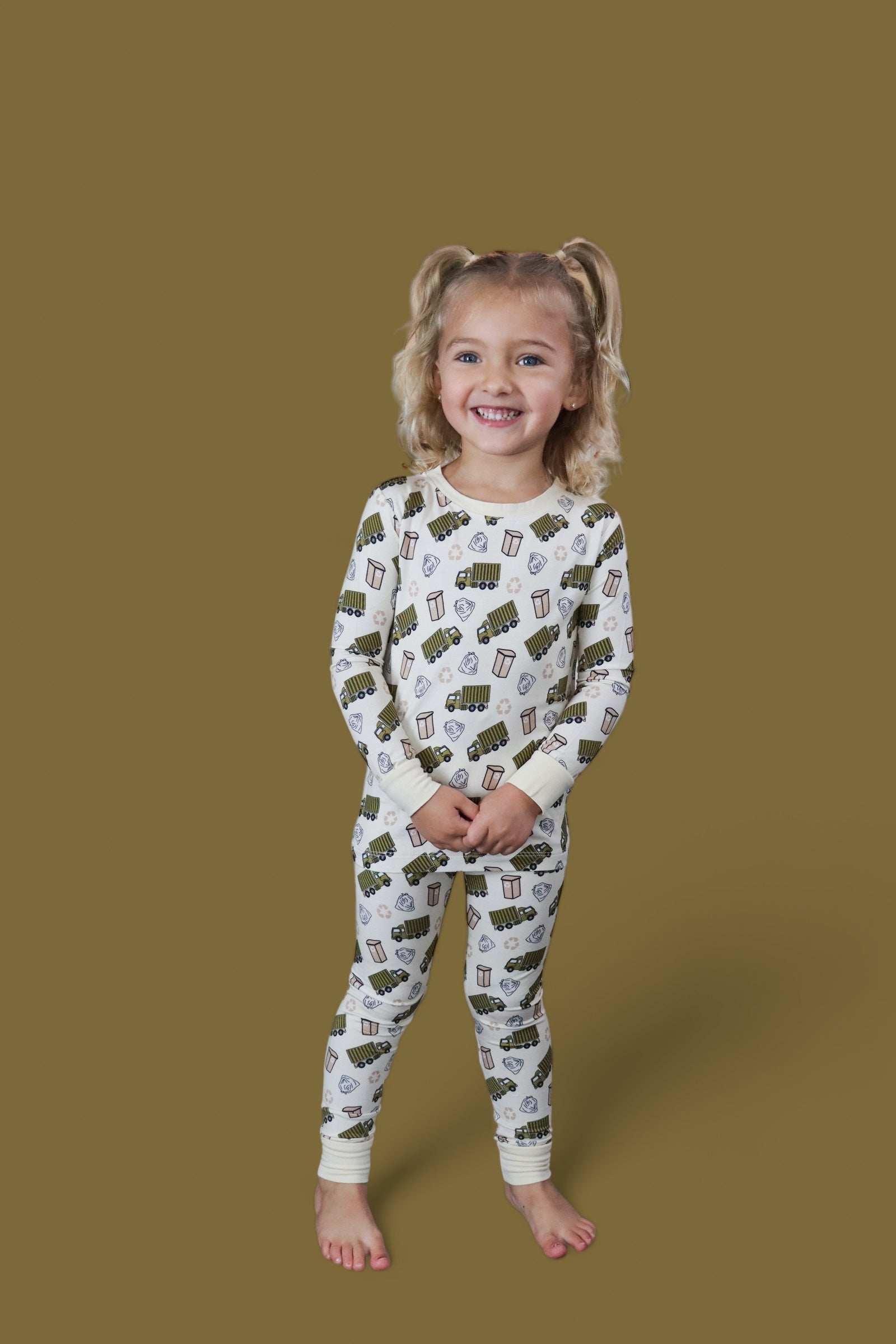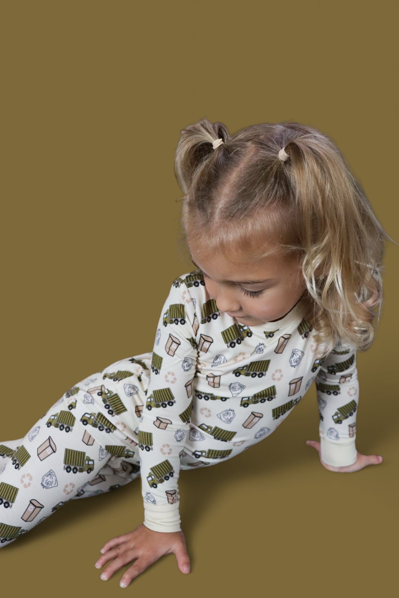 The Good Ol' Garbage Dream Set is perfect for little ones who can’t wait for the garbage truck to make its rounds! This playful pajama set pays homage to the unsung heroes of our environment—the garbage collectors—while encouraging kids to embrace recycling and caring for our planet.