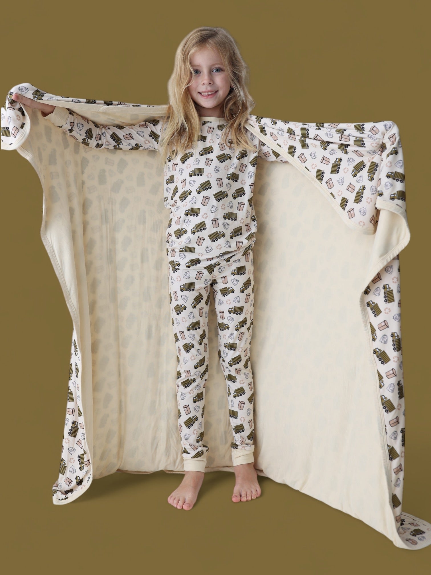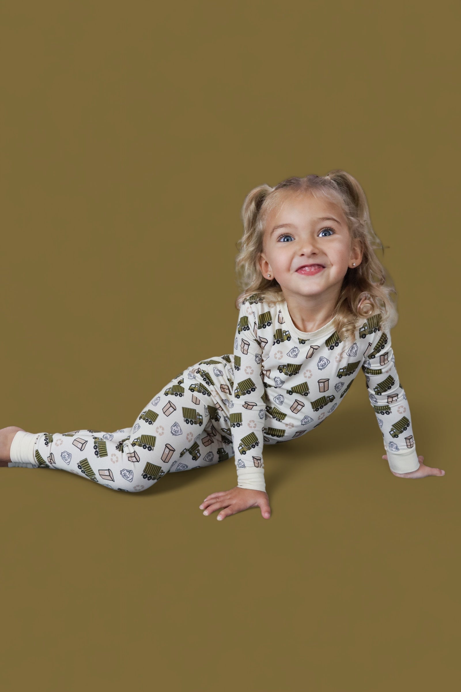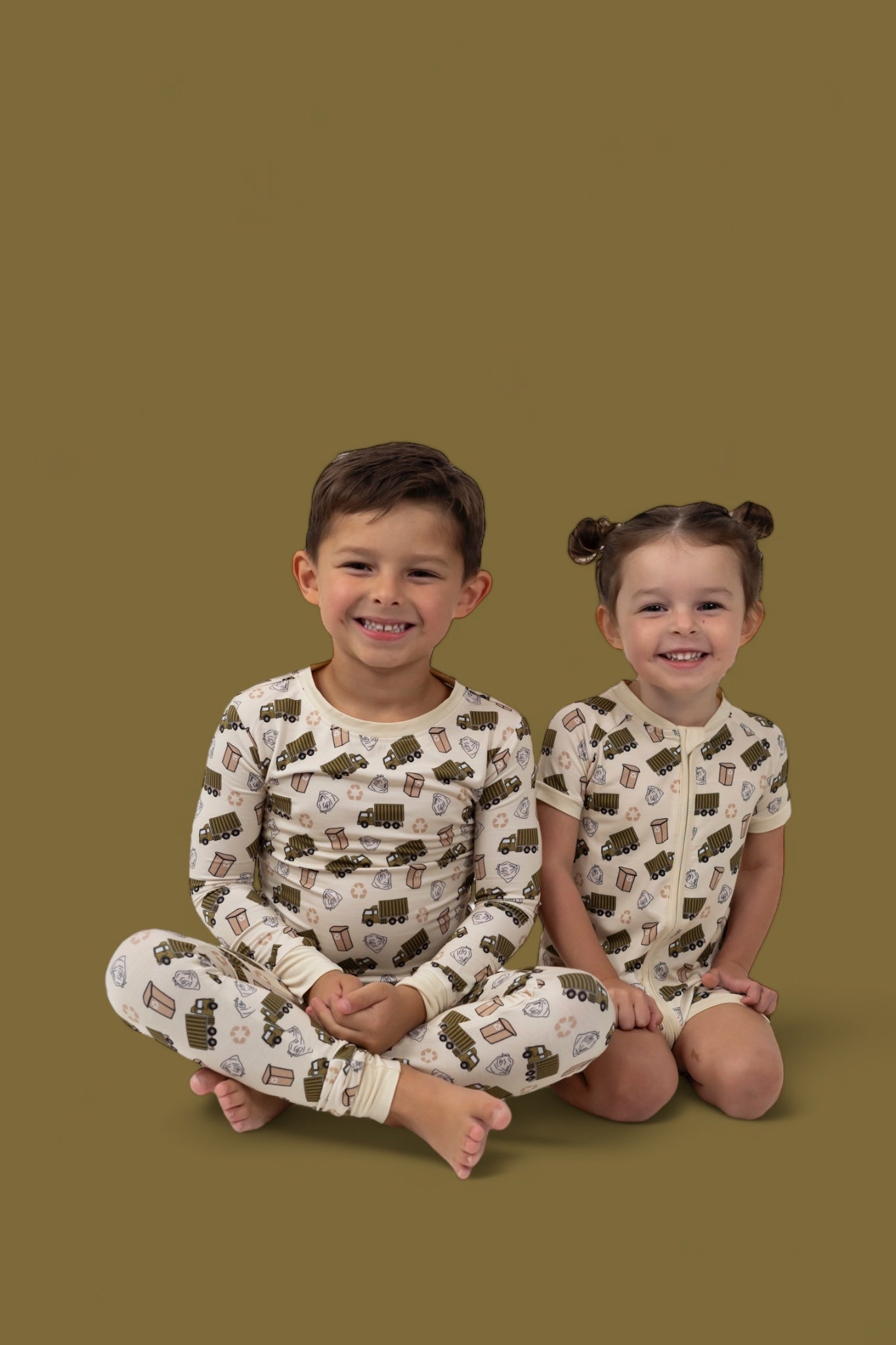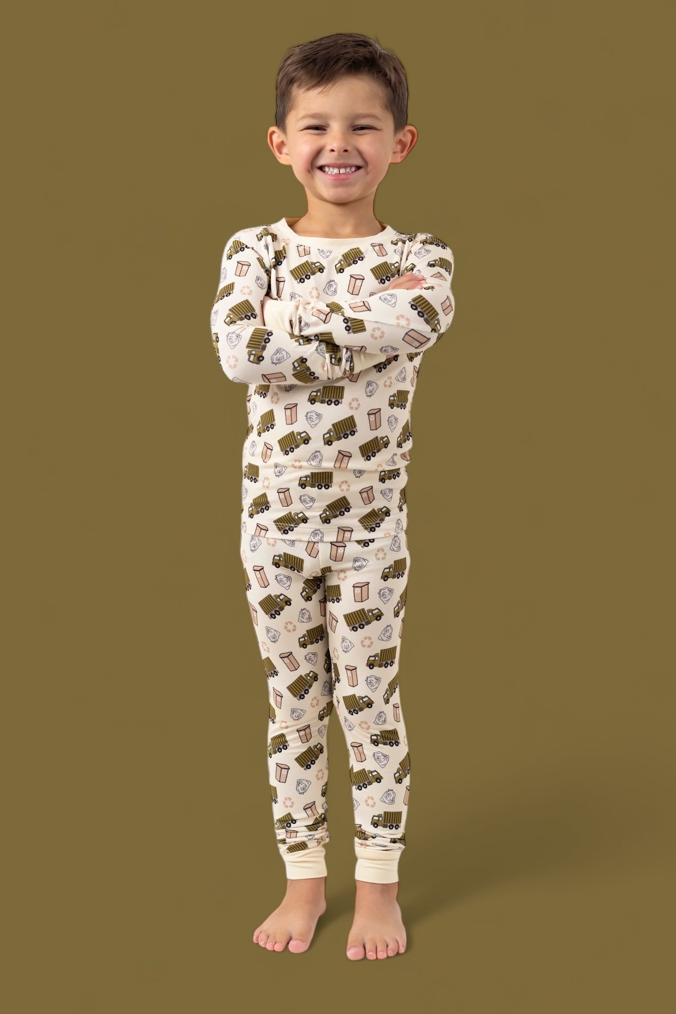 The Good Ol' Garbage Dream Set is perfect for little ones who can’t wait for the garbage truck to make its rounds! This playful pajama set pays homage to the unsung heroes of our environment—the garbage collectors—while encouraging kids to embrace recycling and caring for our planet.