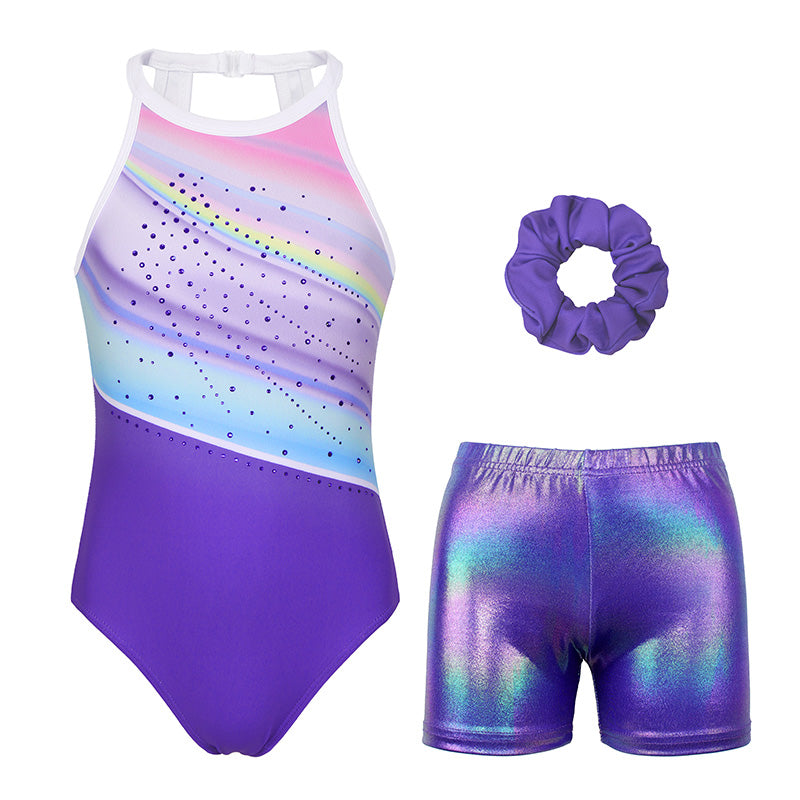 Gorgeous Purple Diamond Clasp Back Gymnastics Leotard Set