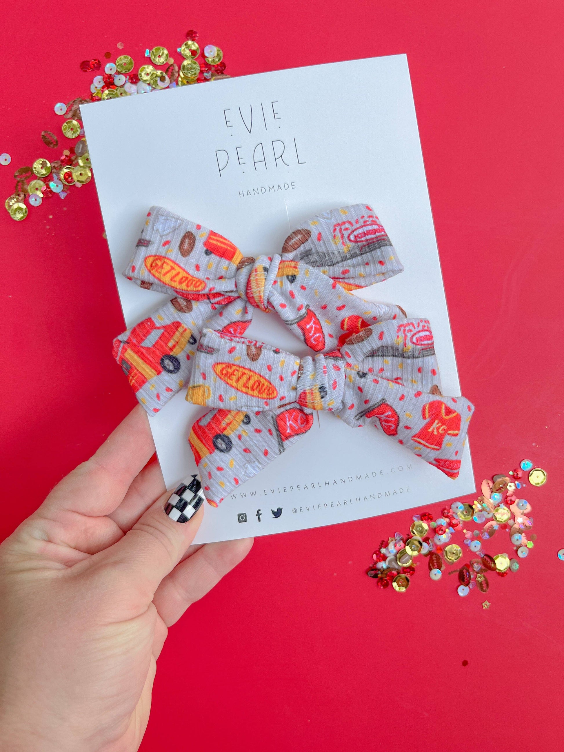 Cheer on the Kansas City Chiefs in style with this gold and yellow game day bow! Handmade with high-quality fabric, this bow is the perfect accessory for little girls, toddlers, or teens to wear on game days, tailgates, or school spirit events. Designed on a sturdy alligator clip, it grips hair securely without slipping—great for ponytails, pigtails, or half-up styles. Whether you’re headed to Arrowhead Stadium or cheering from home, this Chiefs-inspired bow adds the perfect touch of team spirit for your mini fan.