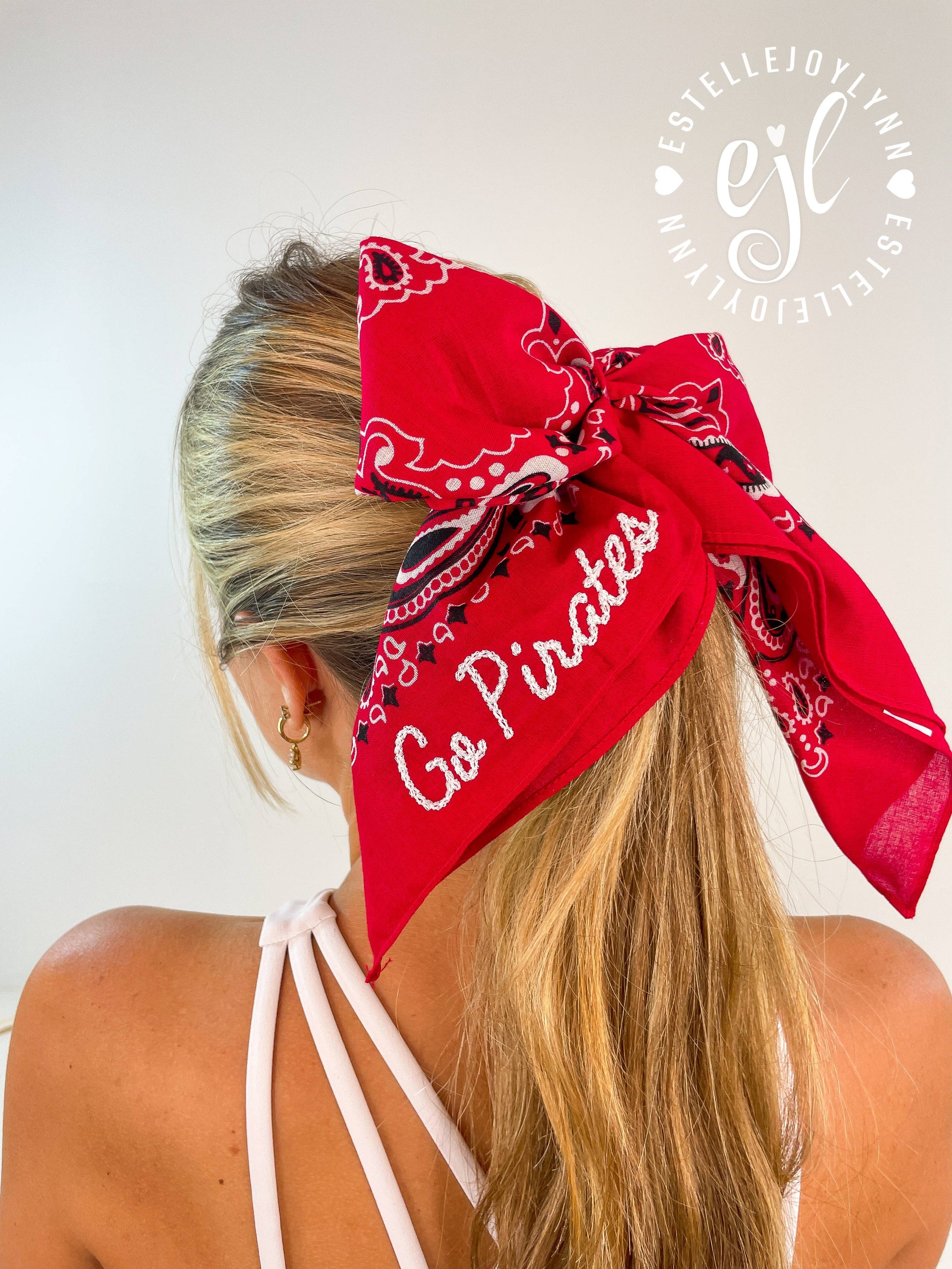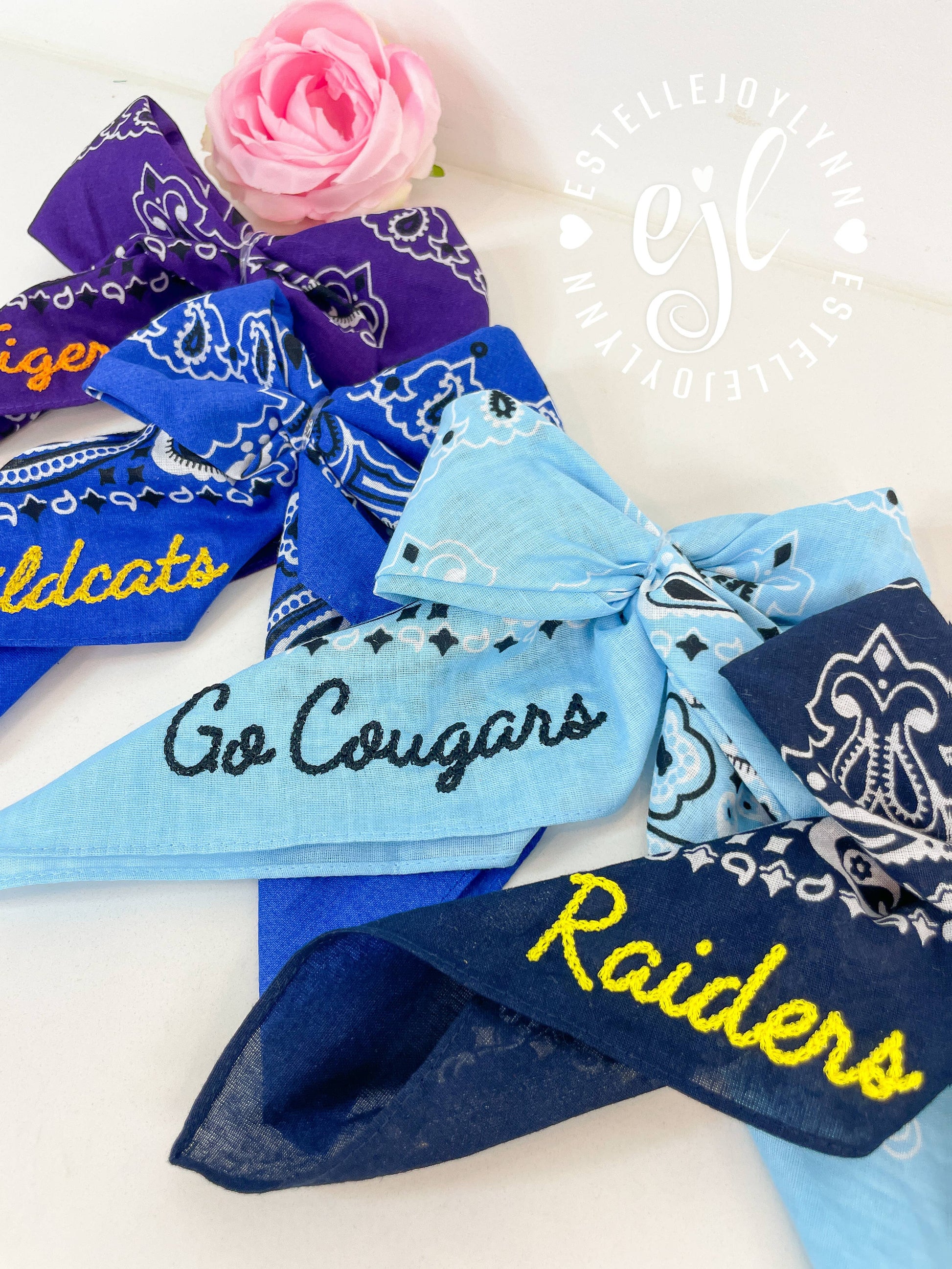 Hair Bandana Bows CUSTOM School Spirit Embroidered