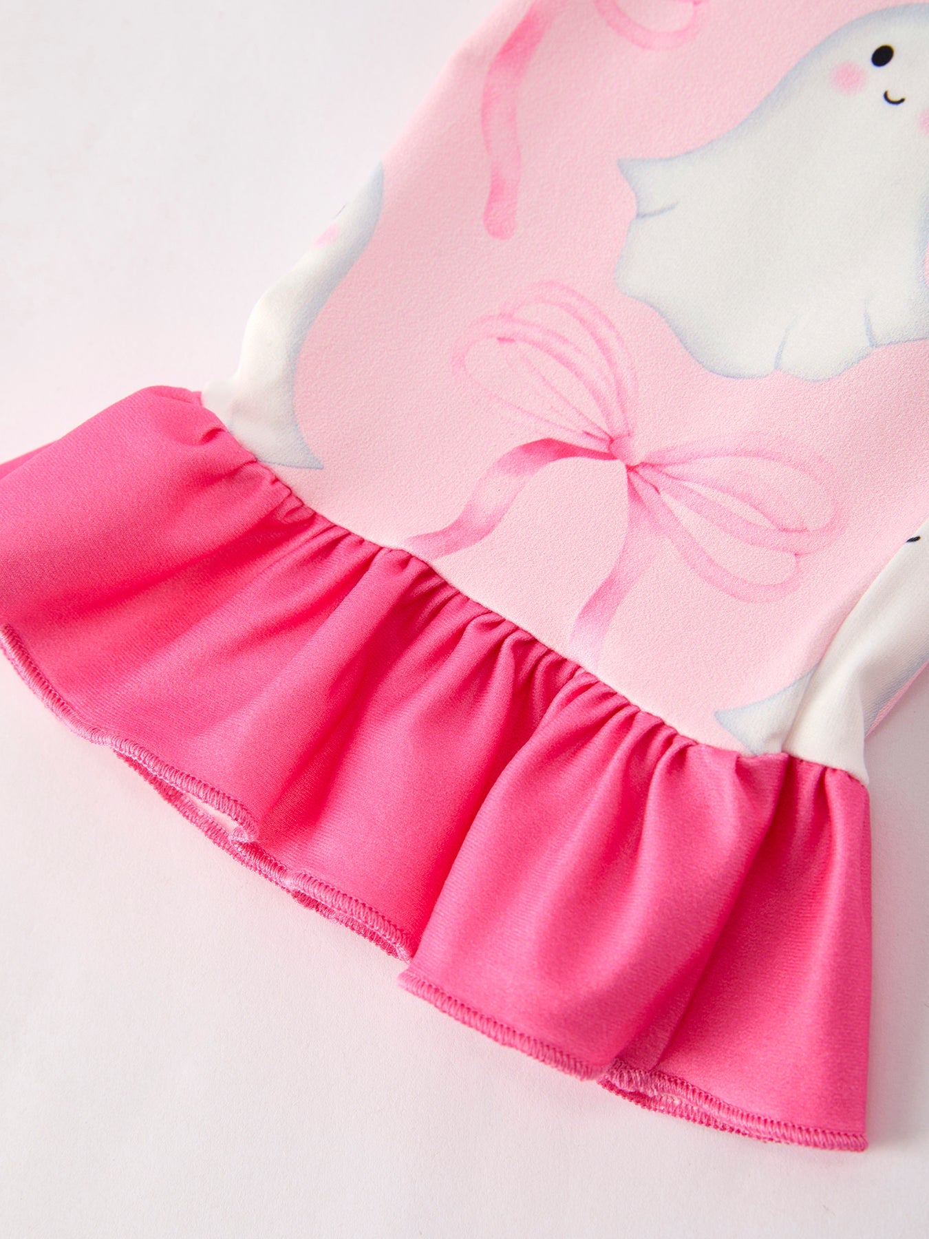 Halloween Ghost Short Sleeve Ruffled Girls Pajamas