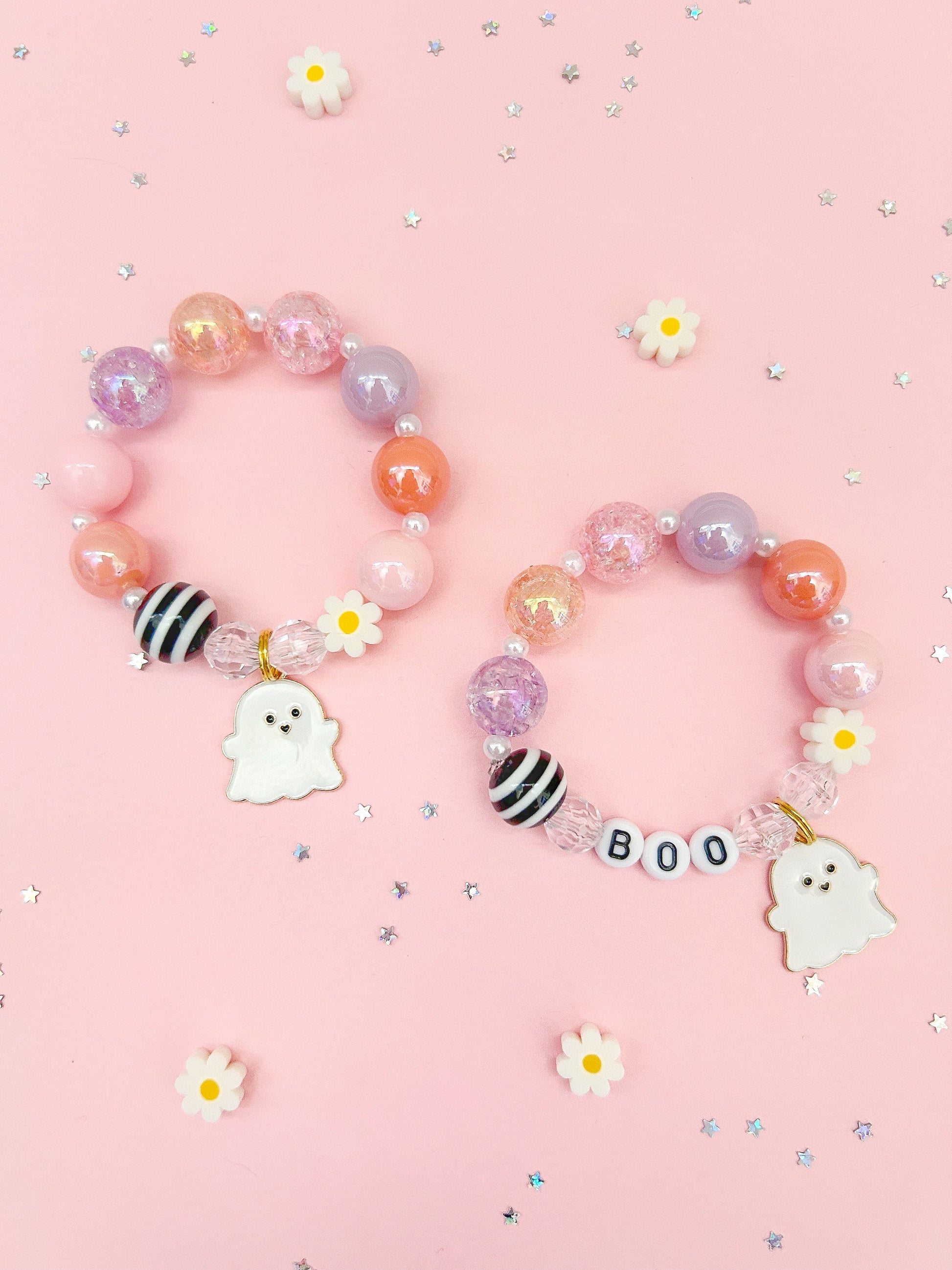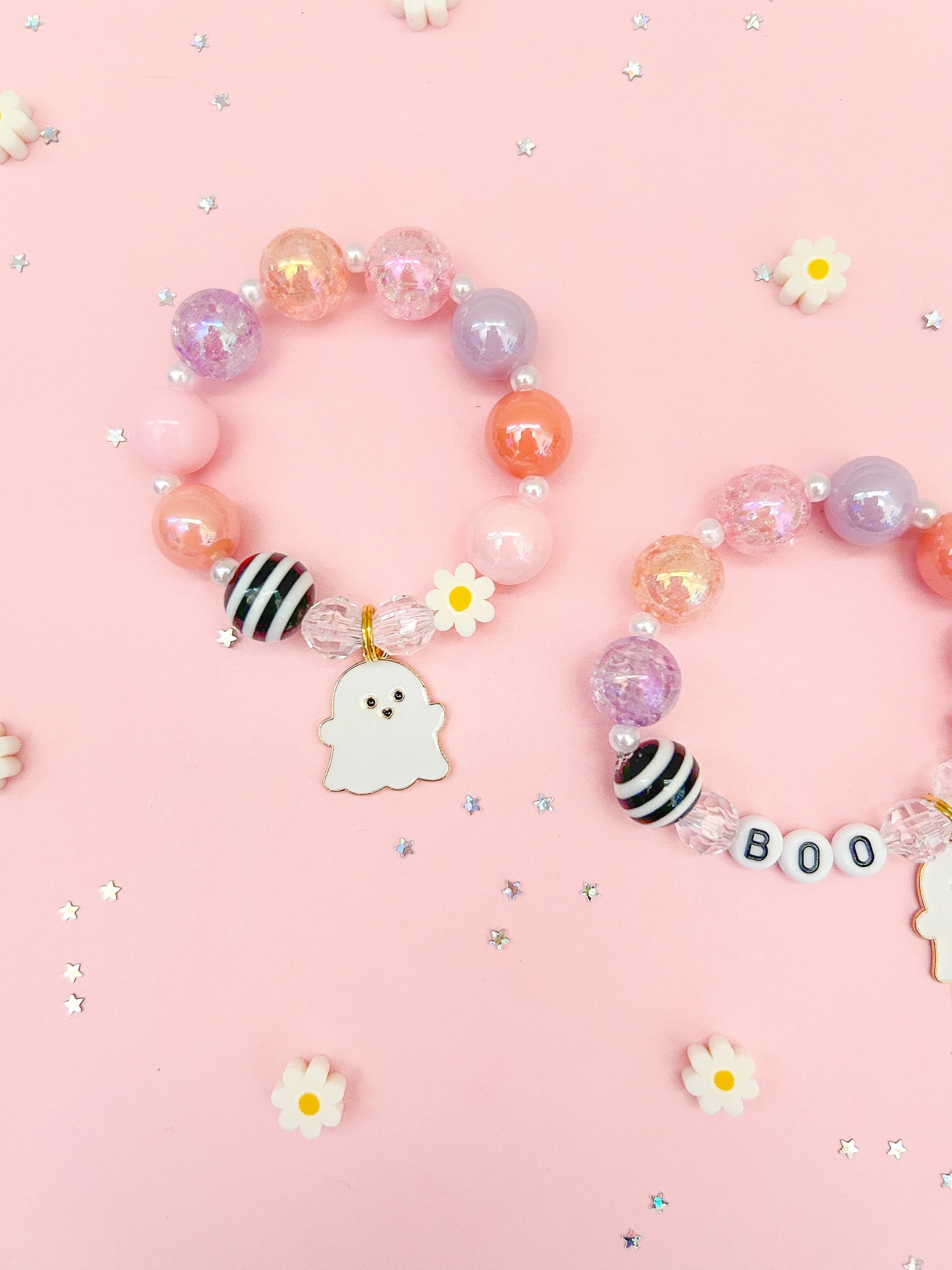 Halloween Ghost with Daisy and faux Pearls Kids Charm Bracelet, Personalized, Custom Name