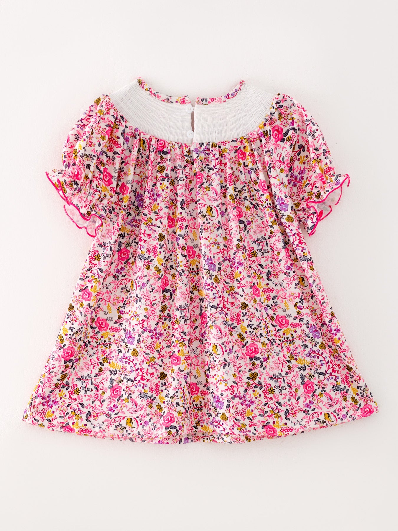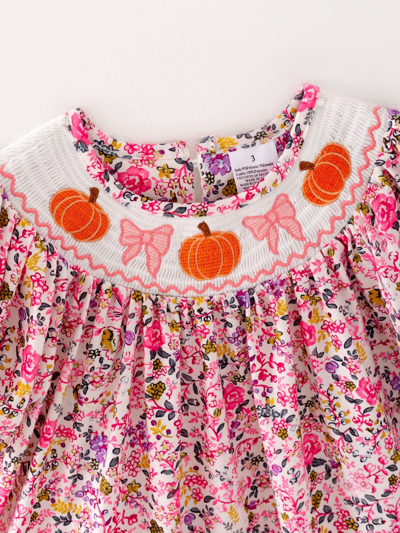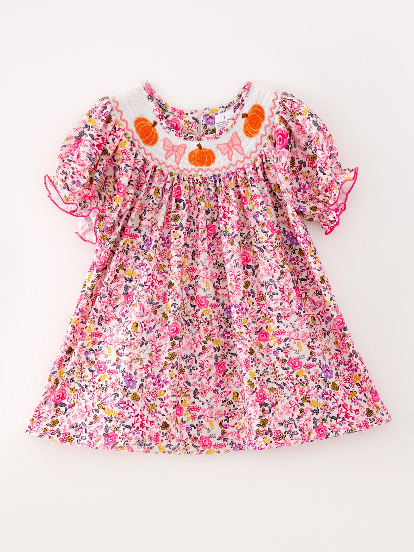 Get your little one ready for Halloween with this adorable smocking pumpkin dress! The short sleeve design is perfect for keeping cool while trick-or-treating. The intricate pumpkin embroidery and bow detail add a touch of sweetness to this festive dress. Perfect for creating lasting memories this Halloween!