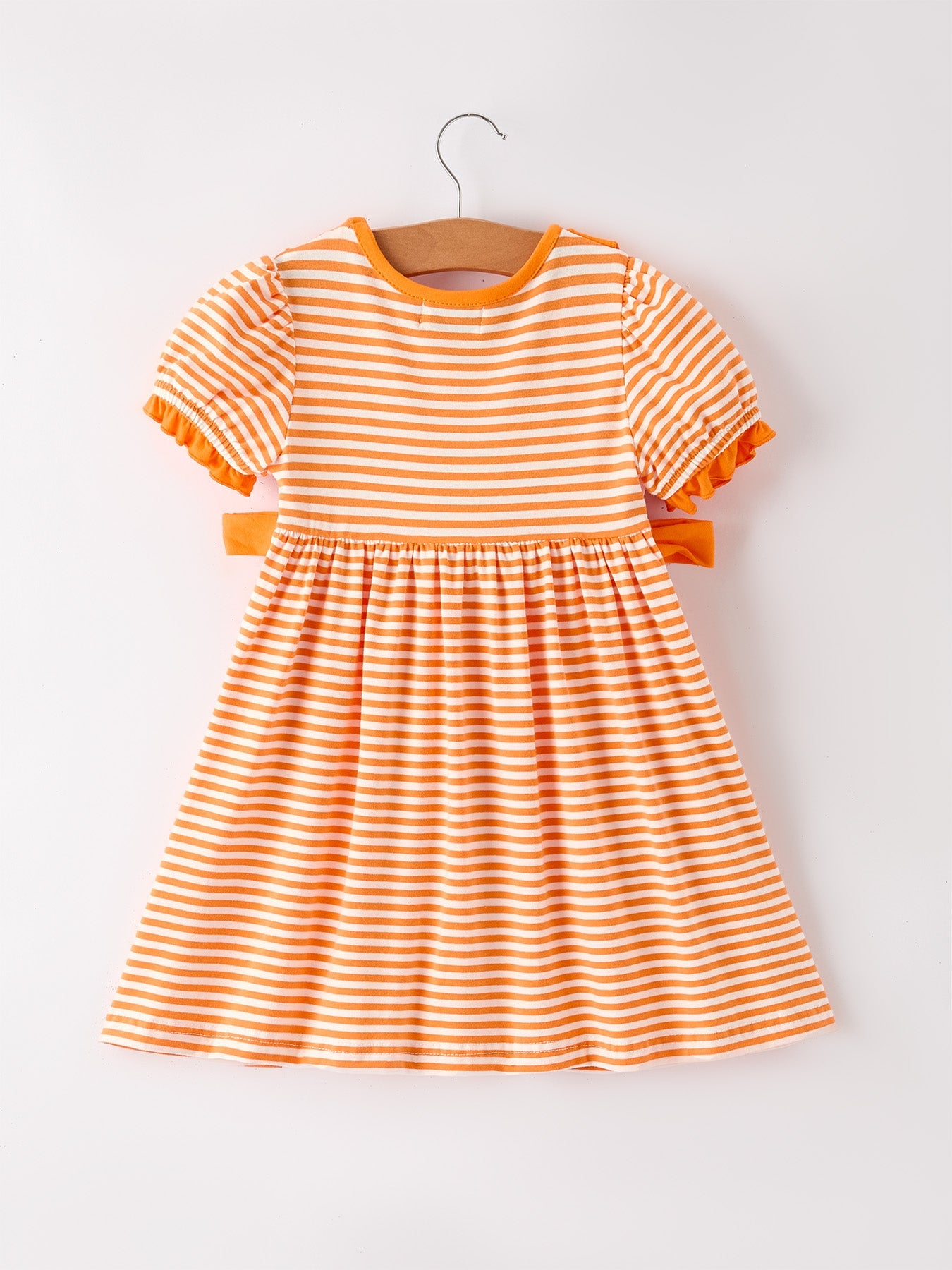 Halloween Striped Dress with Cat Smocking Embroidery – Perfect for Fall