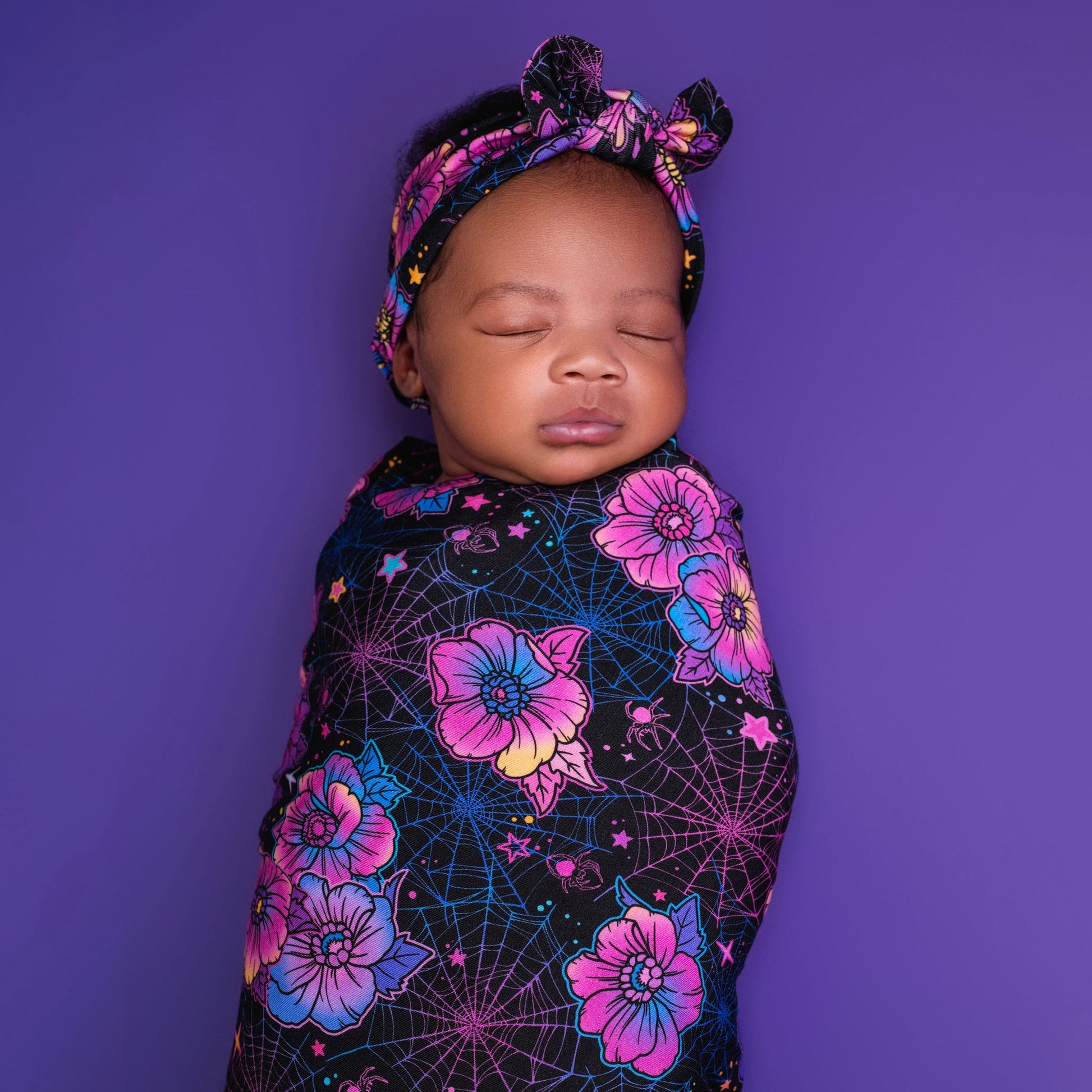Halloween | Violet Webs | Bamboo Swaddle Blanket