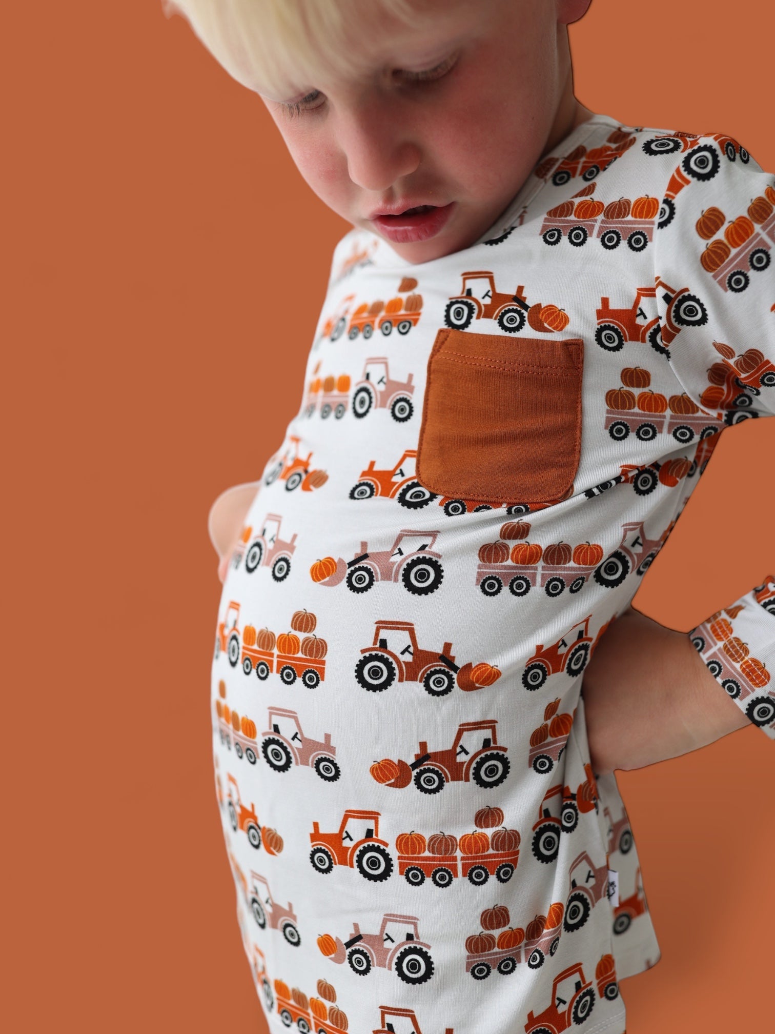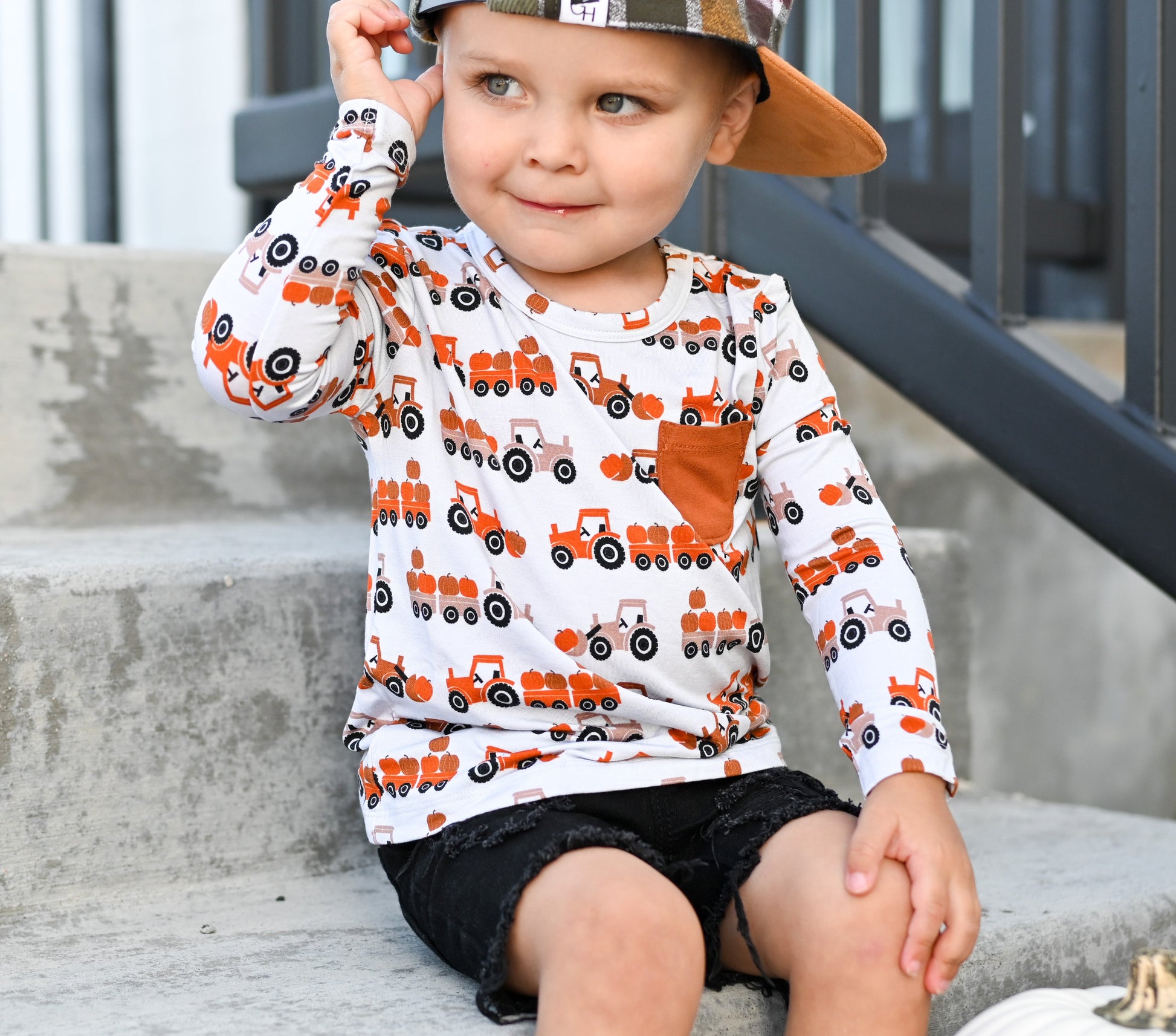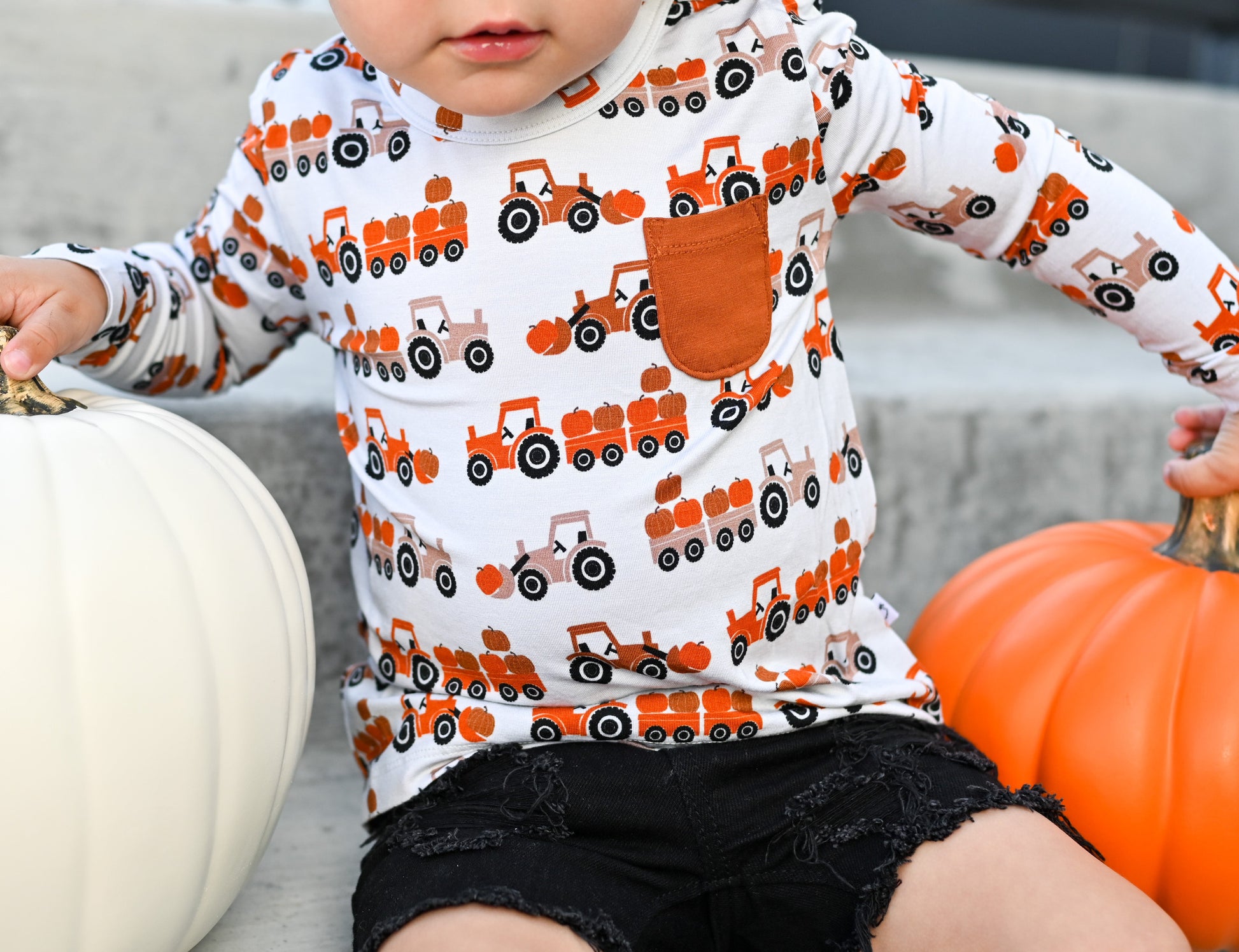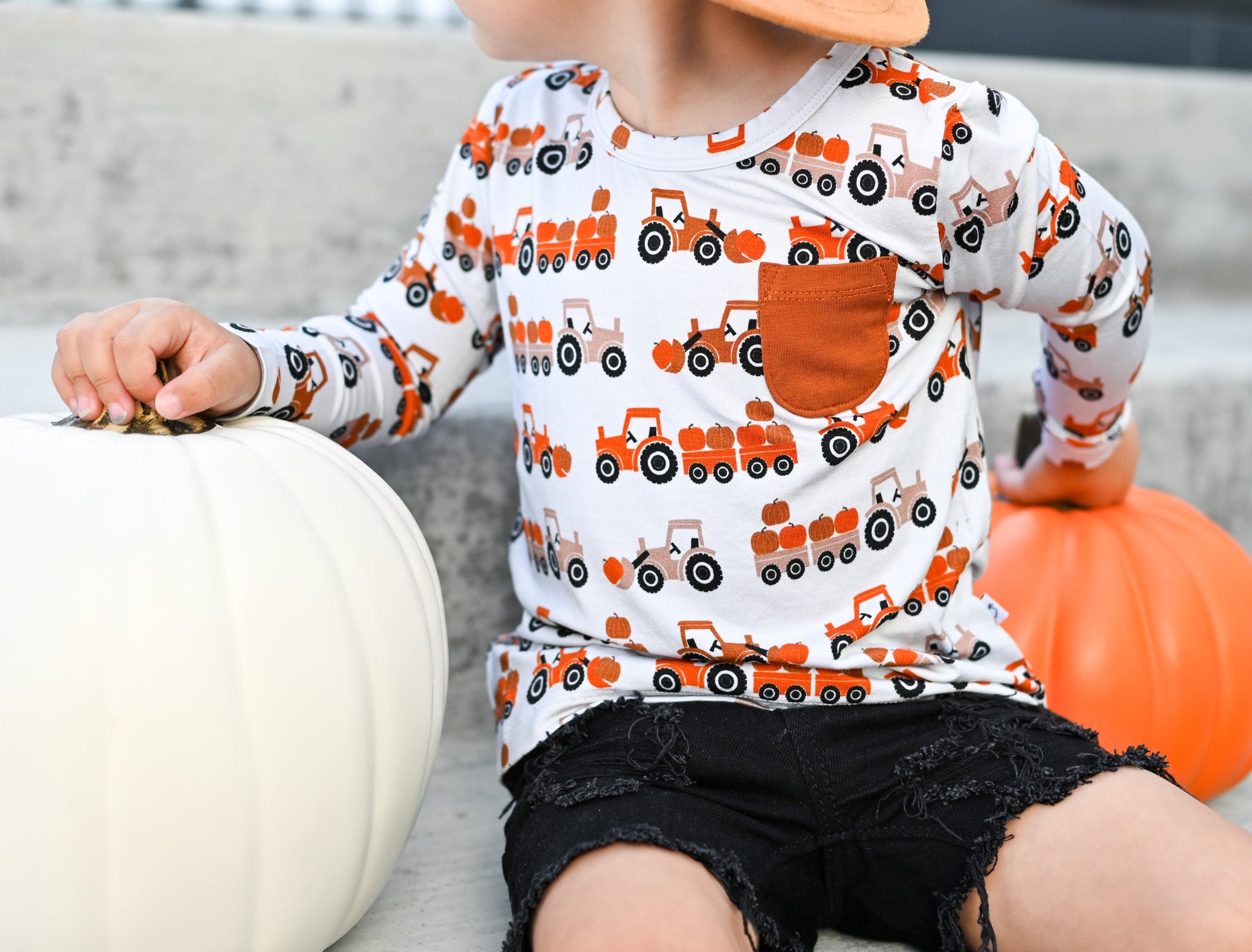 Stay cozy and stylish on your hayride with our Hay Pumpkin Dream Pocket Tee! Made of luxurious bamboo material, this tee brings comfort and style together. The pocket detail with its hayride theme adds an extra fun to the mix! Enjoy your hayride in coziness and style with this pocket tee!