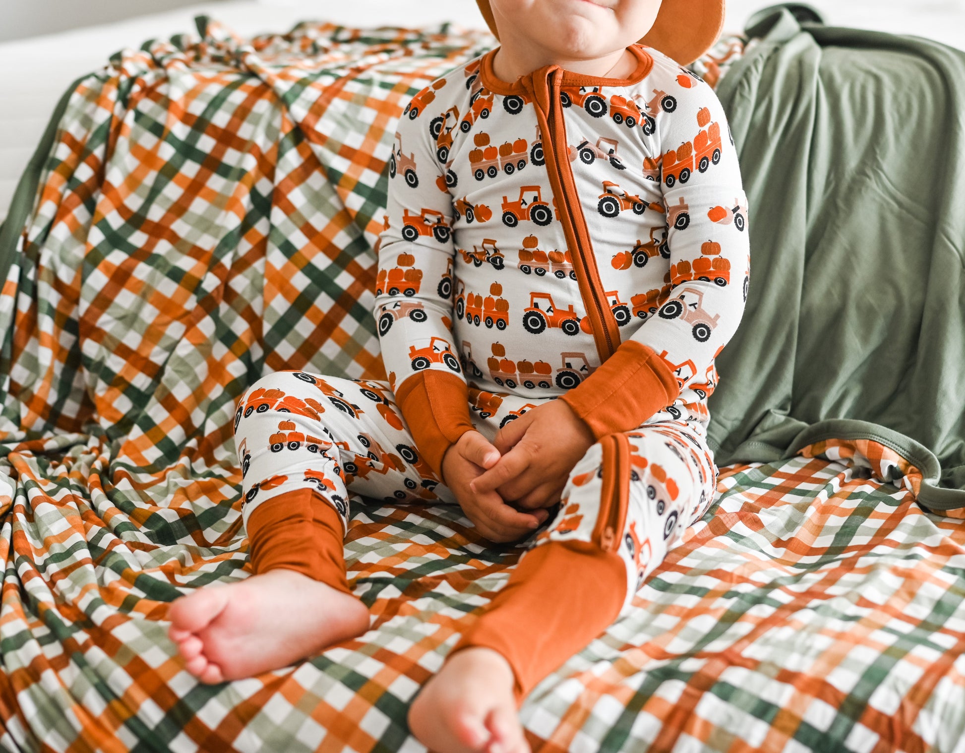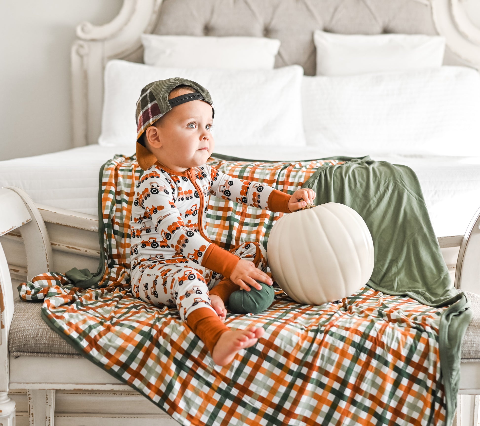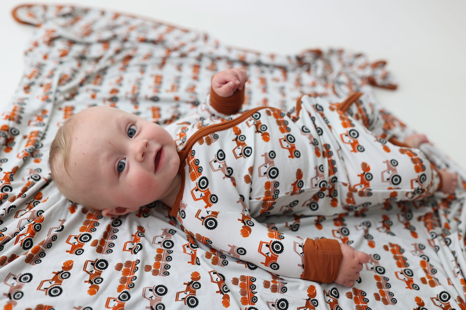 Dress your little one in this oh-so-cute 'Hay Pumpkin Dream Romper'! Perfect for your little pumpkin's hayride adventure, complete with a fun printed pumpkin design, long sleeve romper, zipper feature, all in a cozy bamboo material. Get ready to be the envy of the playground!