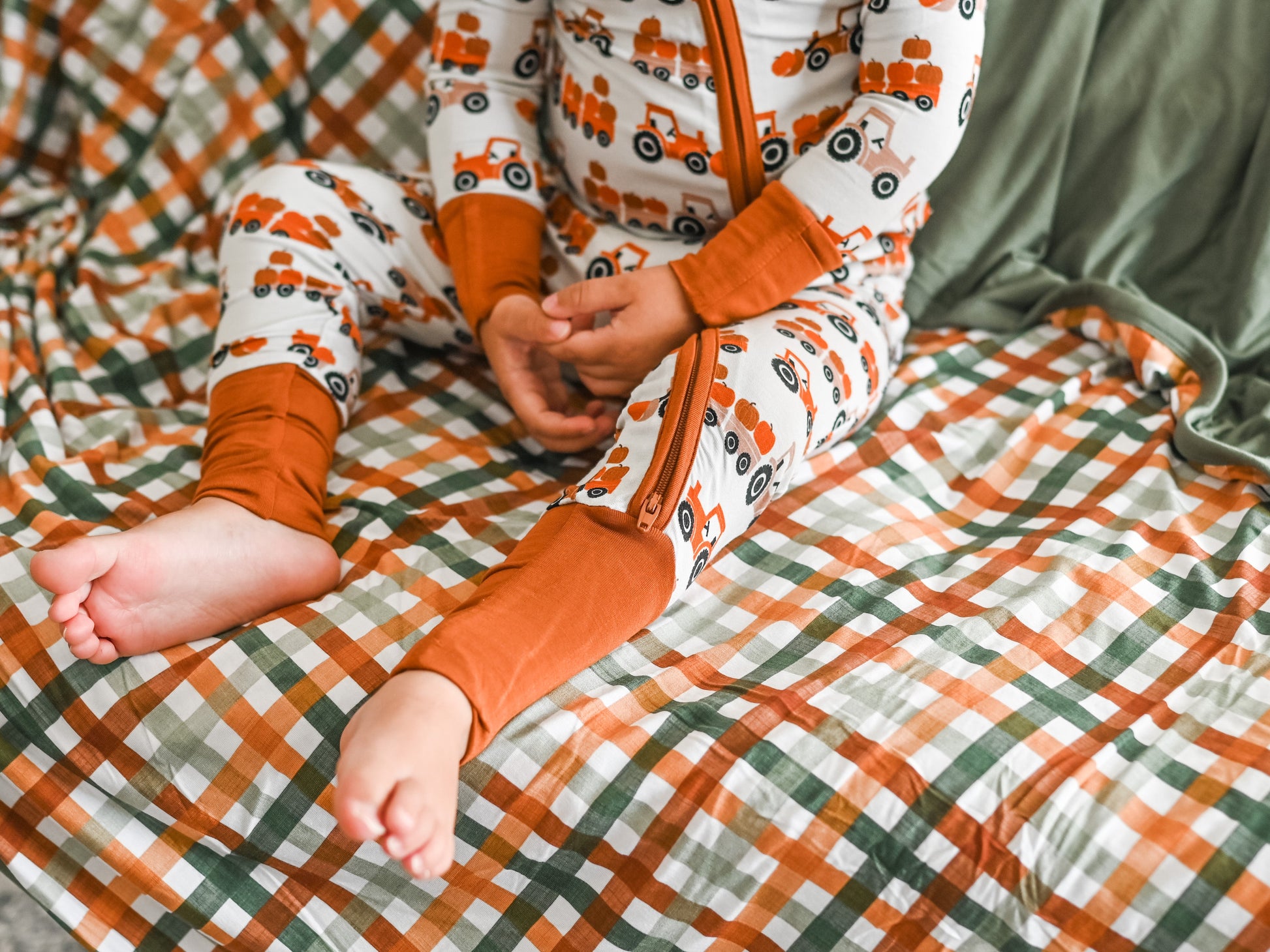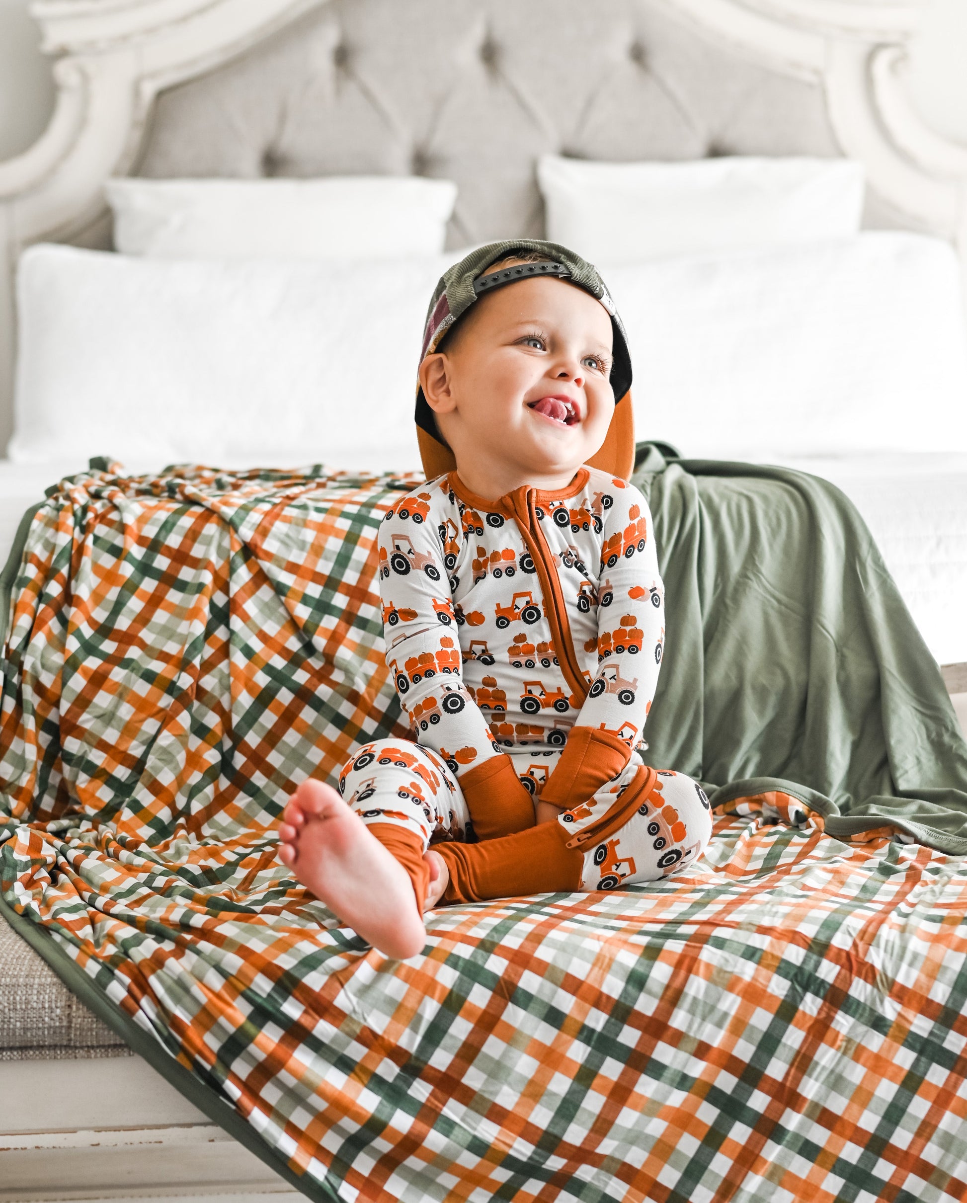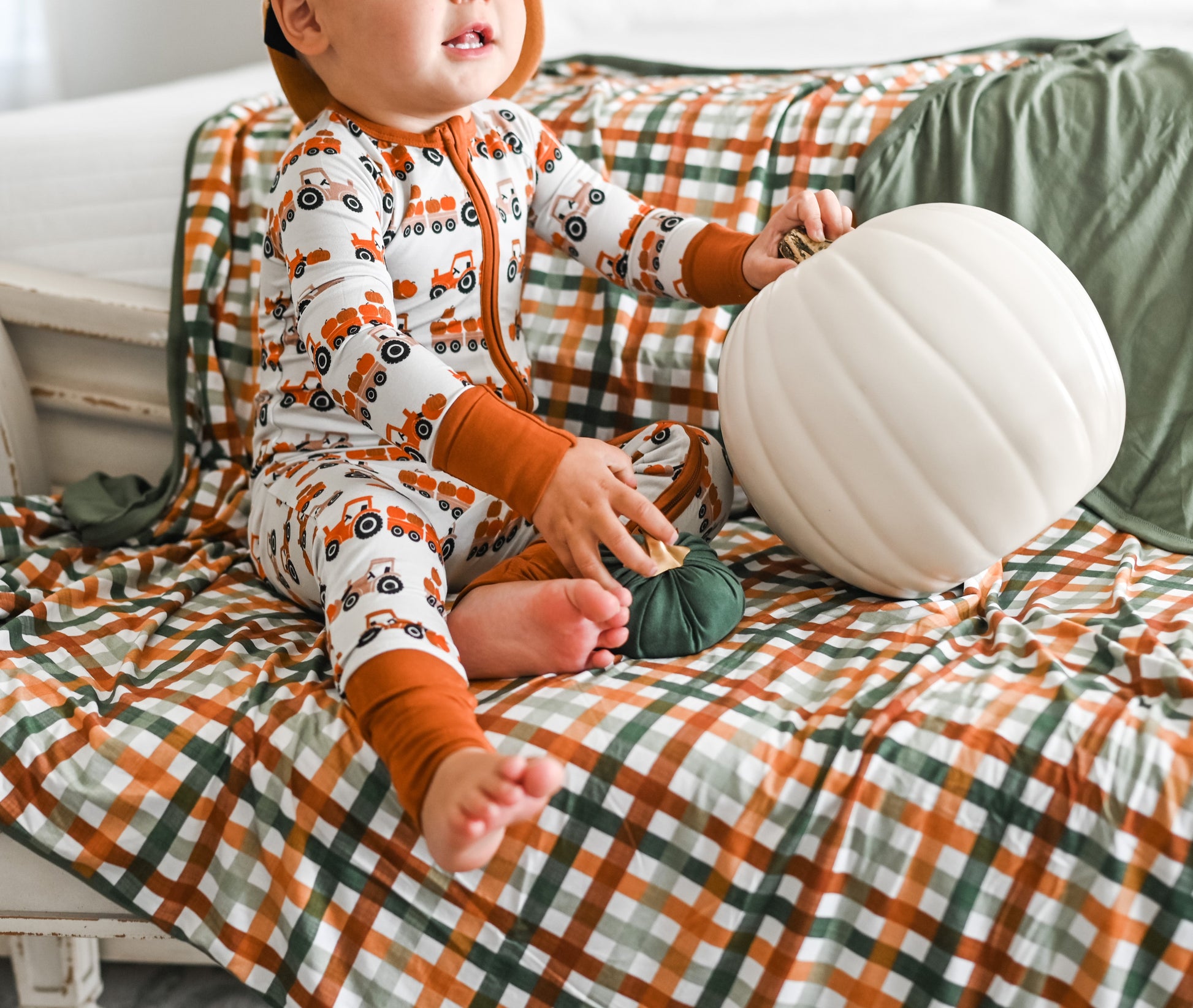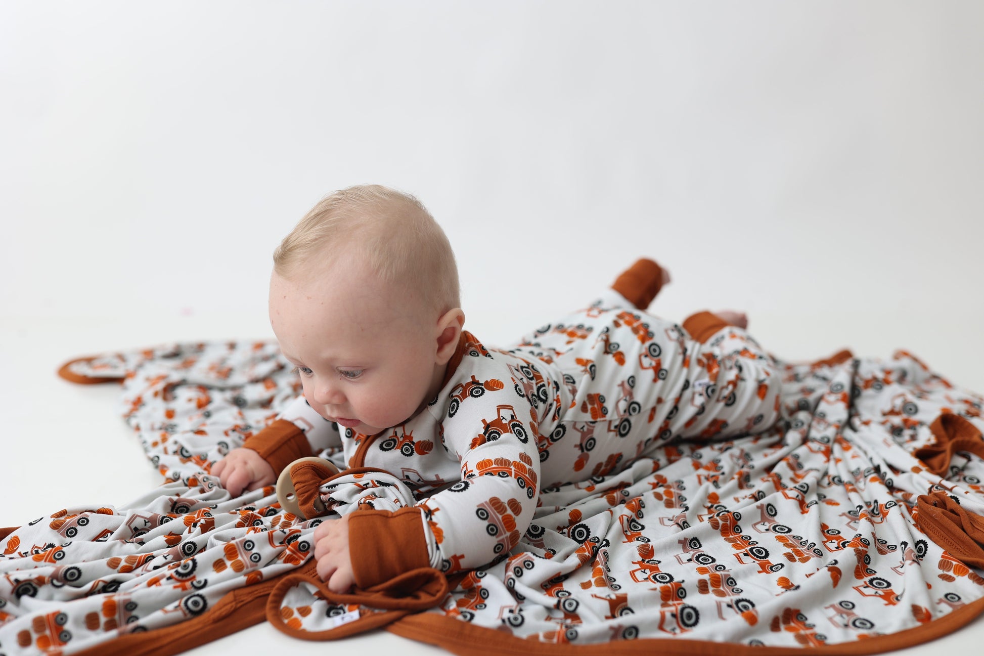 Dress your little one in this oh-so-cute 'Hay Pumpkin Dream Romper'! Perfect for your little pumpkin's hayride adventure, complete with a fun printed pumpkin design, long sleeve romper, zipper feature, all in a cozy bamboo material. Get ready to be the envy of the playground!