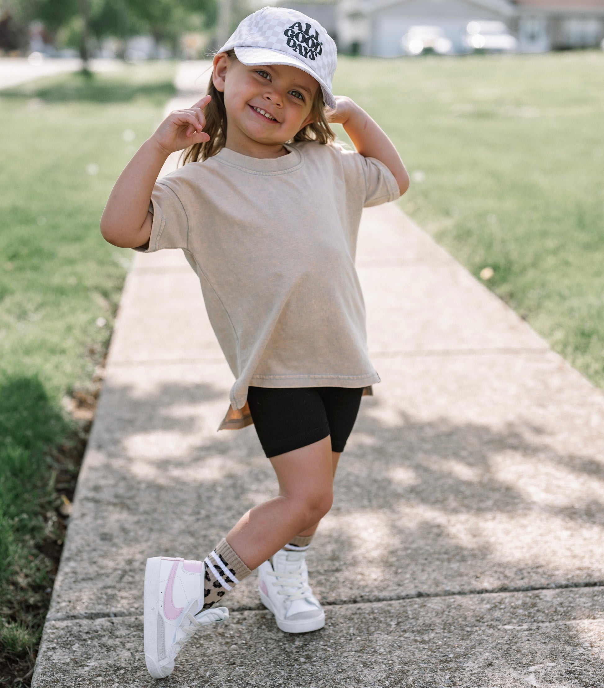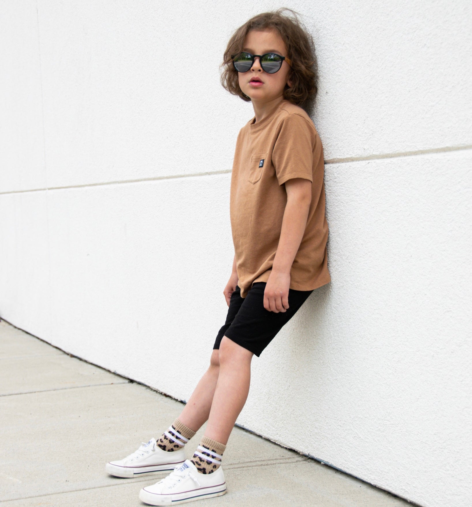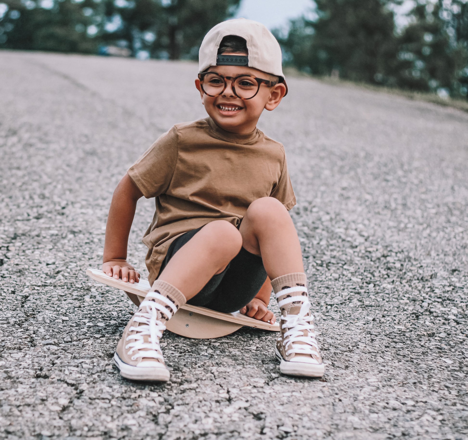 Sizes Infant/XXS, Extra Small, Small + Medium have "Wild Child" grips on the bottom of the feet and size large have a stitched "Wild Child" on the bottom of the feet.