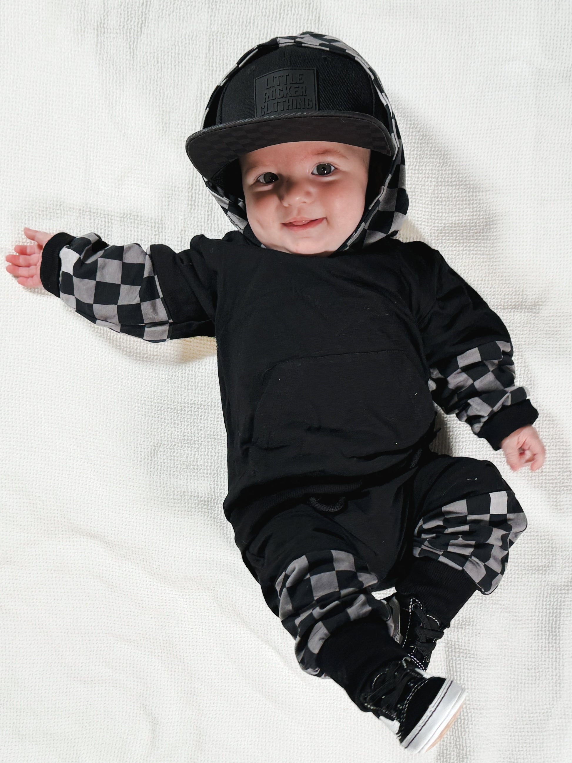 Stand out in the one-of-a-kind Hux Sweatset! Featuring bold checkered patterns on parts of the legs and sleeves, this design is paired with sleek black for the ultimate blend of edgy and classic. Crafted for year-round wear, it’s as versatile as it is stylish. Complete with front pockets and a cozy hood, this sweatset is perfect for lounging, layering, or making a statement wherever you go. Get yours now—because you won’t find this design anywhere else!