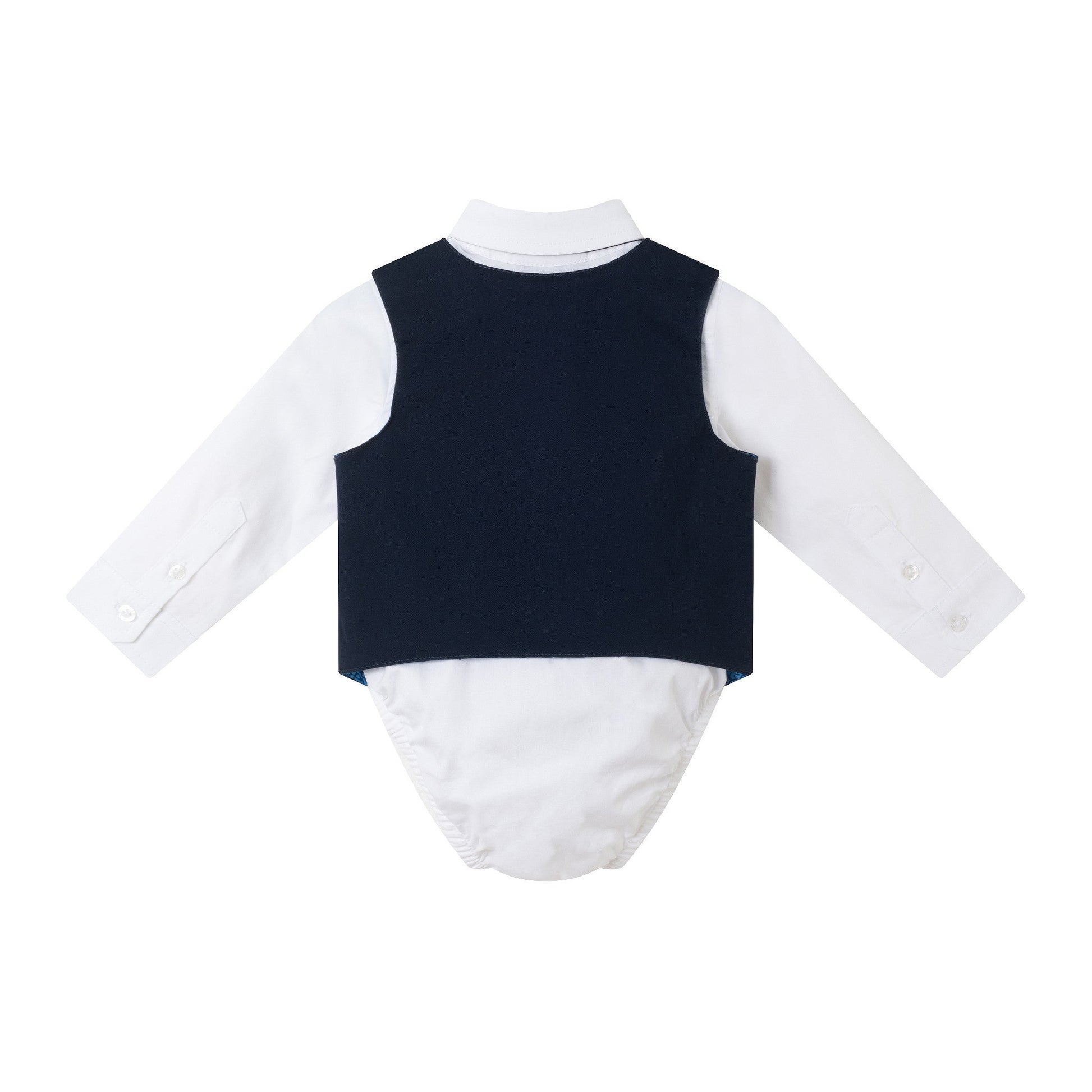 Dress your little man in timeless style with our Navy Vest and Pants Set. This classic combination includes a sharp navy vest, crisp white buttondown shirt, and coordinating navy trousers—each piece tailored to create a miniature gentleman's look for any special occasion.