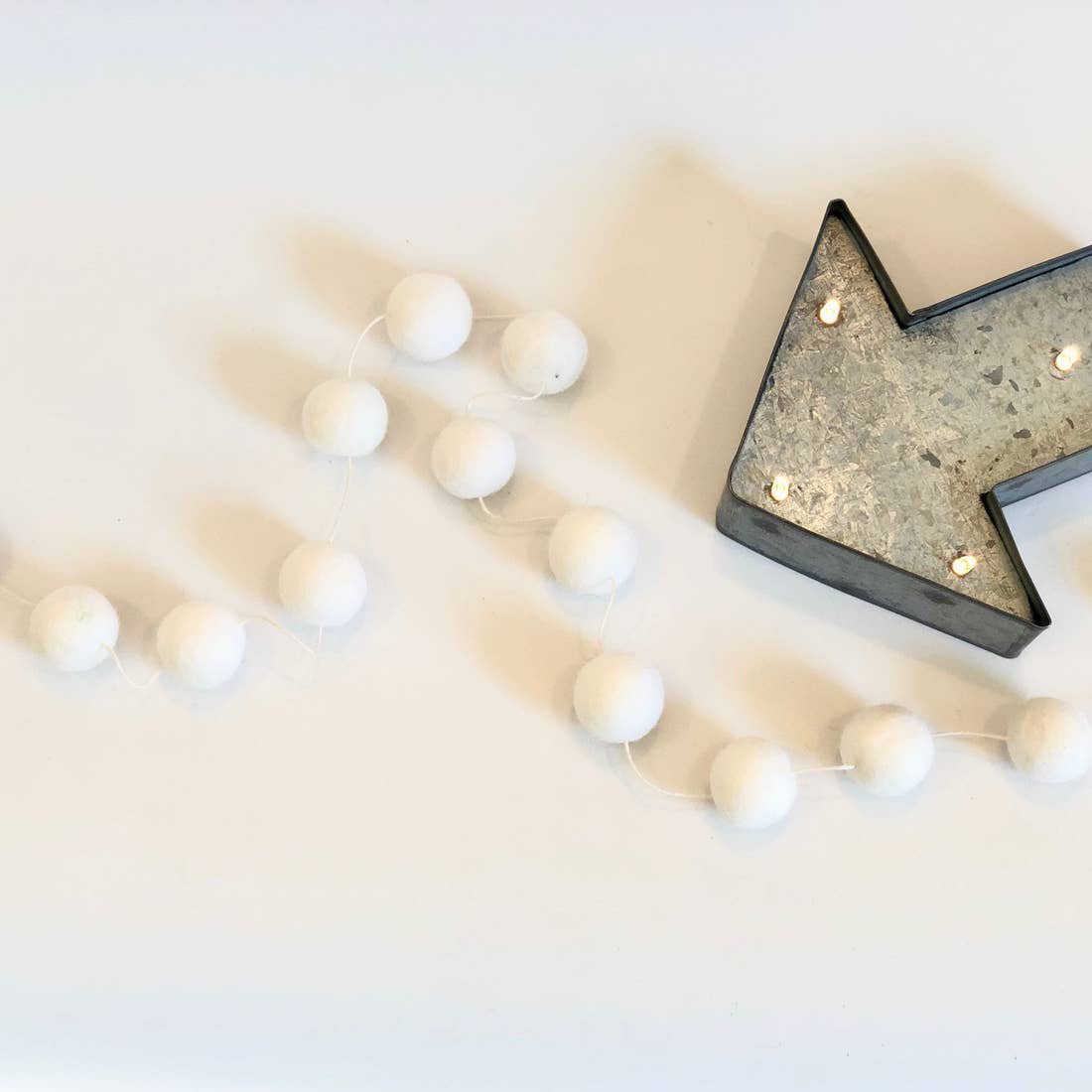 Our ivory snow white wool felt pom ball garland makes a clean and contemporary addition to your Christmas decorating! Imagine this garland strung across your mantel, around your Christmas tree, or incorporated into your holiday party design. This pom ball garland can be reused year after year, making a fabulous addition to your holiday decor collection. They can also be hung in a child's room or nursery for some fun year-round decor!
