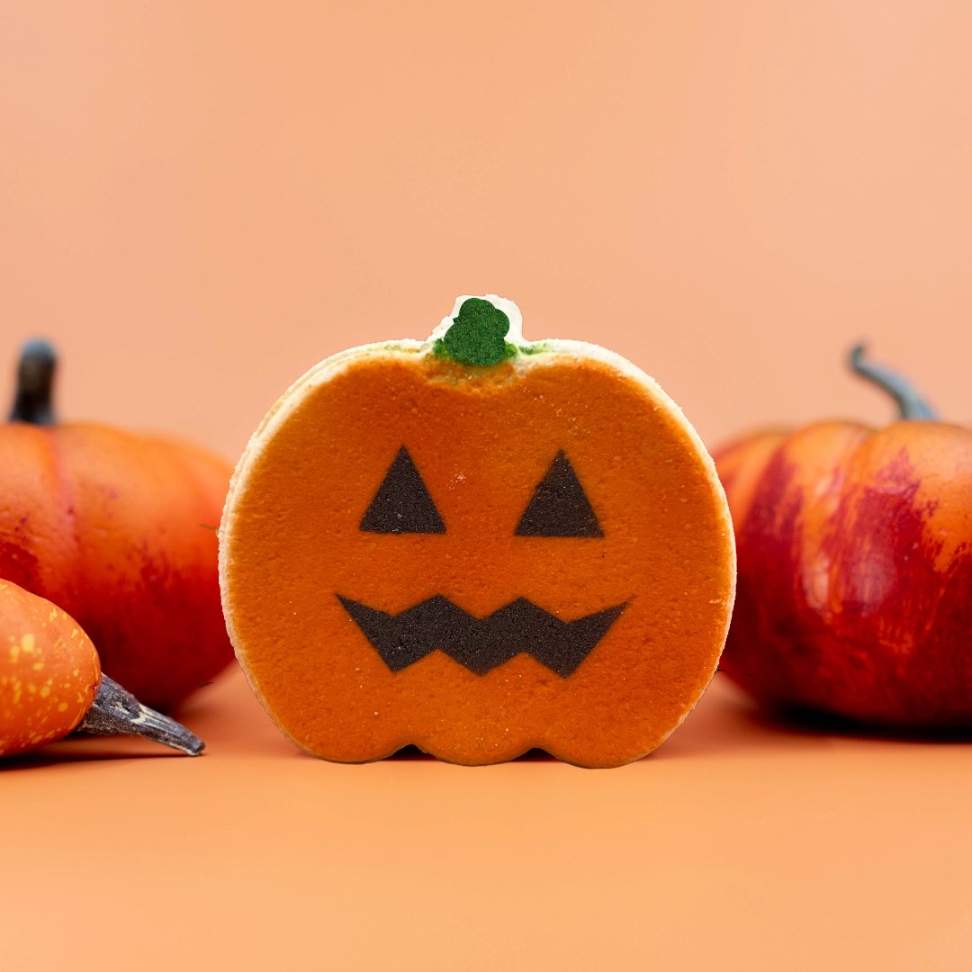 Make bath time spooky and fun with a Jack-o'-Lantern bath bomb!