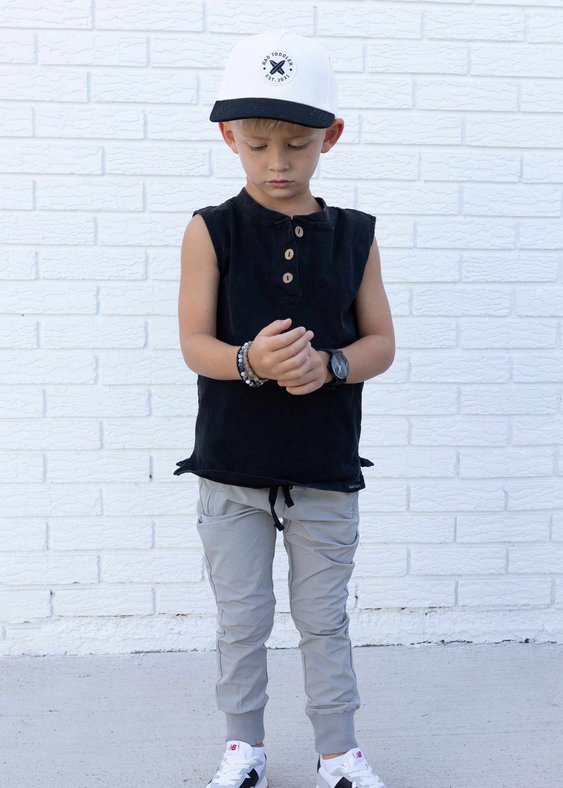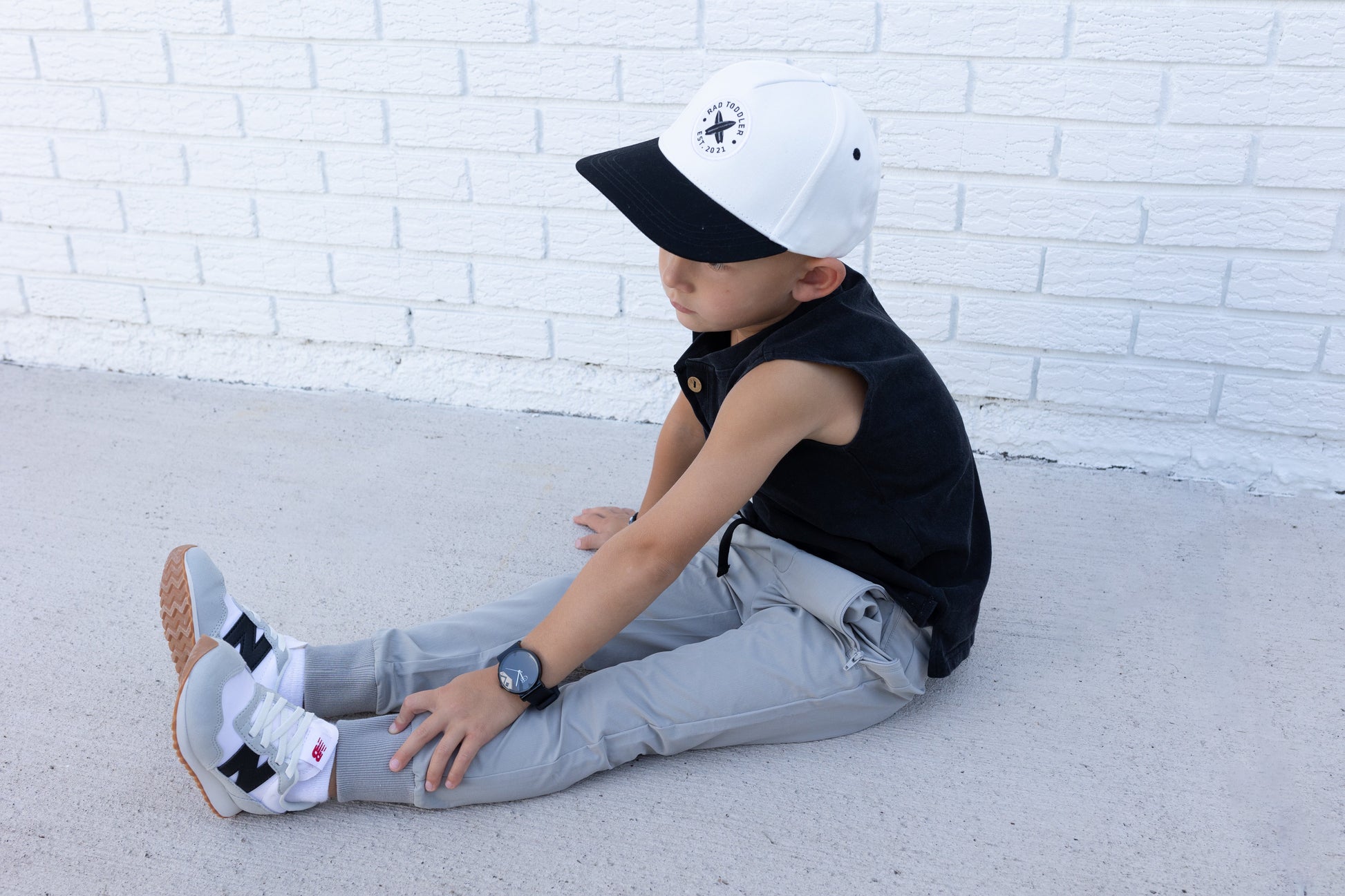 We designed these joggers to be comfortable for your little dude (while playing, jumping, and running around which we know they do a lot of) BUT kept in mind the fit and look we know you're looking for! Perfectly skinny, stretchy, pockets + an adjustable waistband! You've found your perfect year round joggers!