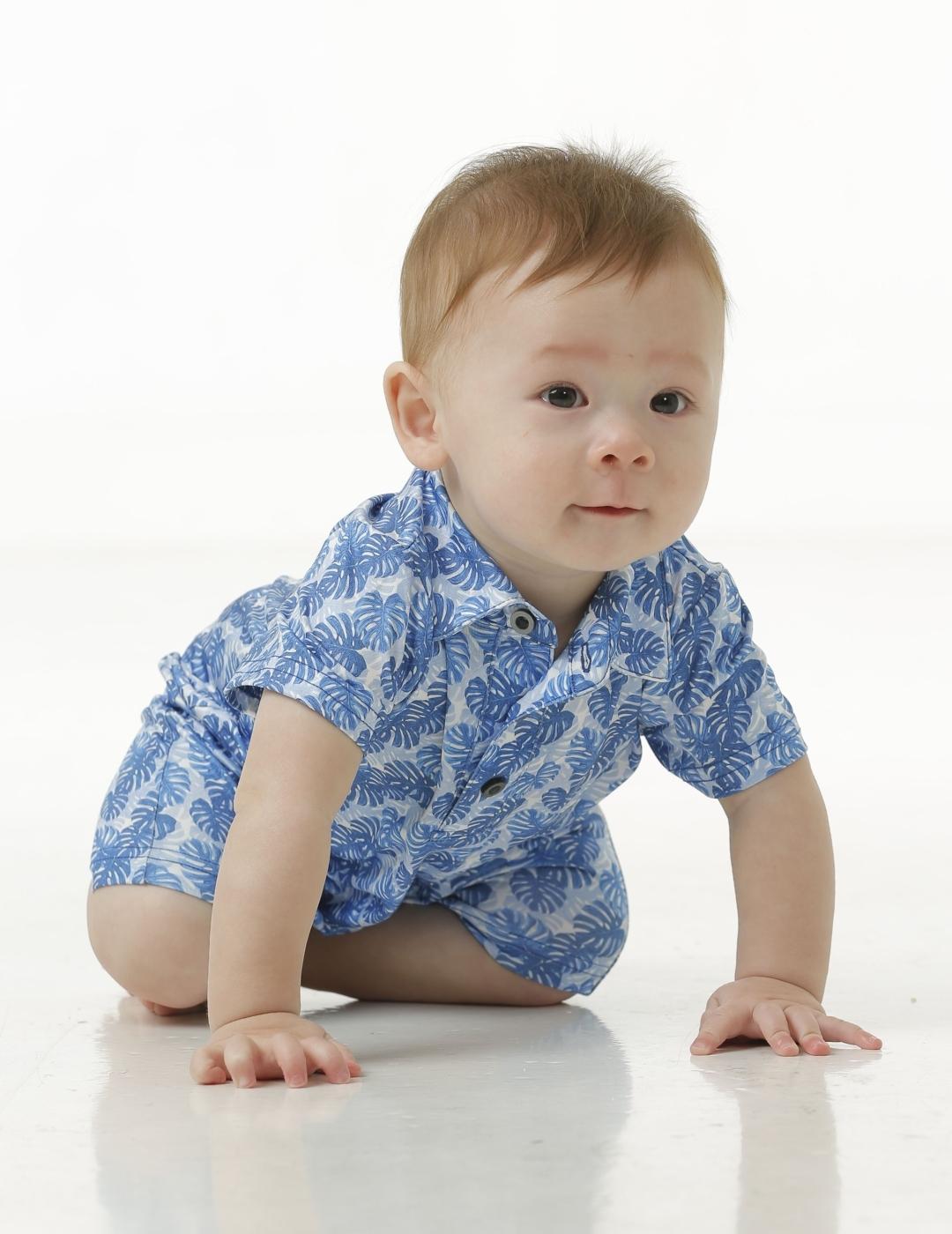 Get your little man a baby boy onesie that he'll stand out in. He'll look and feel cool in this lightweight, palm-printed romper onesie. Designed with breathable, 4-way stretch fabric, he will stay comfortable all day long. Plus, moisture-wicking and UPF 50+ sun protection make this baby boy onesie a great option for warmer days.
