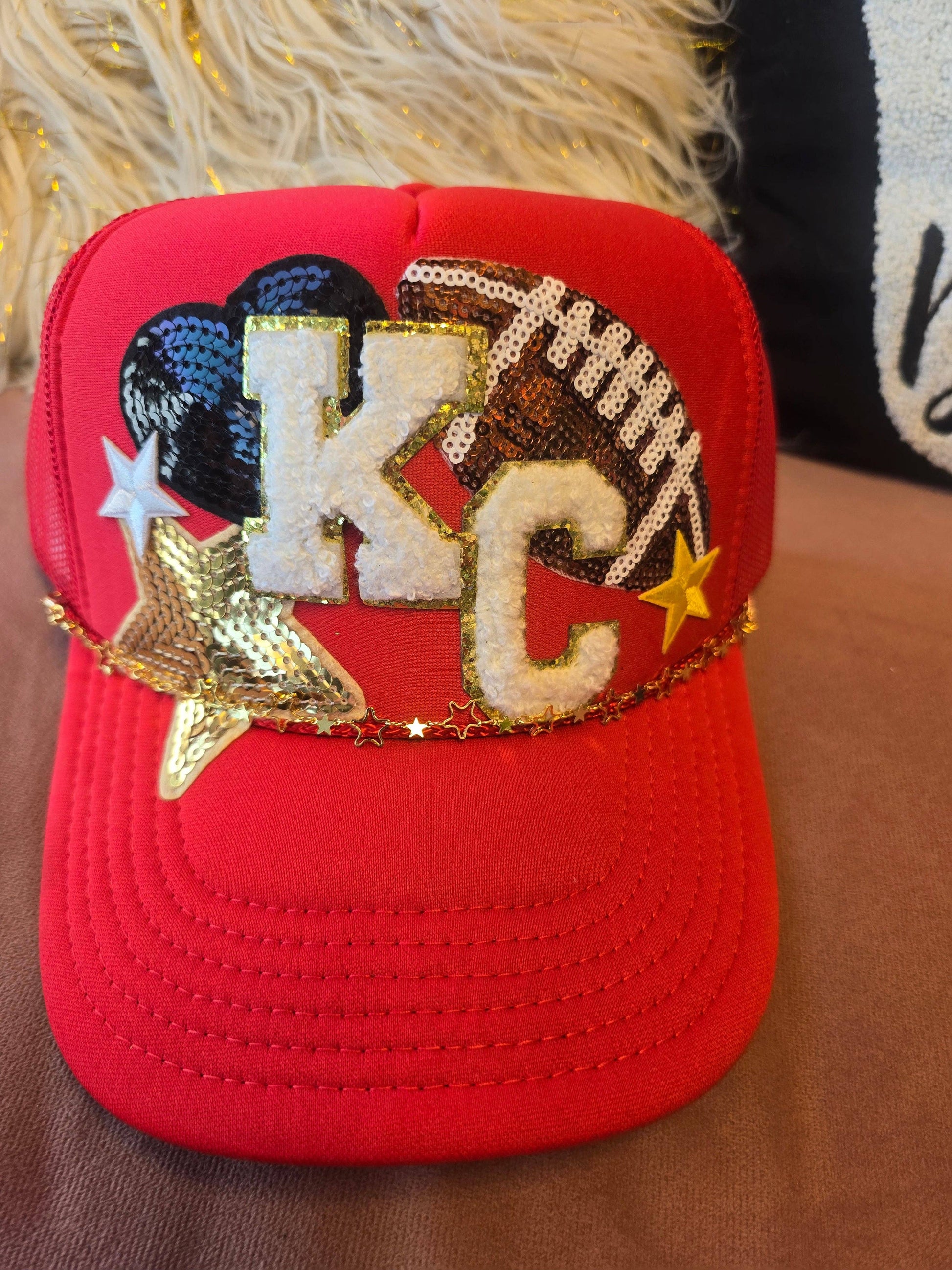 KC Chiefs-Inspired Red Sequin Patch Trucker Hat