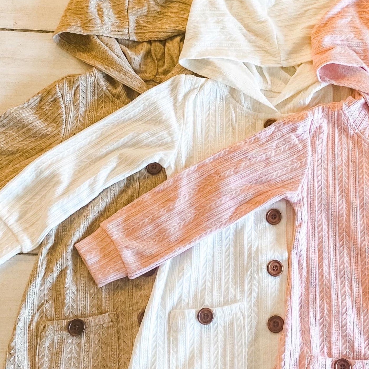 Kid & Adult Hooded Cardigans (Pink, cream or Carmel)