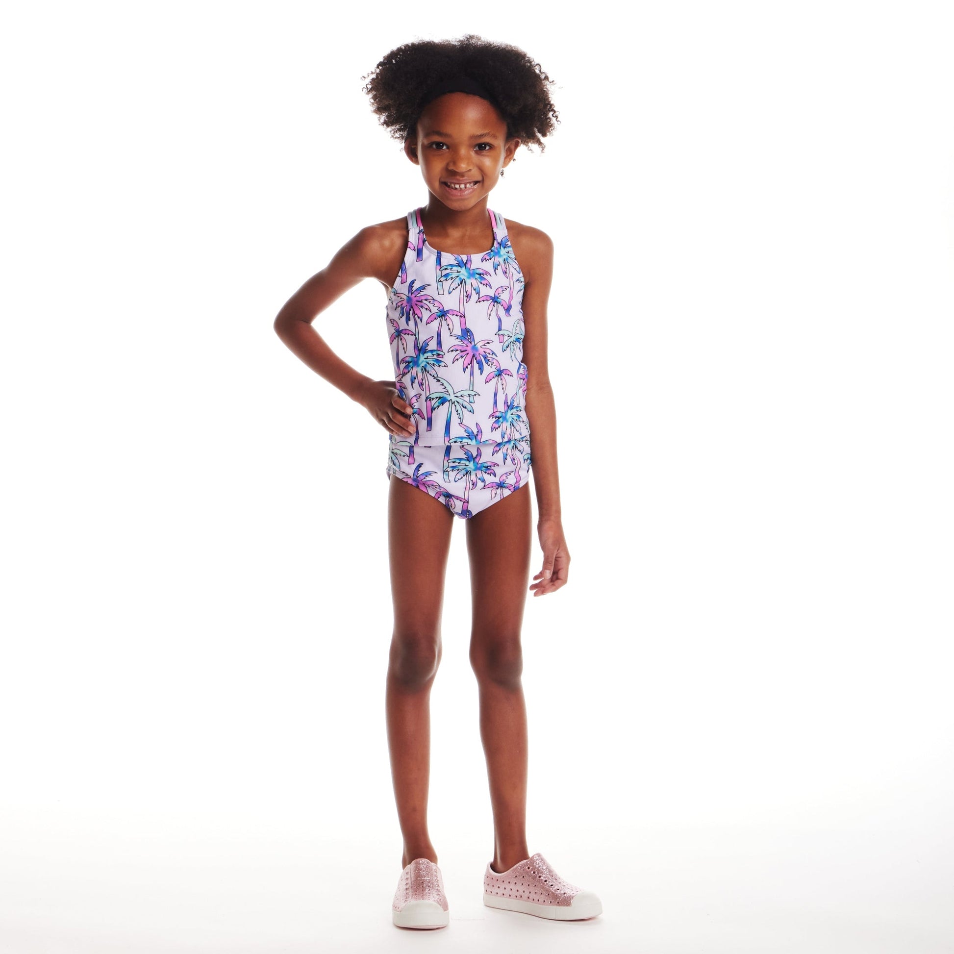 Kids (2-6x) Tankini Swimsuit Set | Purple Palm Trees