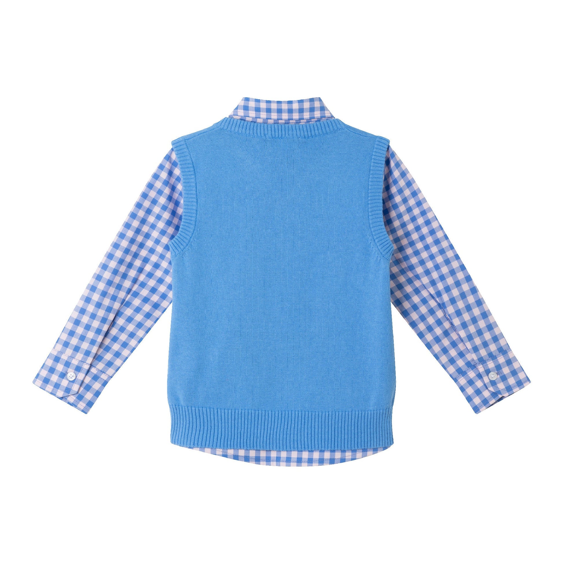 Dress your little one in effortless charm with this dapper 4-piece outfit! Featuring a crisp blue gingham button-up bodysuit, a cozy knit vest, and pants, this ensemble is perfect for making stylish memories at any special occasion.
