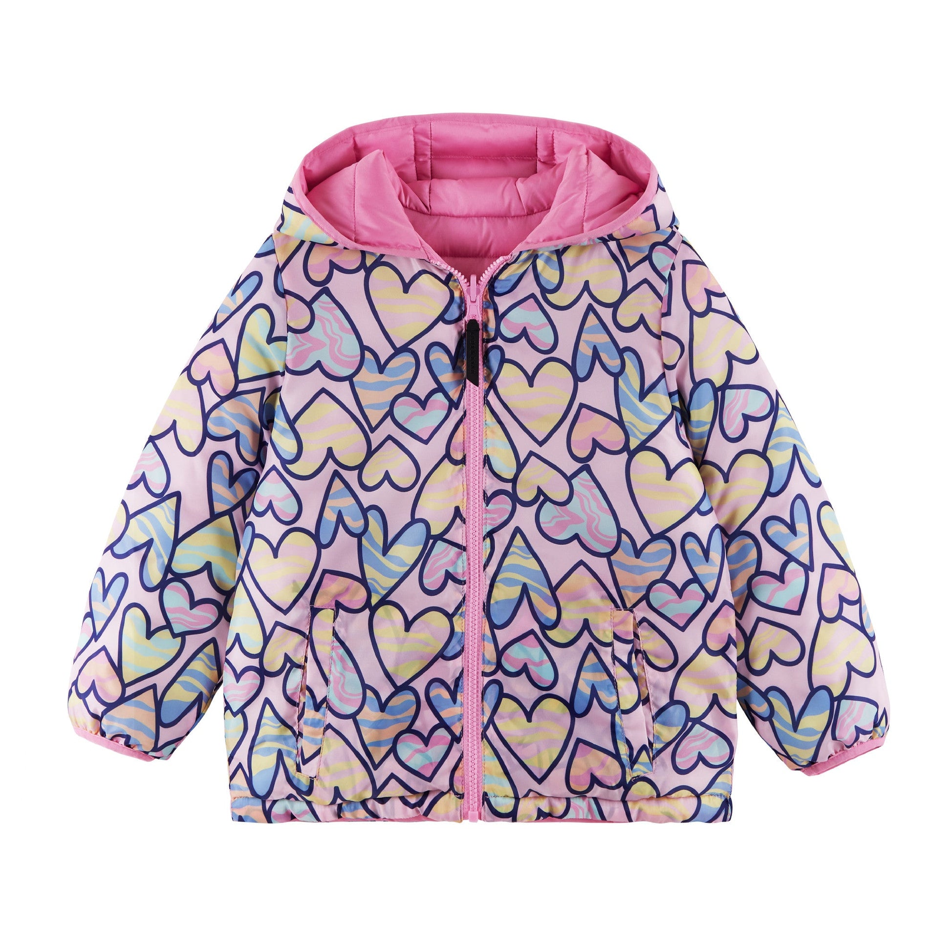 Kids Printed Reversible Puffer Jacket | Pink Hearts