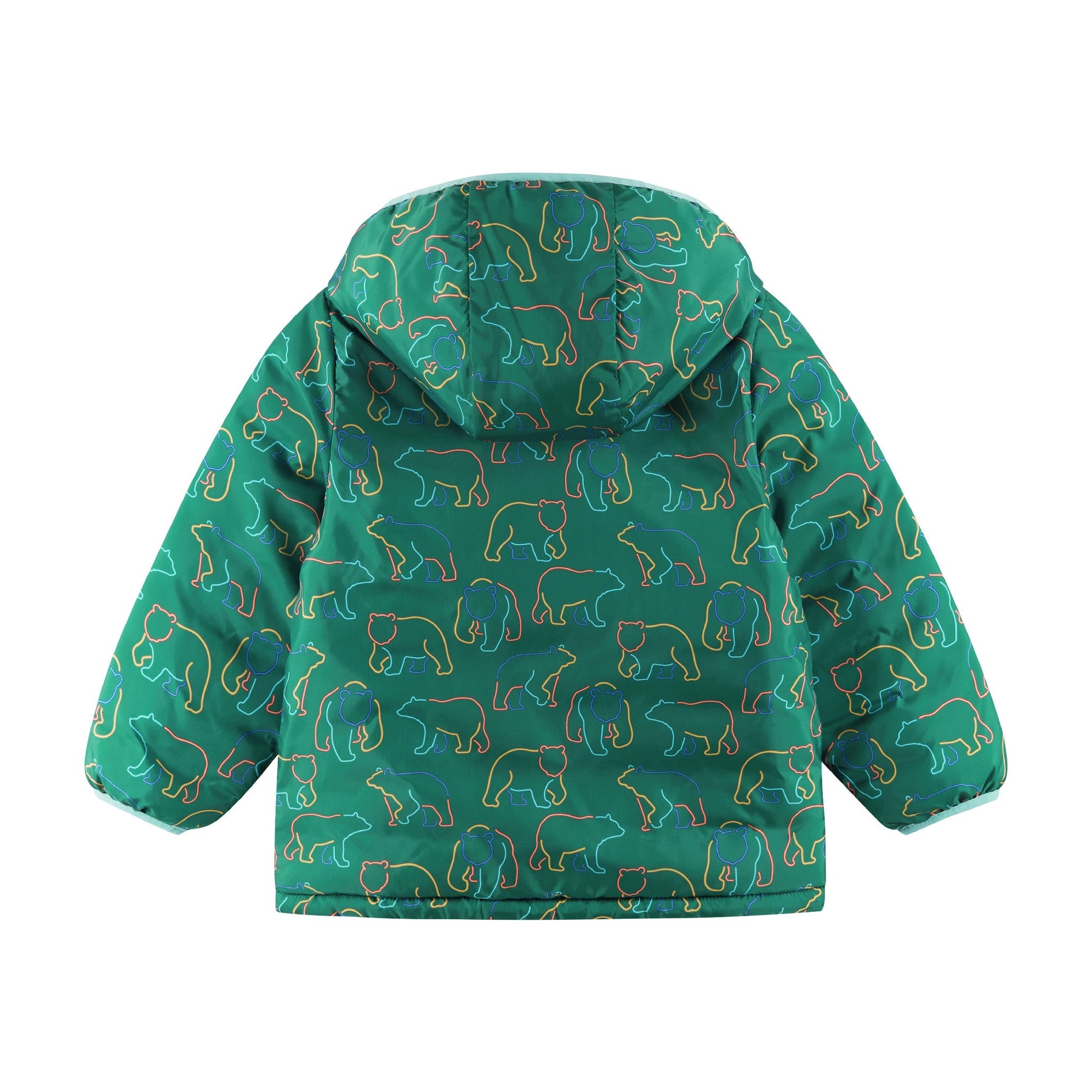2 Looks, 1 Cozy Jacket! Double the fun with this reversible puffer jacket! One side pops with a playful bear print, while the other keeps it cool and classic in solid green. Designed for chilly-day adventures, this jacket is like getting two styles in one—perfect for switching it up on the go!