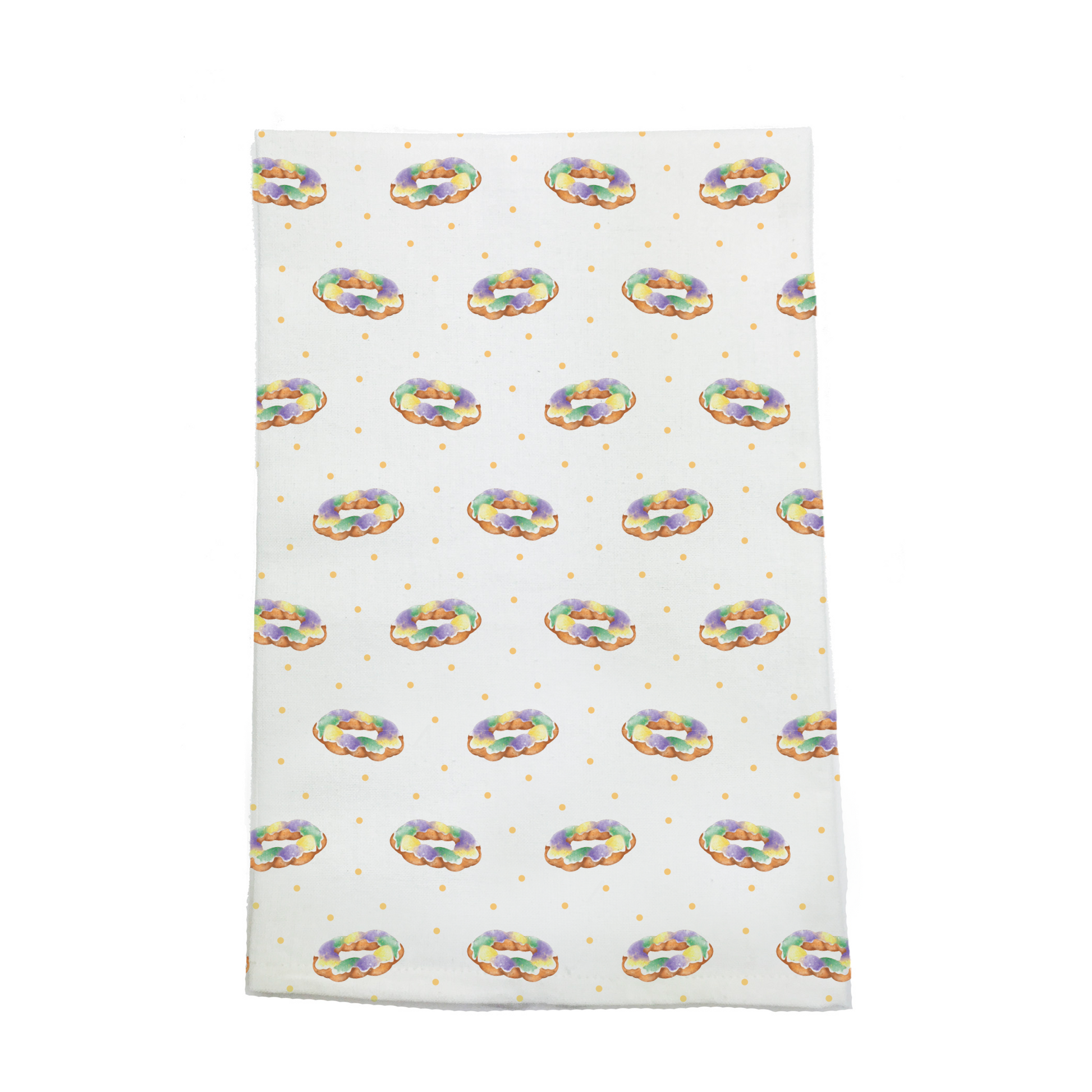 King Cake Pattern Organic Cotton Mardi Gras Kitchen Towel