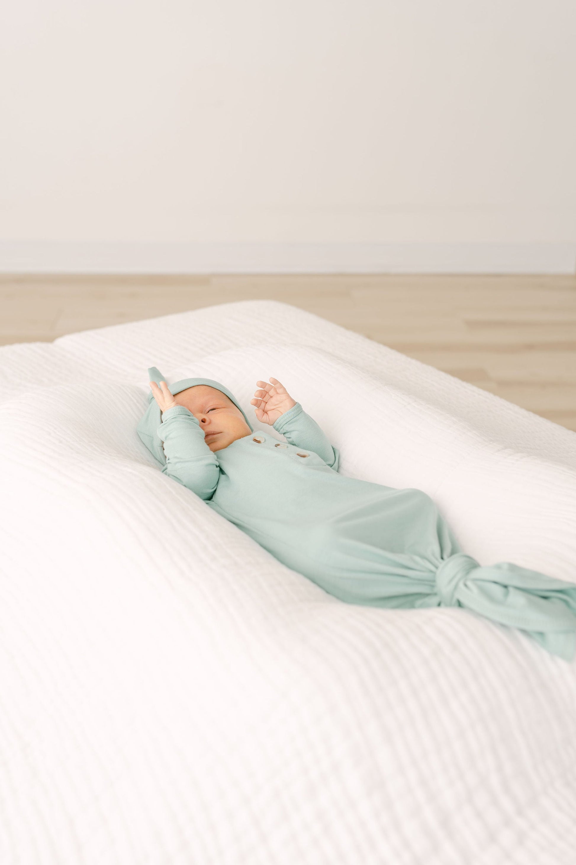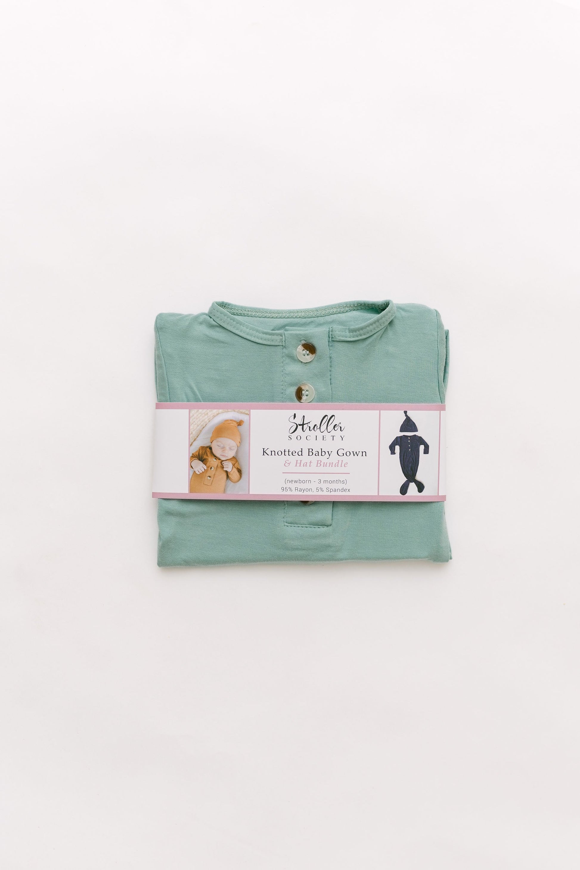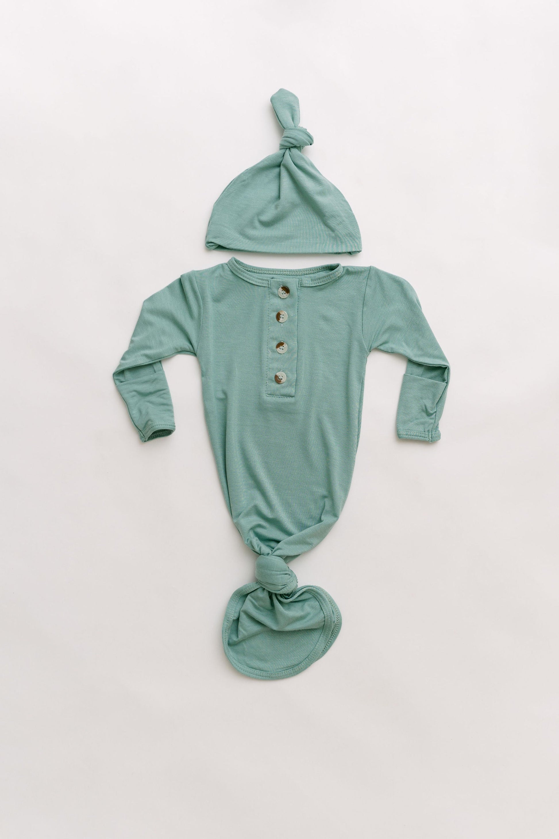 Knotted Baby Gown & Hat Set - Mint (Newborn-3 months)