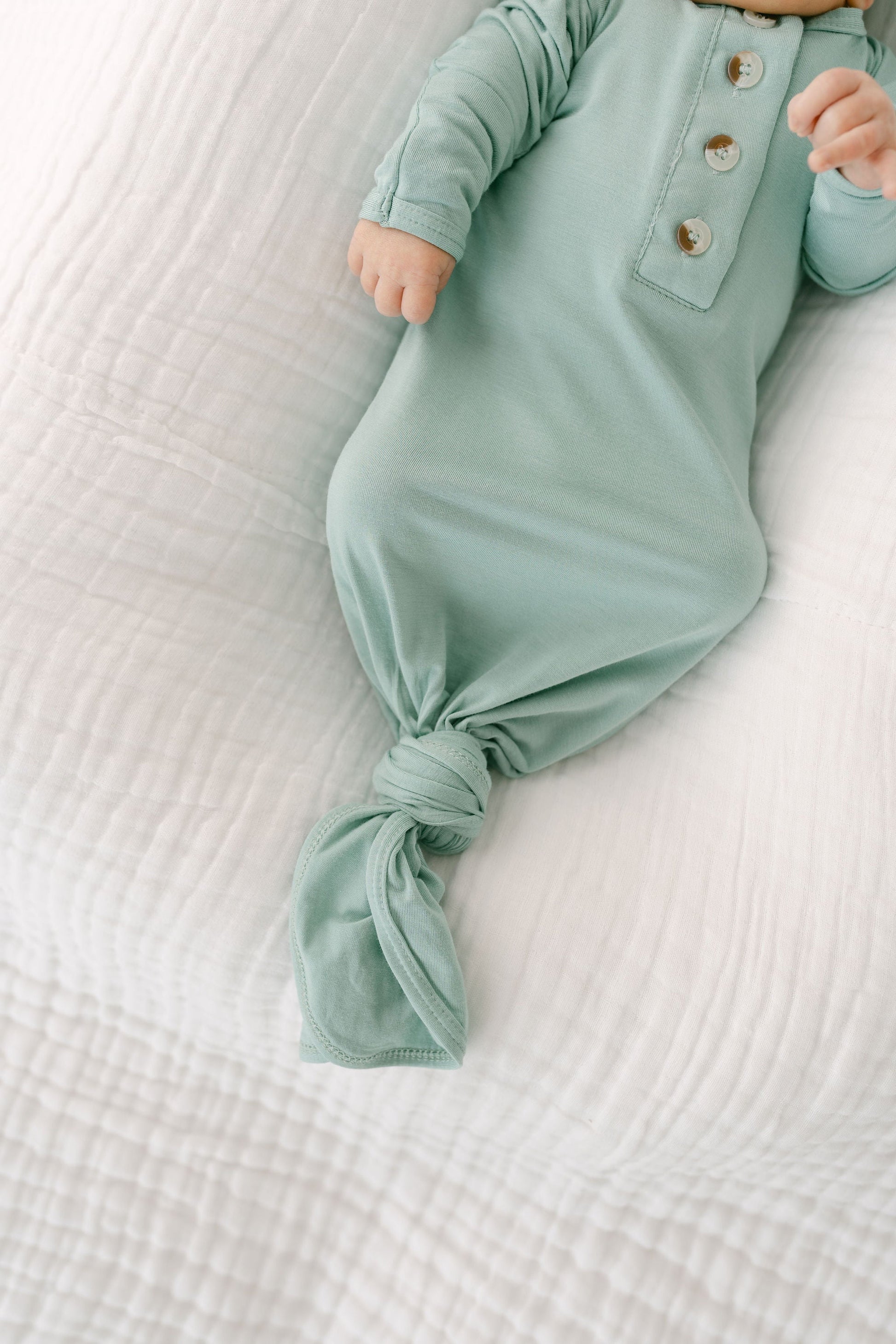 - Quick Outfit Changes - Our Henley style knotted newborn gowns have working buttons. So, you can easily dress your baby girl or boy in these beautiful unisex baby clothes from the head down or bottom up.