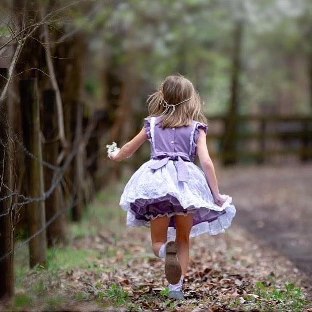 Lacey Norah dress with bloomers! Comes in three colorways: Pink, Purple and Blue.